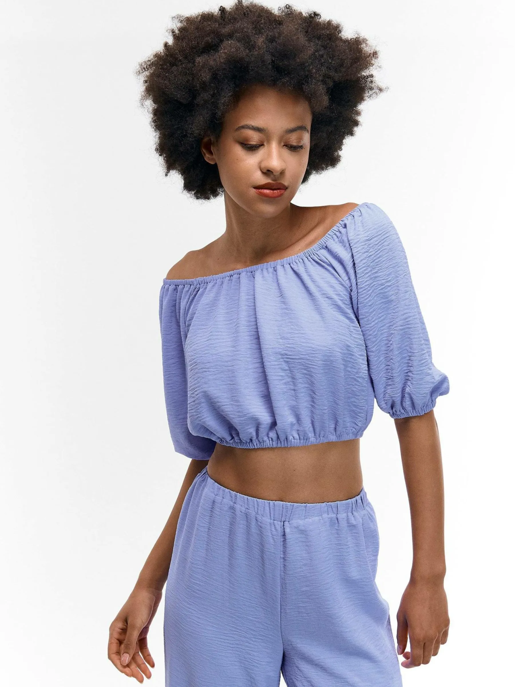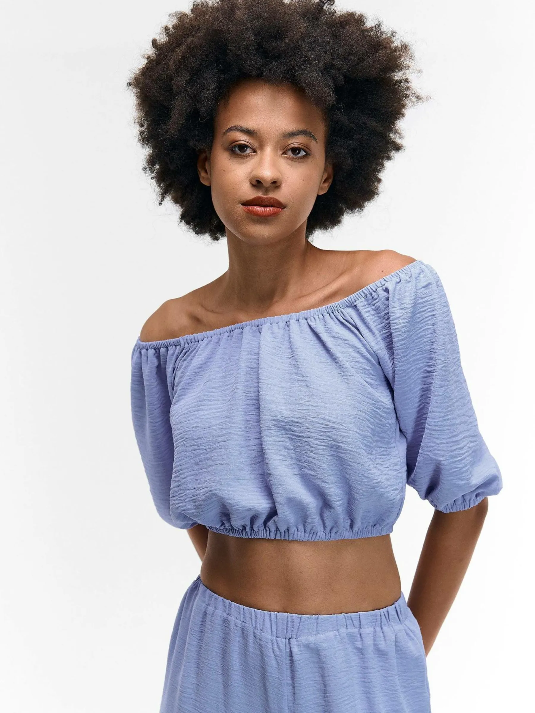 Kolor: niebieskiKrój: z marszczeniemTyp: topRekaw: krótki rękawDługość: krótki topPattern style: pojedynczy kolor…