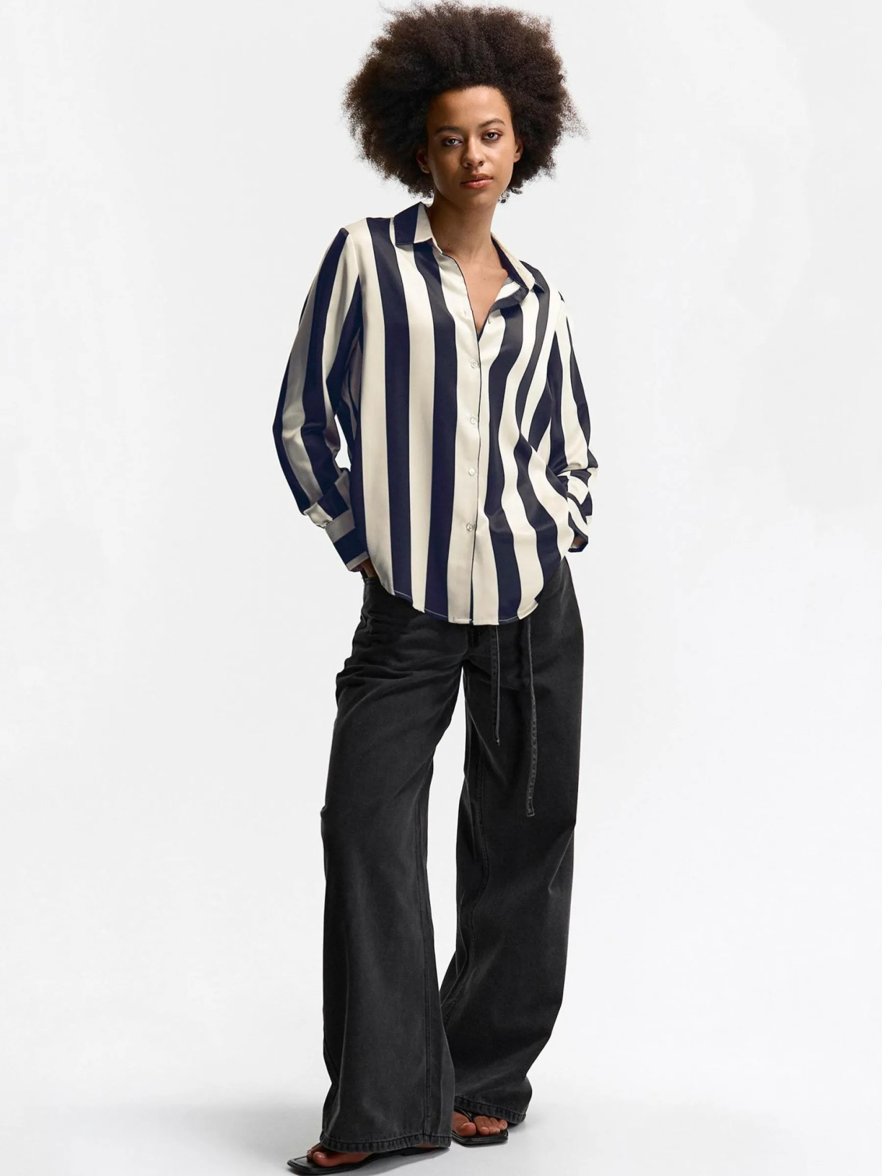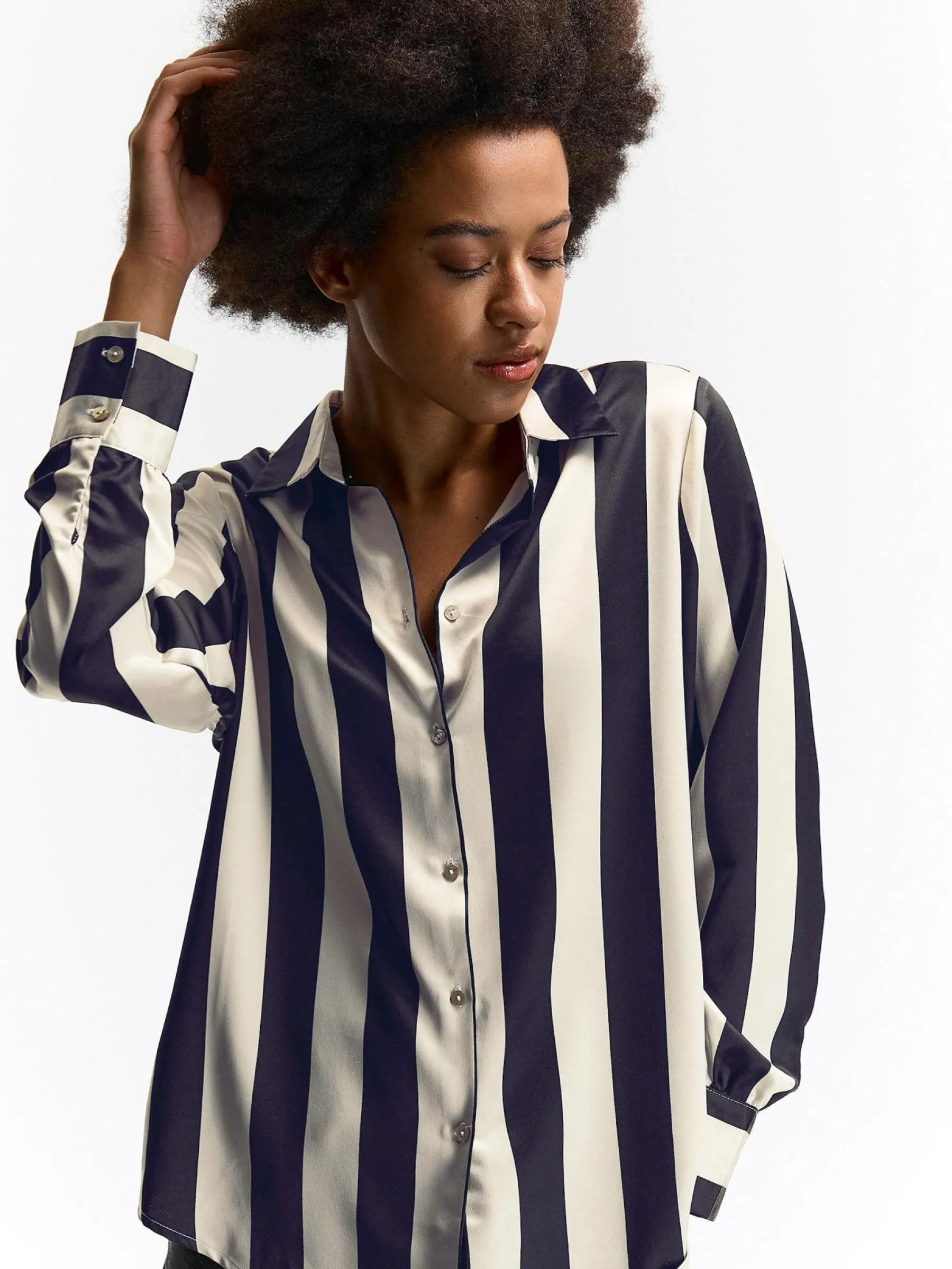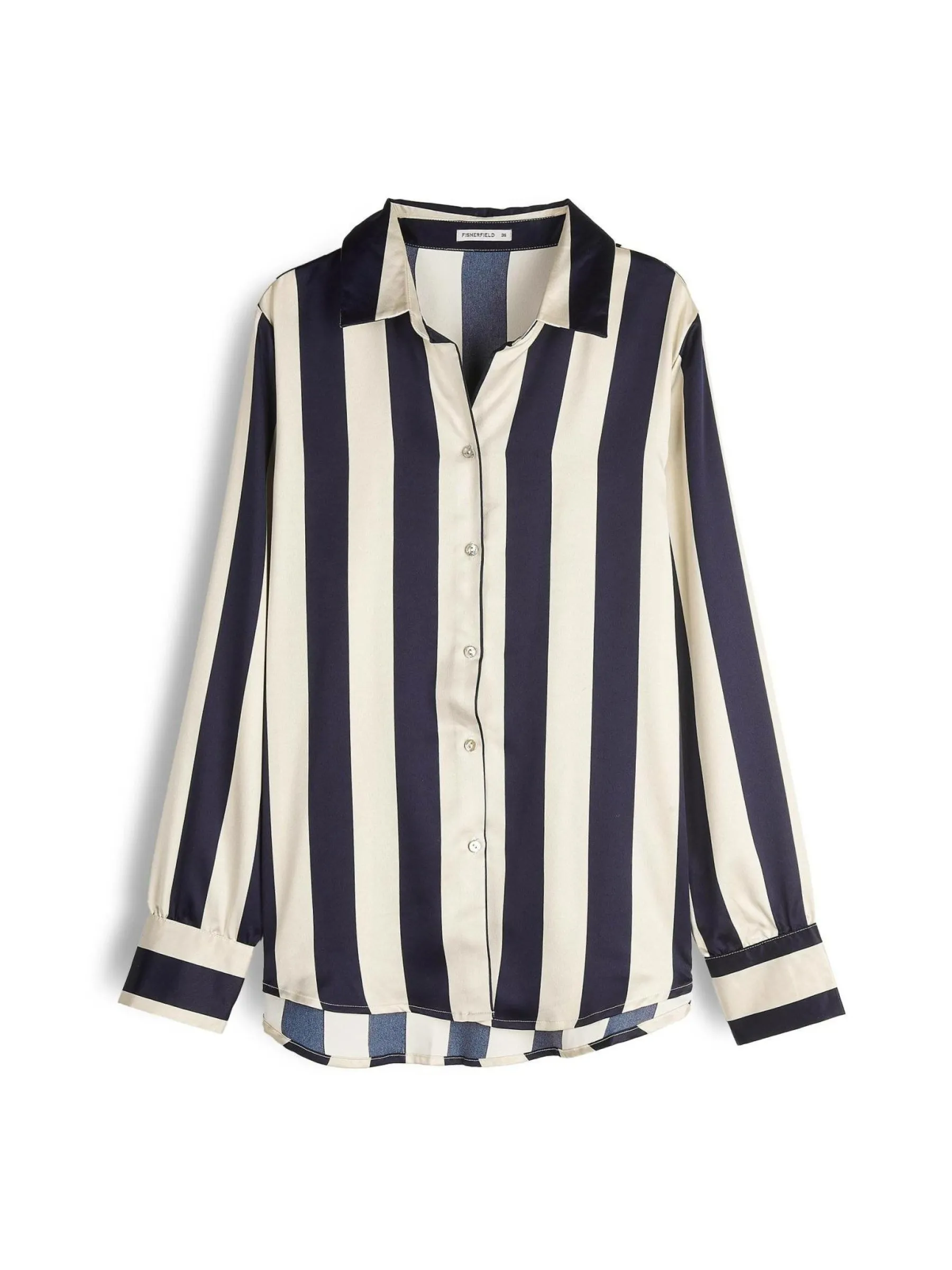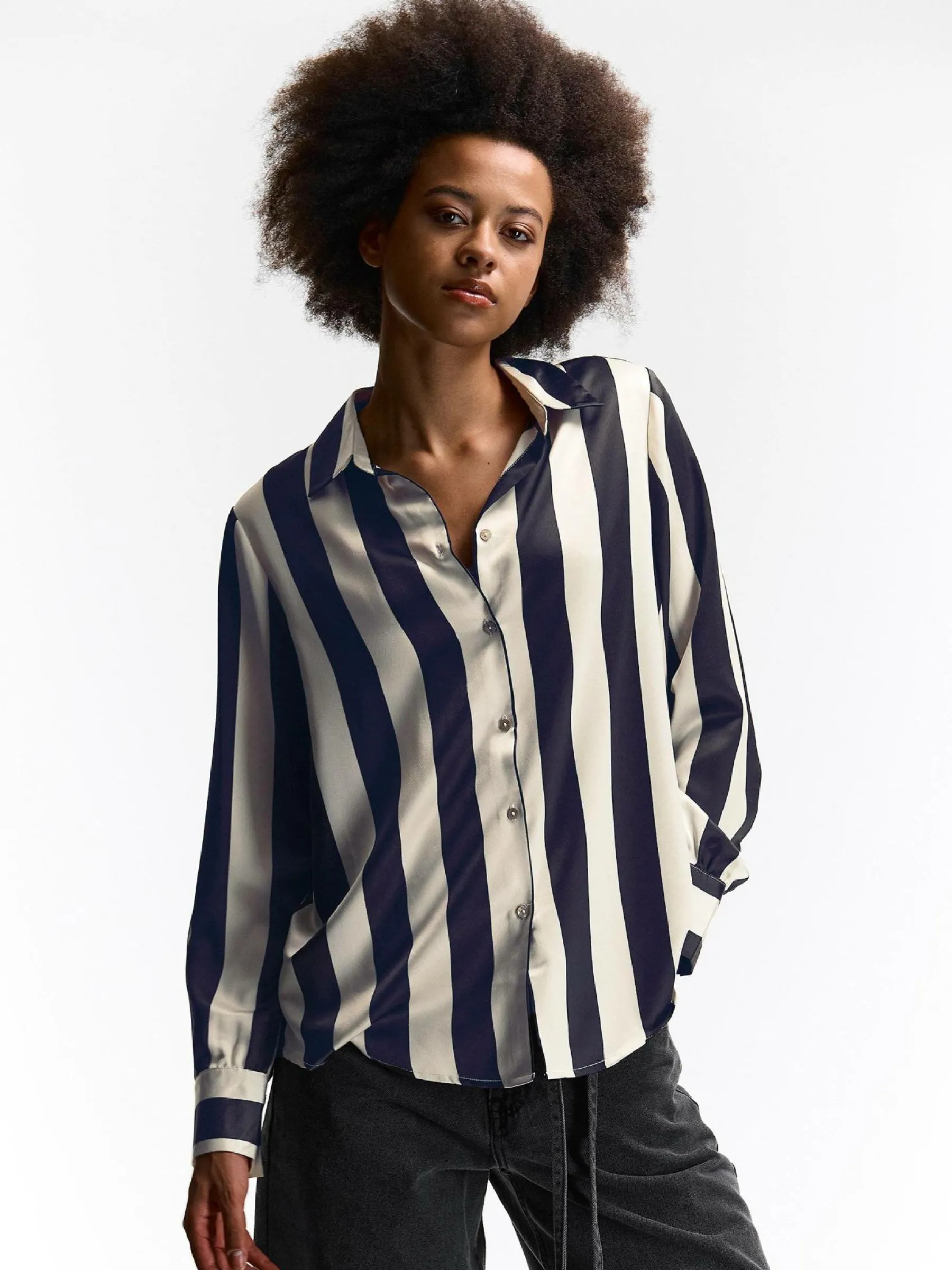 Kolor: beżowy, granatowyKrój: podstawowyTyp: bluzkaRekaw: długi rękawDługość: krótkiPattern style: w prążki, w…