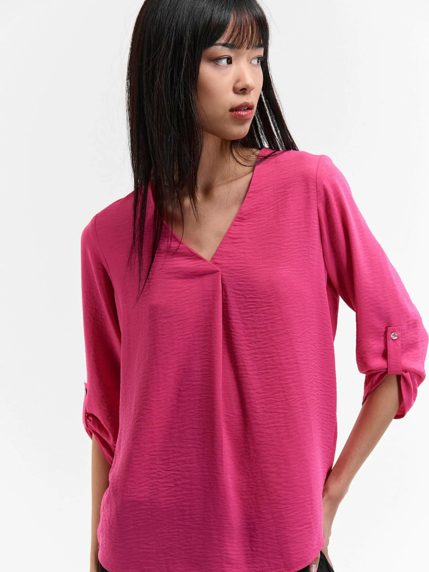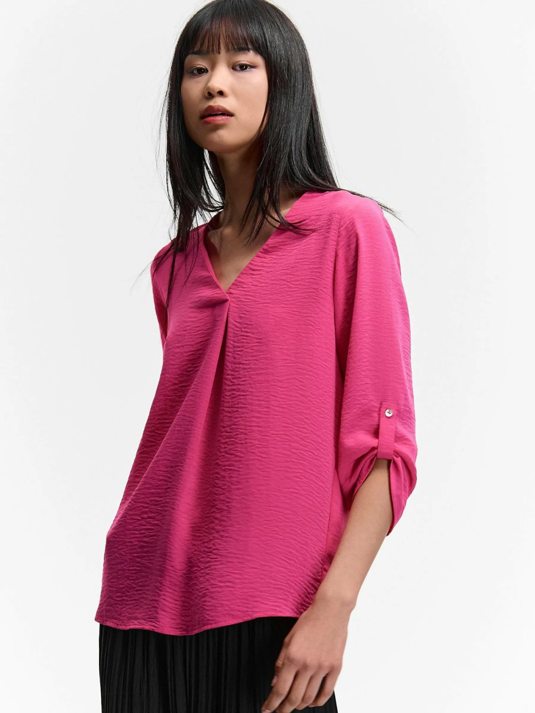 Zdjęcia z modelką mogą nie odpowiadać rzeczywistemu kolorowi produktu.Kolor: różowyKrój: regularTyp: bluzkaRekaw:…
