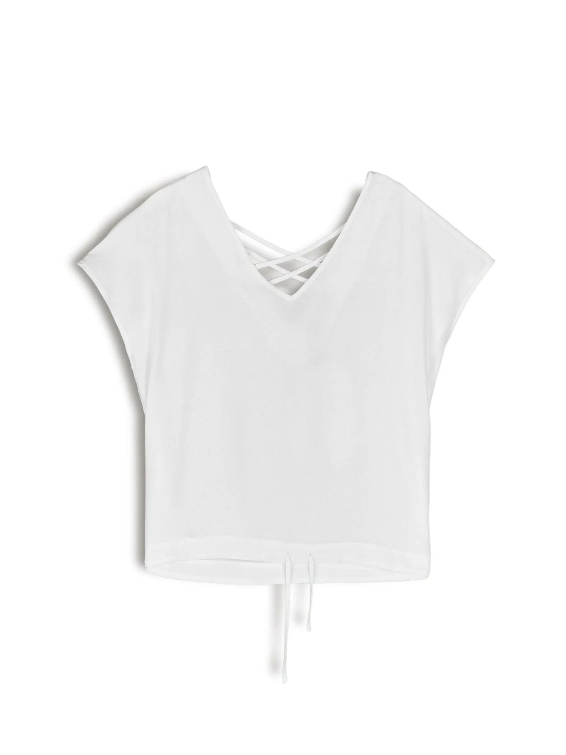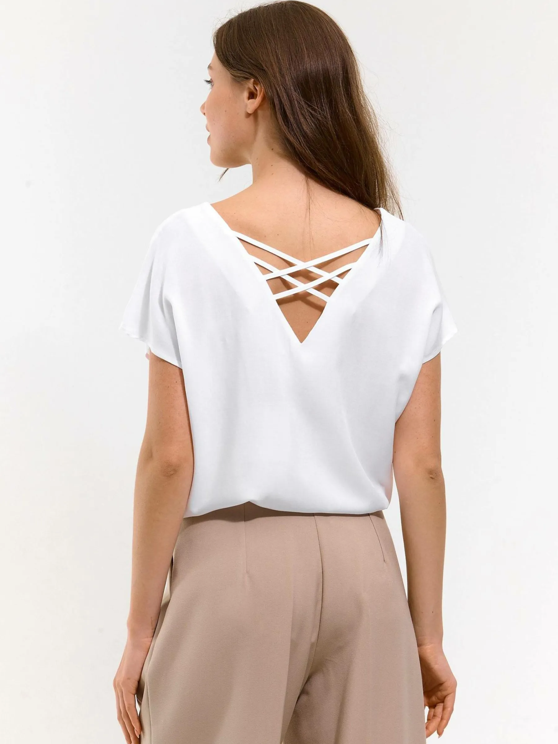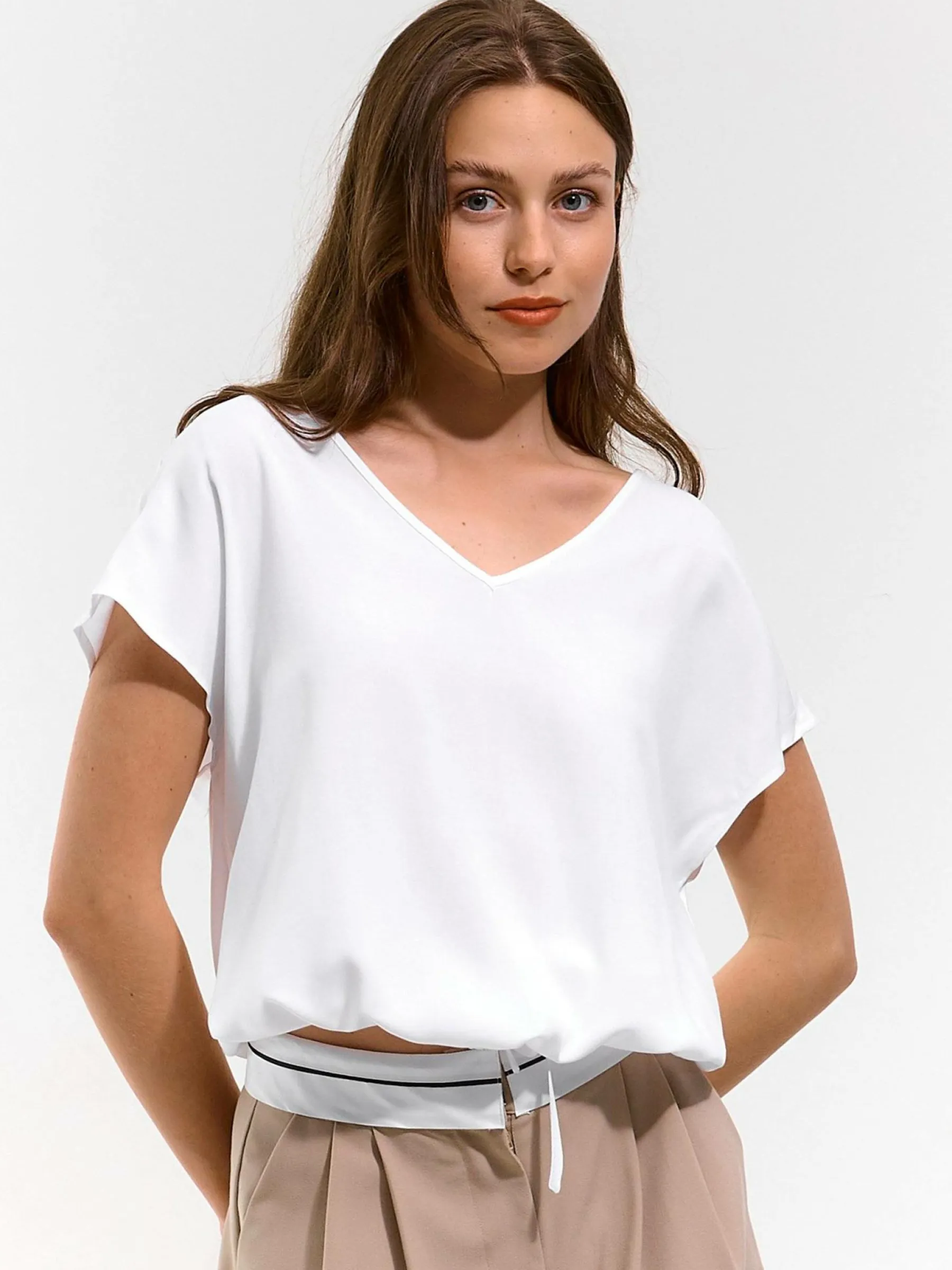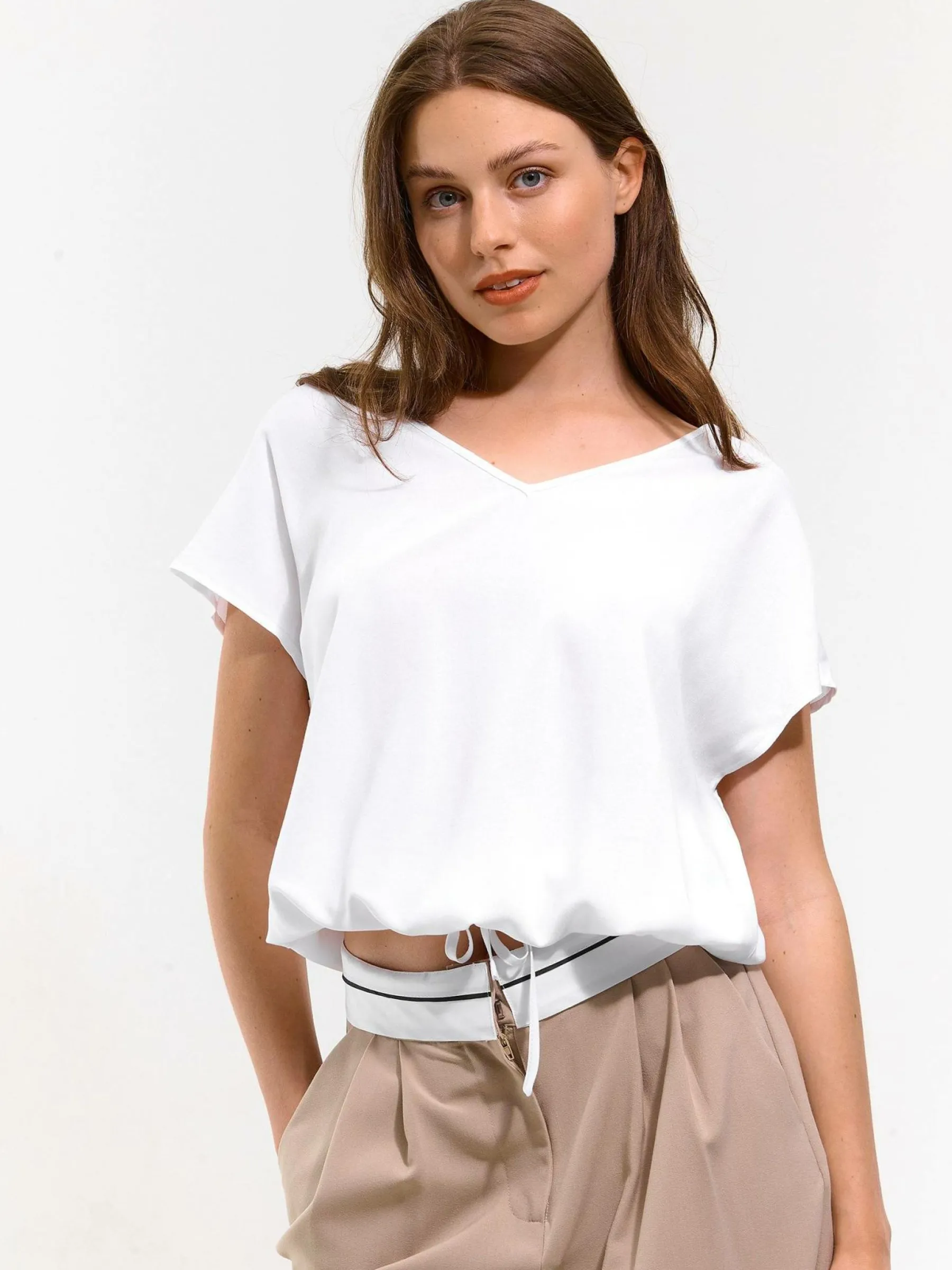 Kolor: białyKrój: regularTyp: bluzka, topRekaw: krótki rękawDługość: krótkiPattern style: pojedynczy kolorDetal:…