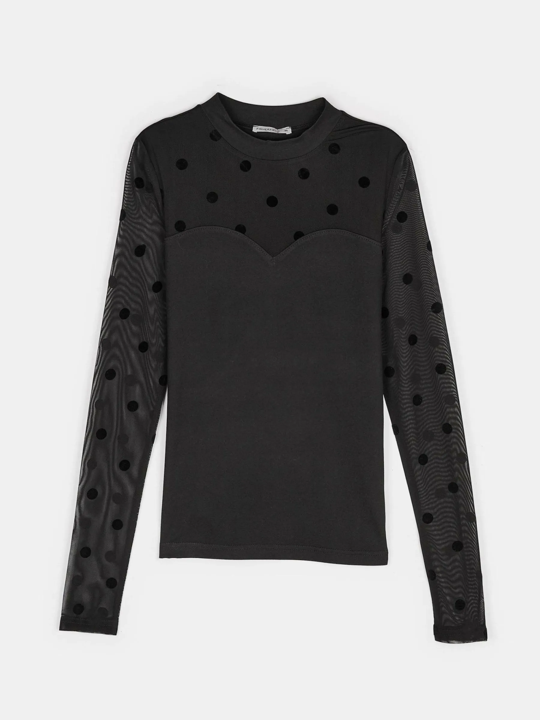 Kolor: czarnyKrój: regularTyp: topRekaw: długi rękawDługość: krótkiPattern style: pojedynczy kolorDetal: nad gło…