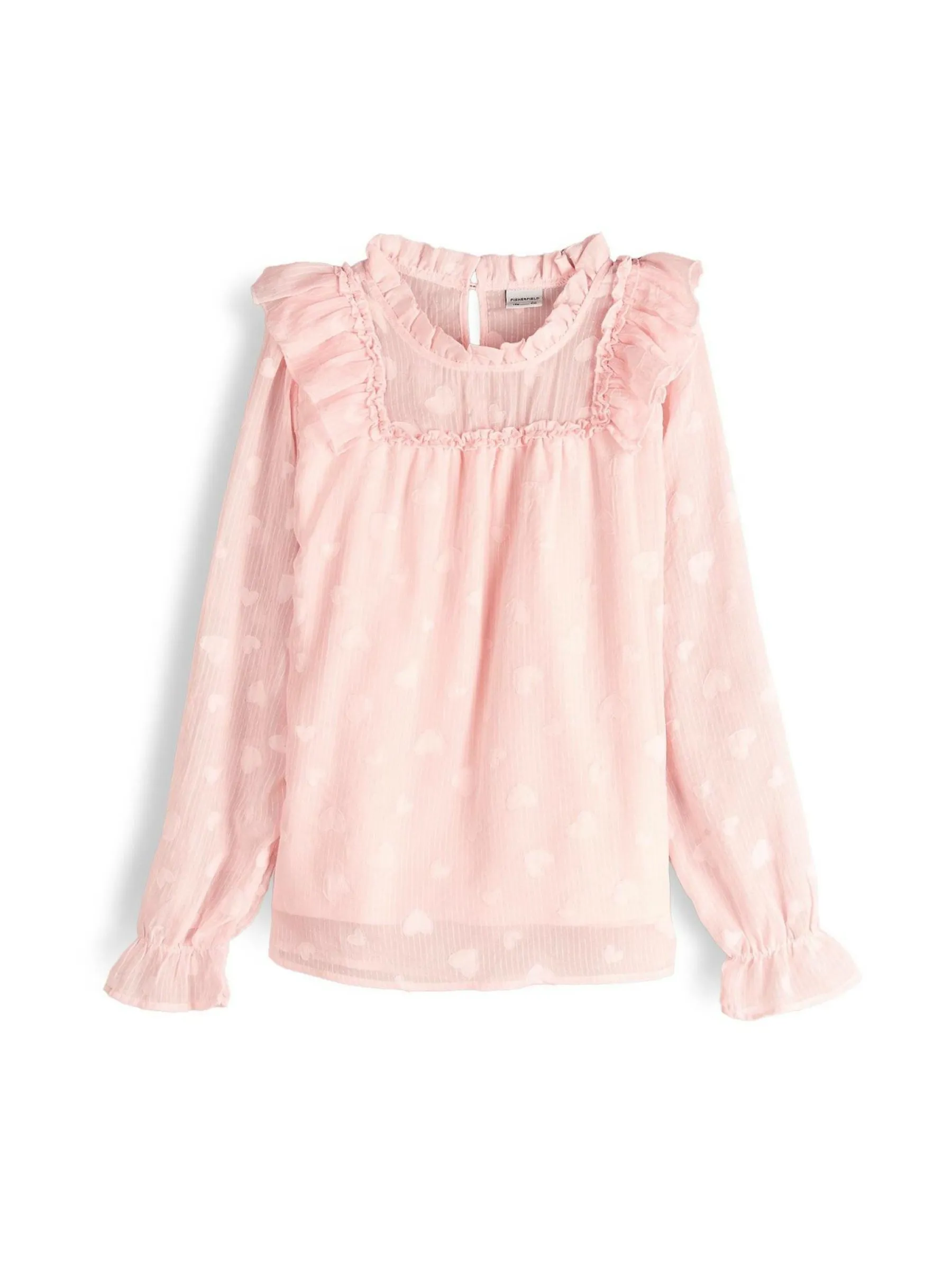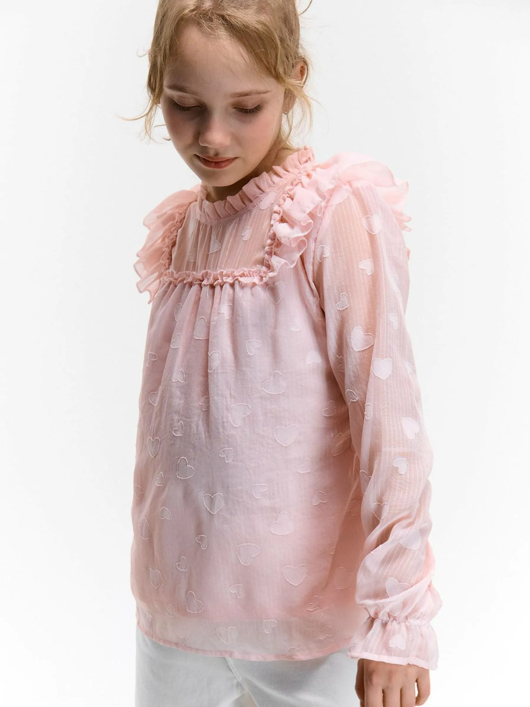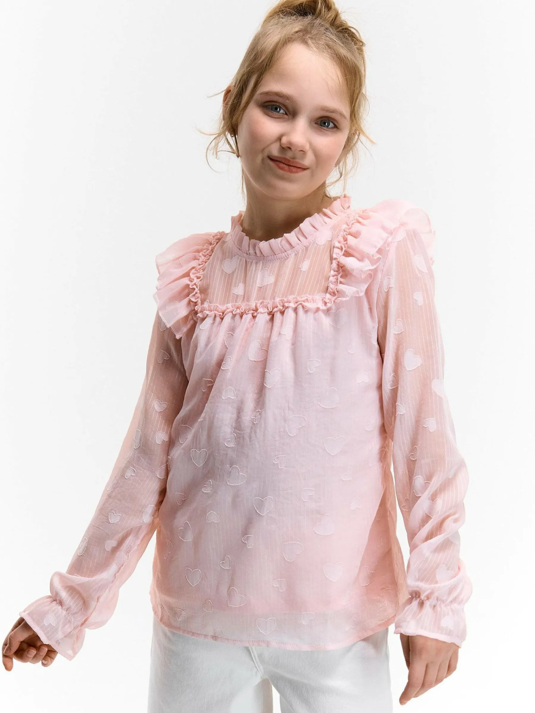 Kolor: różowyKrój: z falbanąTyp: bluzkaRekaw: długi rękawDługość: krótkiPattern style: pojedynczy kolorDetal: …