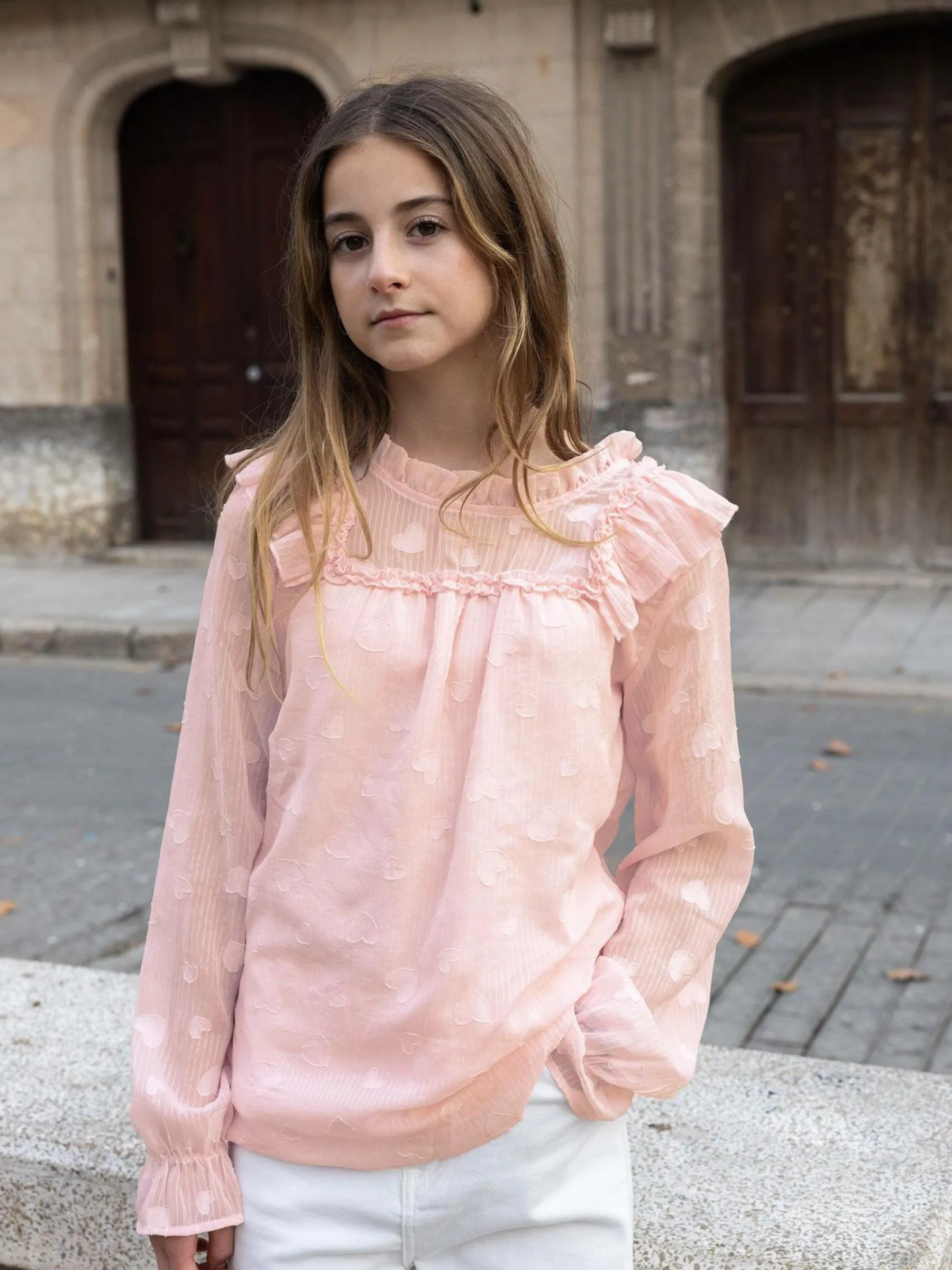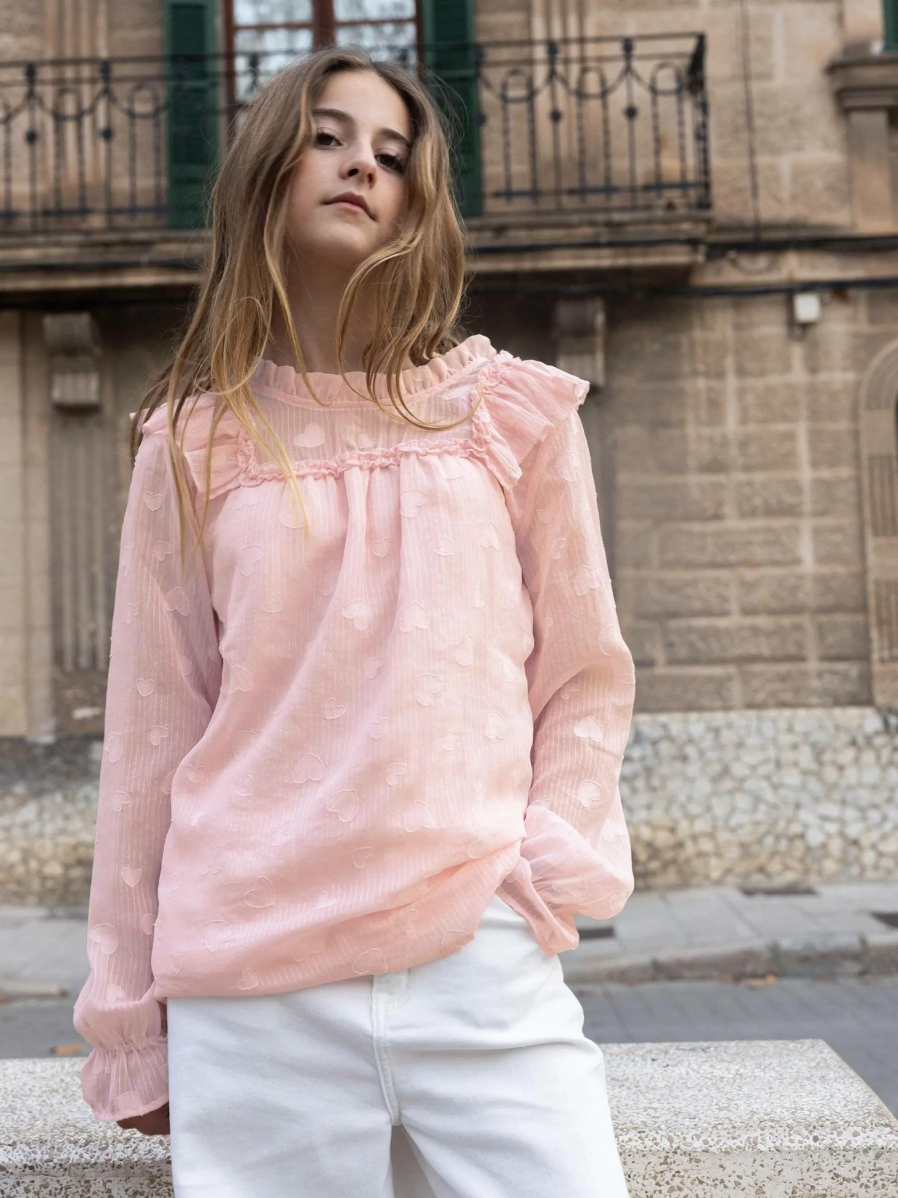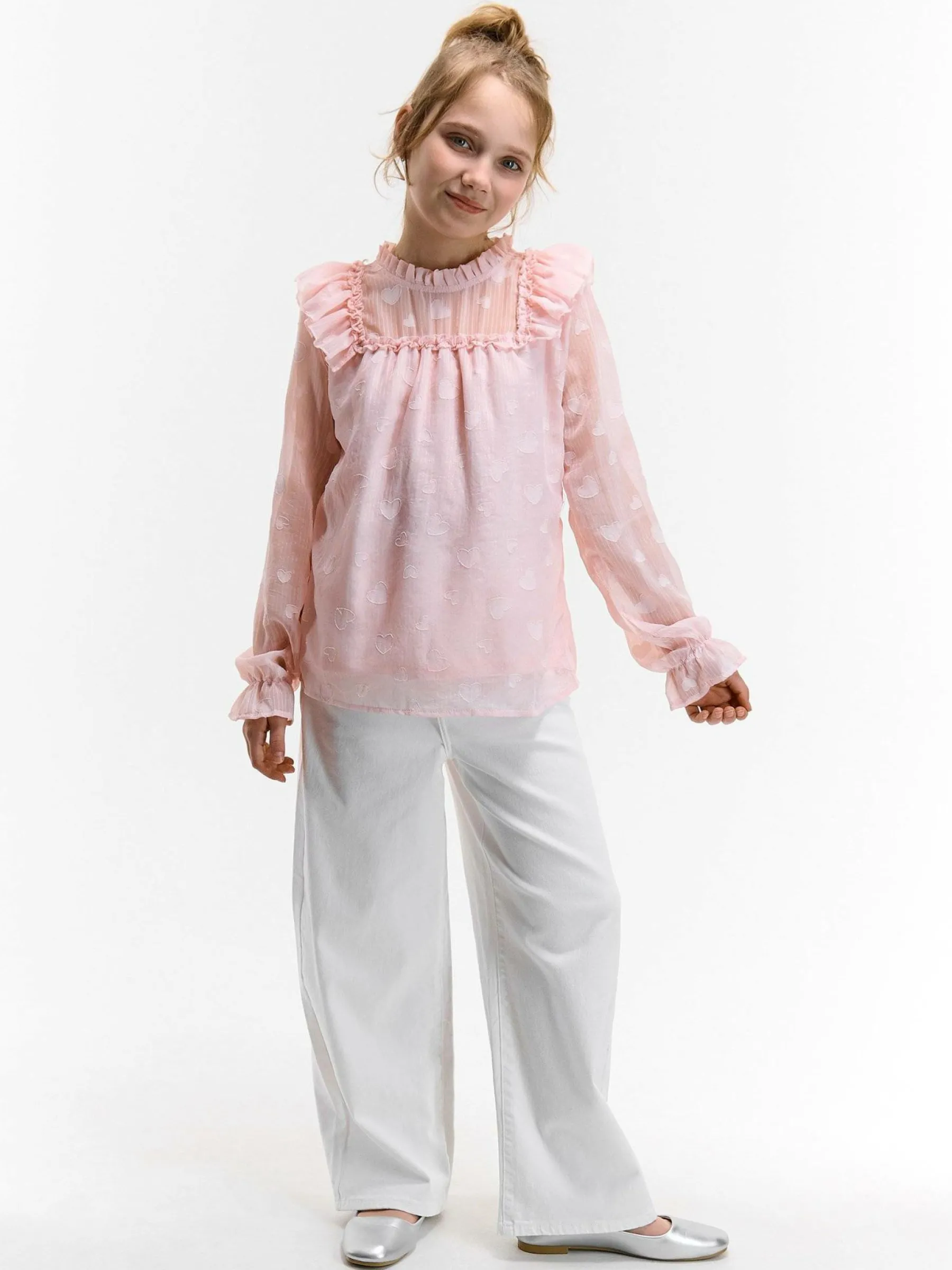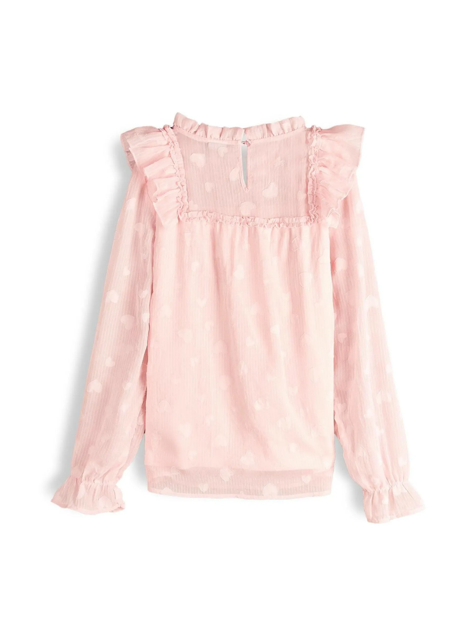 Kolor: różowyKrój: z falbanąTyp: bluzkaRekaw: długi rękawDługość: krótkiPattern style: pojedynczy kolorDetal: …