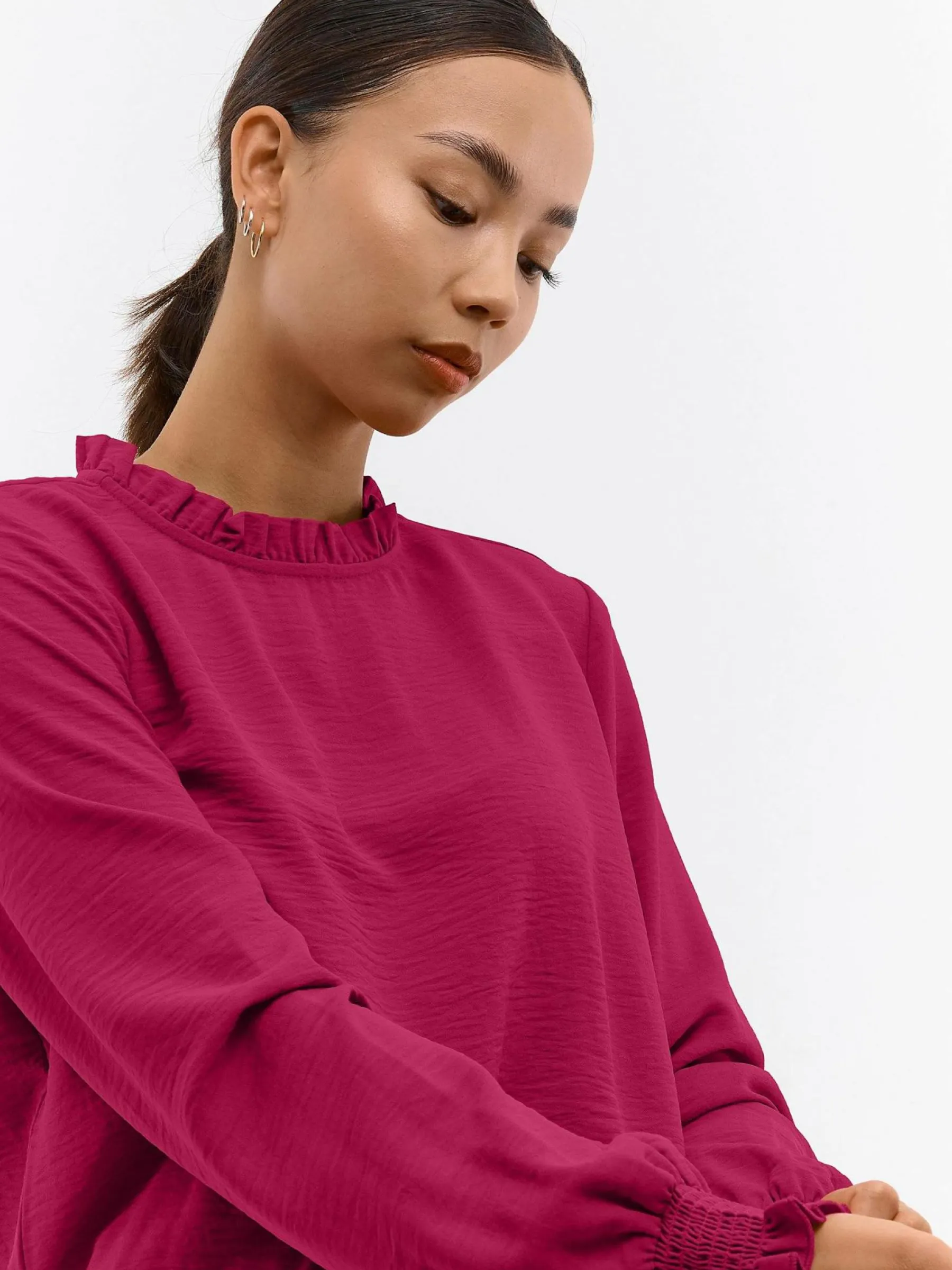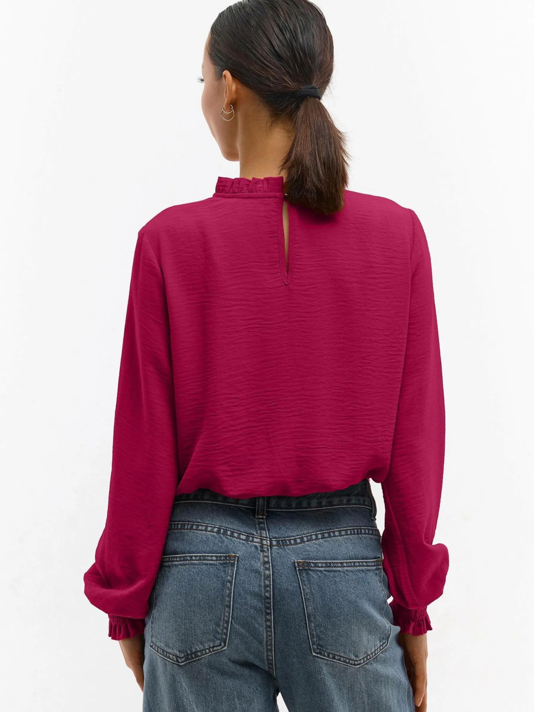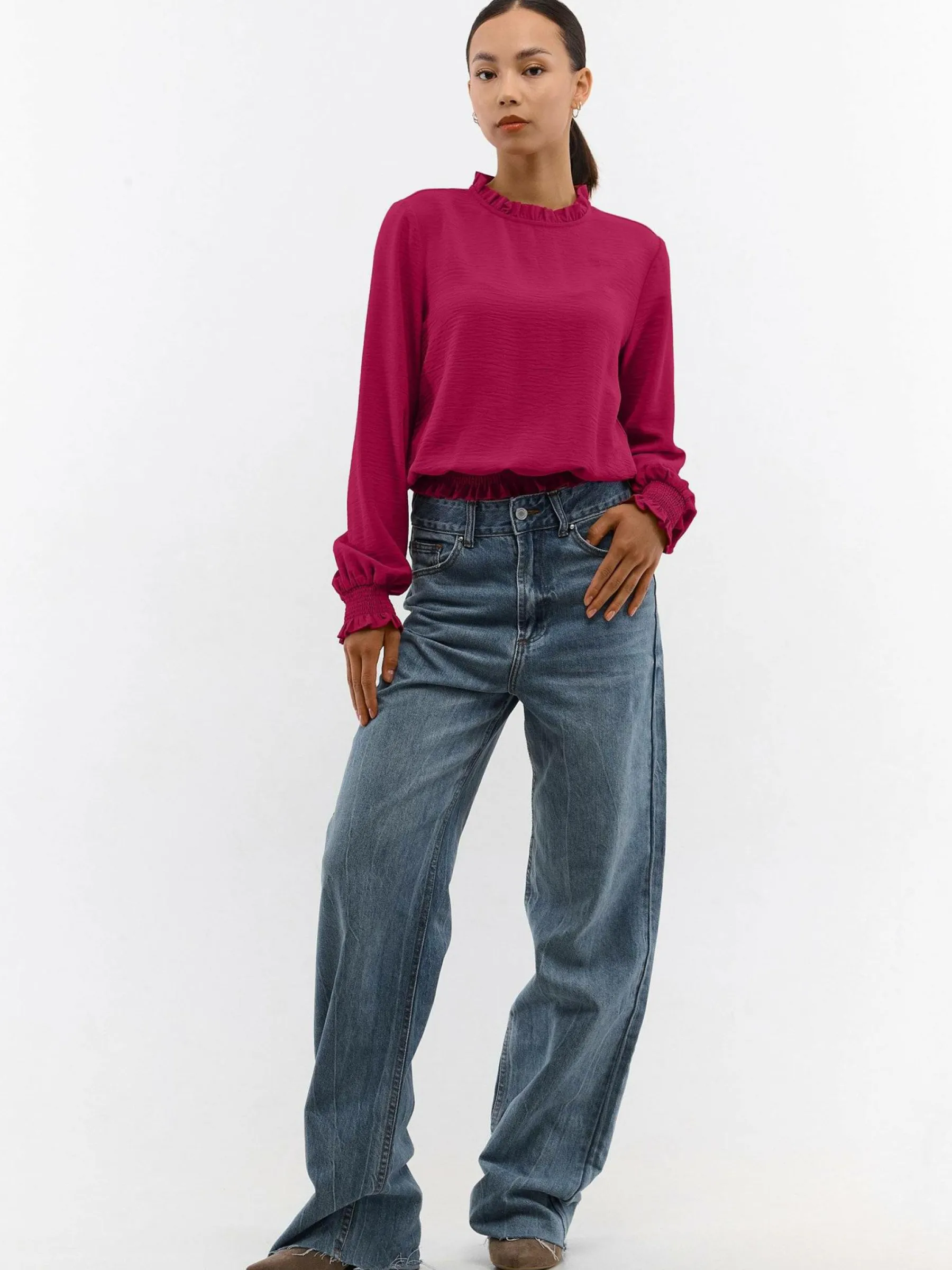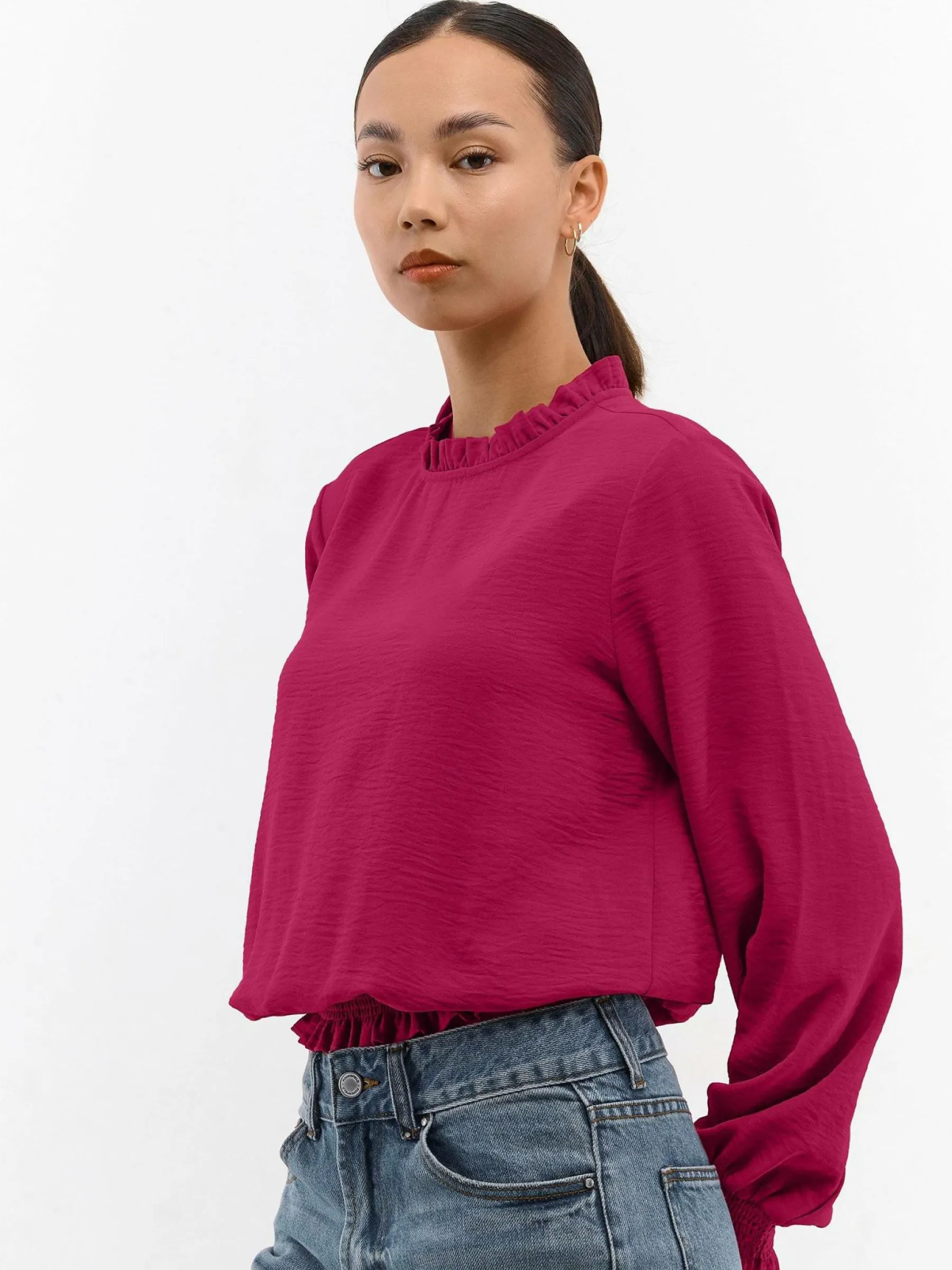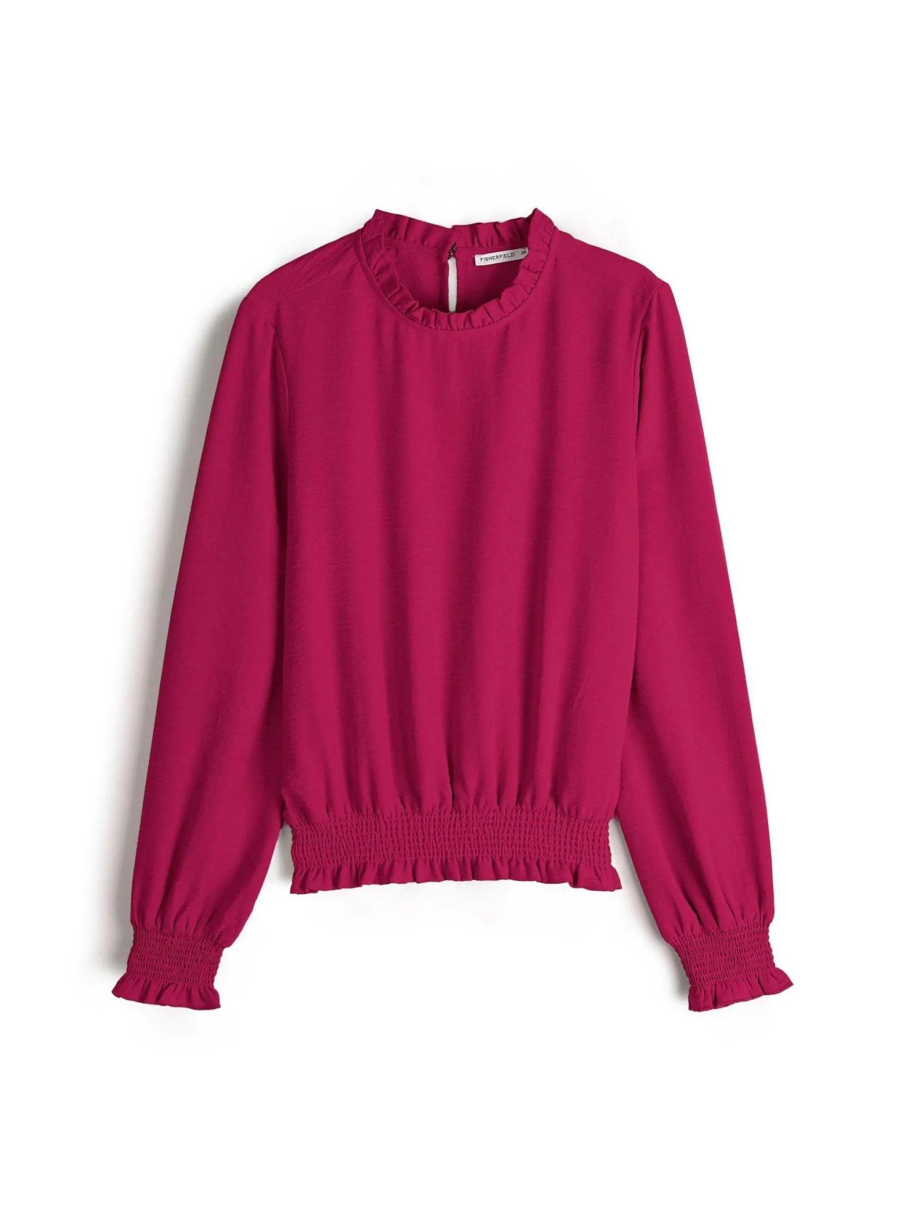 Kolor: różowyKrój: z marszczeniemTyp: bluzka, topRekaw: długi rękawDługość: krótkiPattern style: pojedynczy kol…