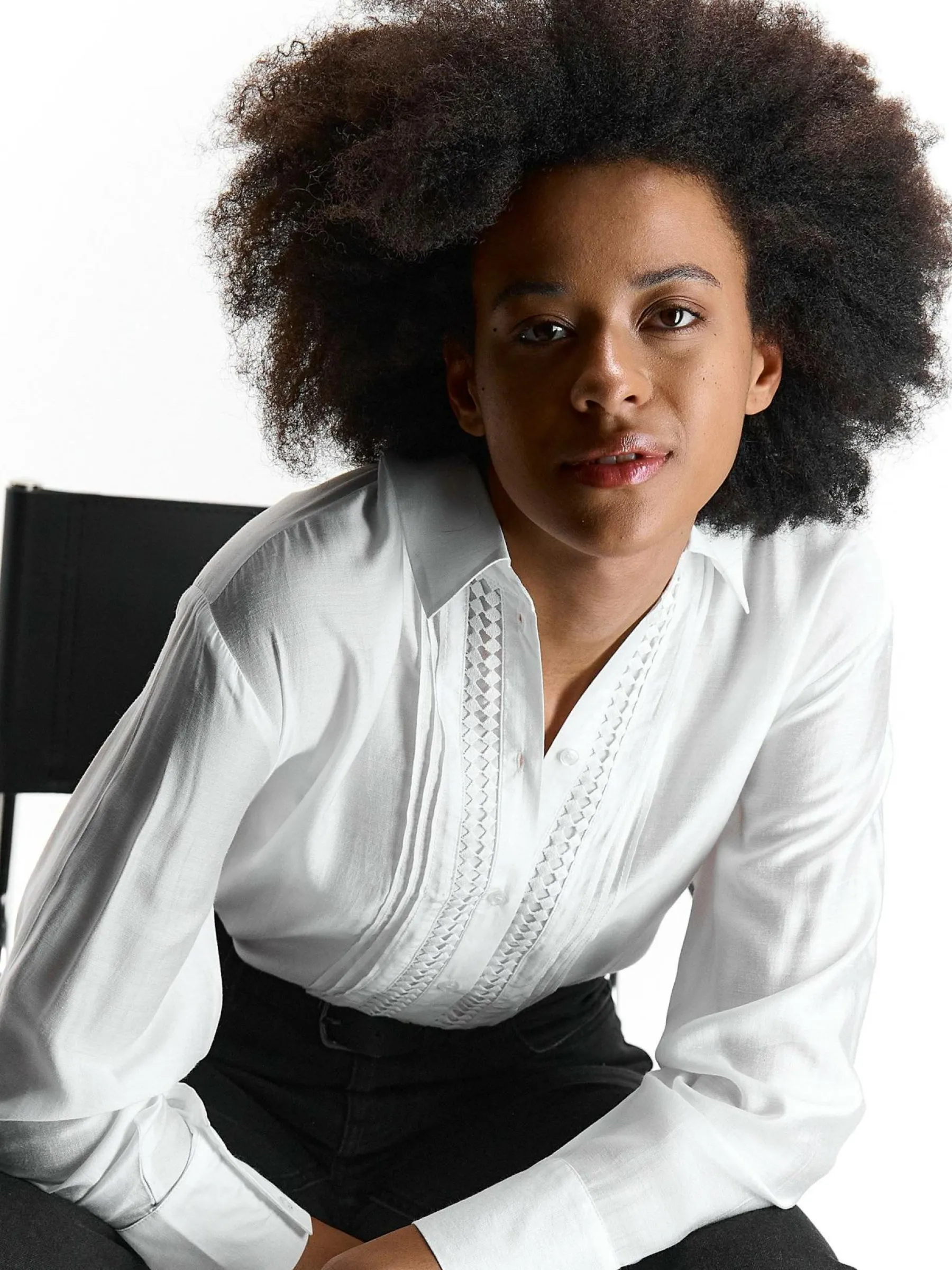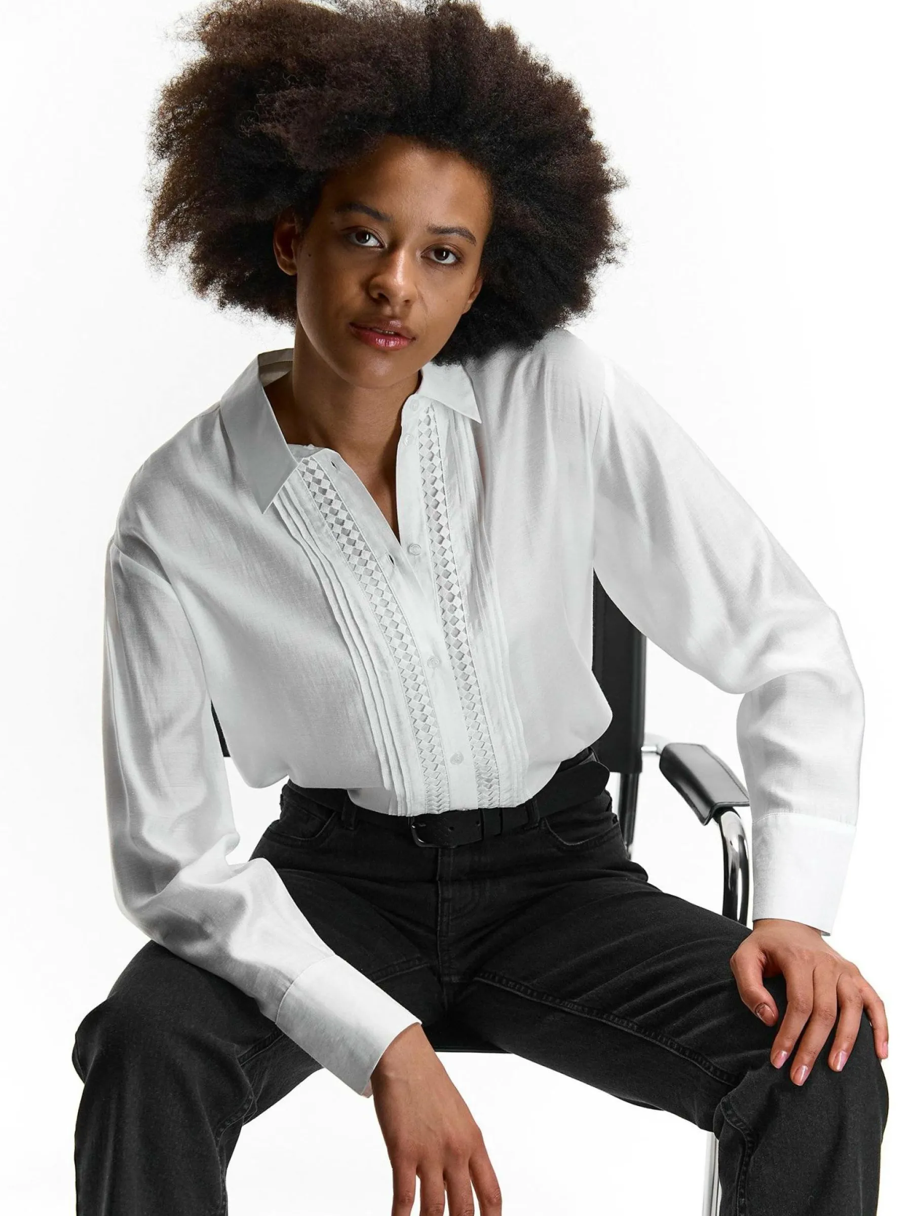 Kolor: białyKrój: regularTyp: bluzkaRekaw: długi rękawDługość: krótkiPattern style: pojedynczy kolorDetal: na gu…