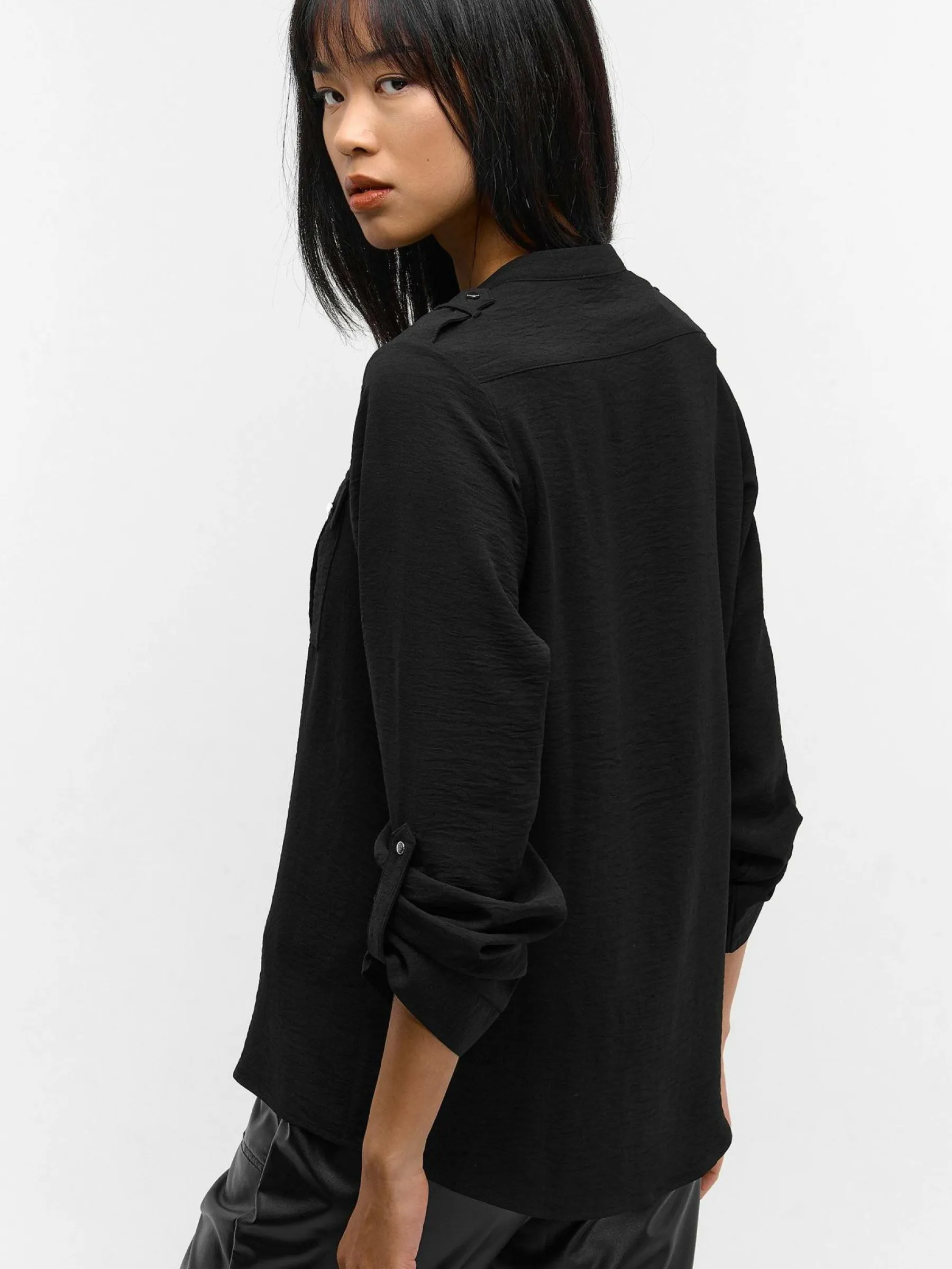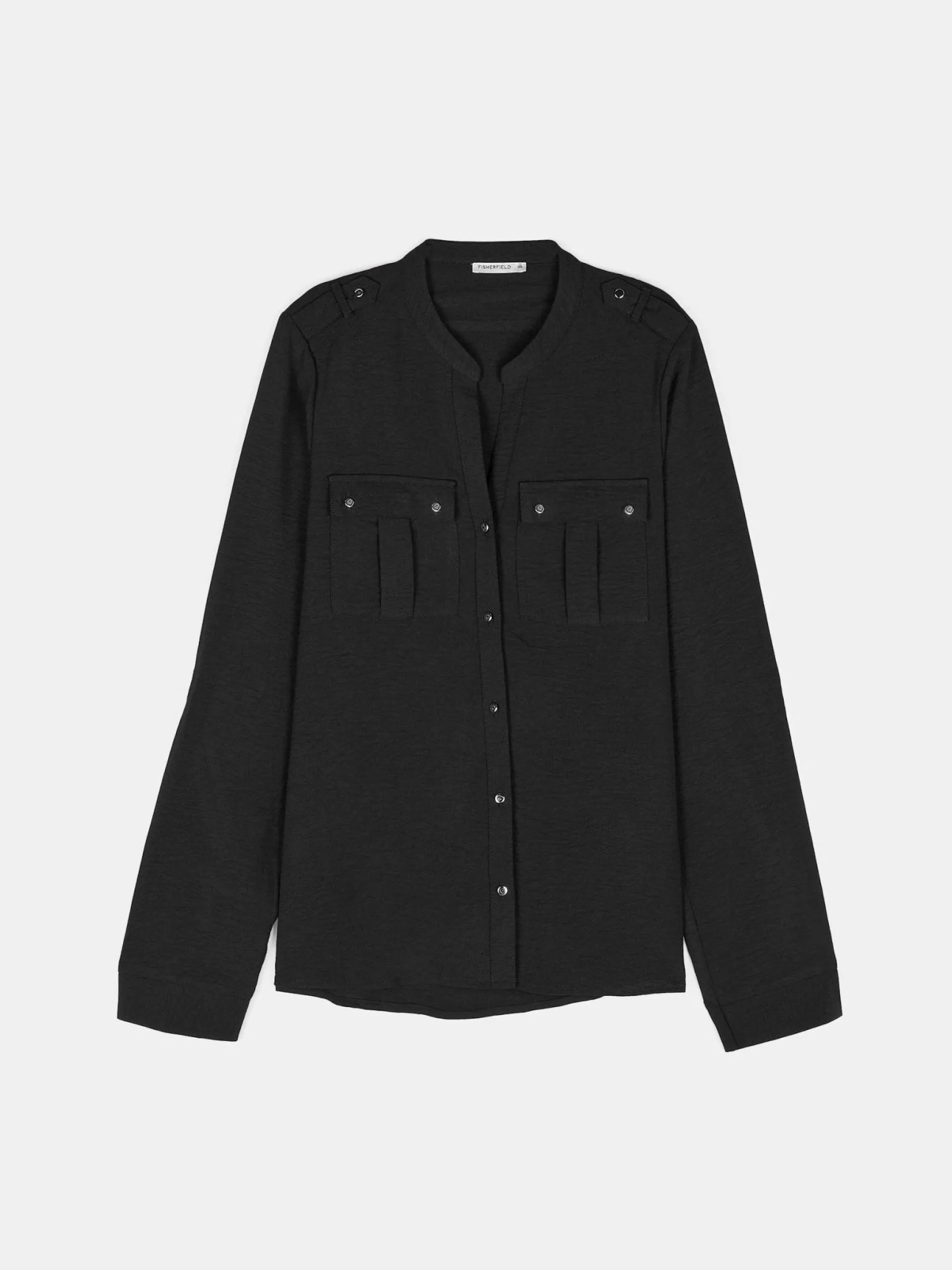 Kolor: czarnyKrój: regularTyp: bluzkaRekaw: długi rękawDługość: krótkiPattern style: pojedynczy kolorDetal: na gu…