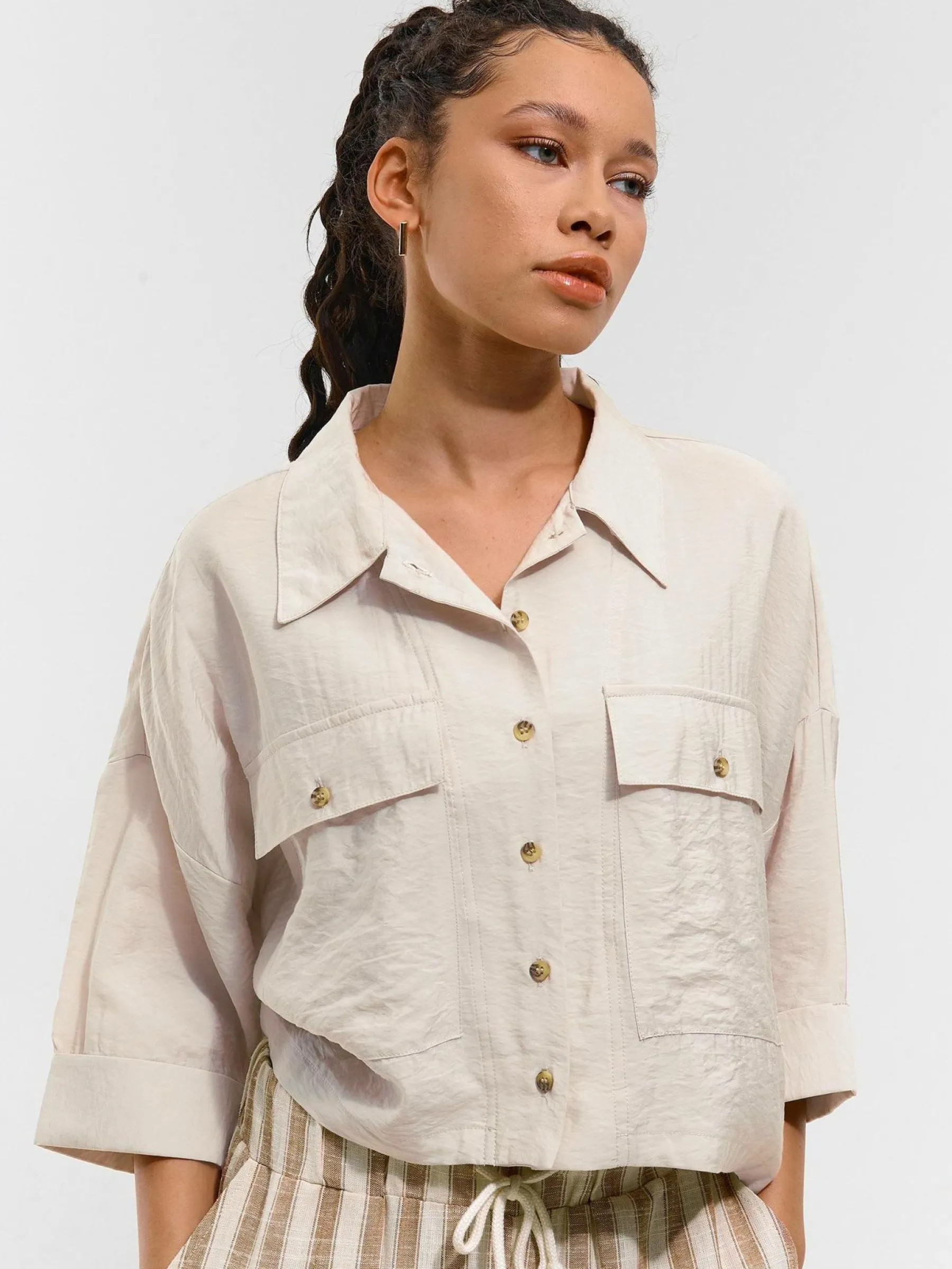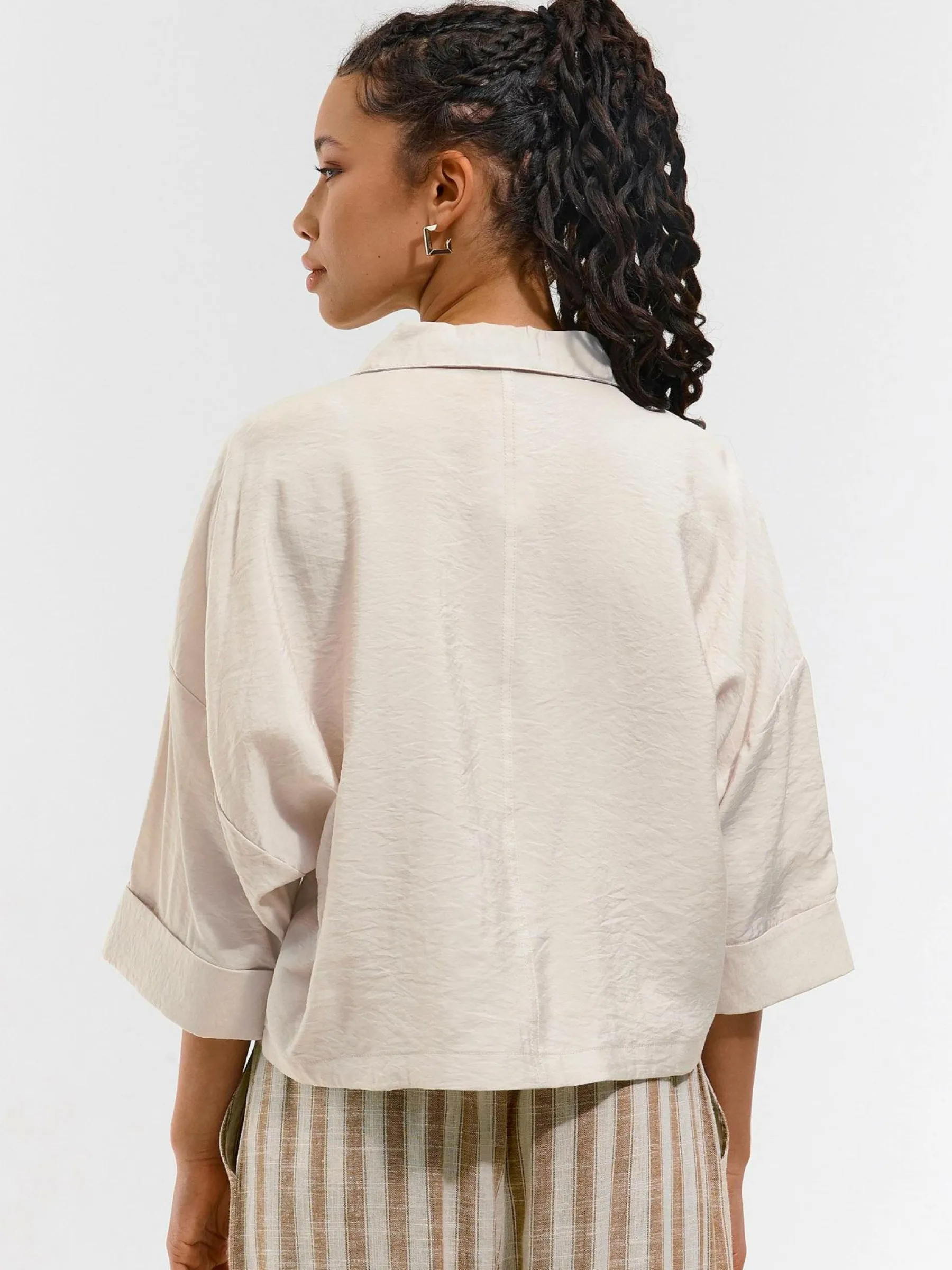 Kolor: beżowyKrój: regularTyp: bluzkaRekaw: krótki rękawDługość: krótkiPattern style: pojedynczy kolorDetal: na …