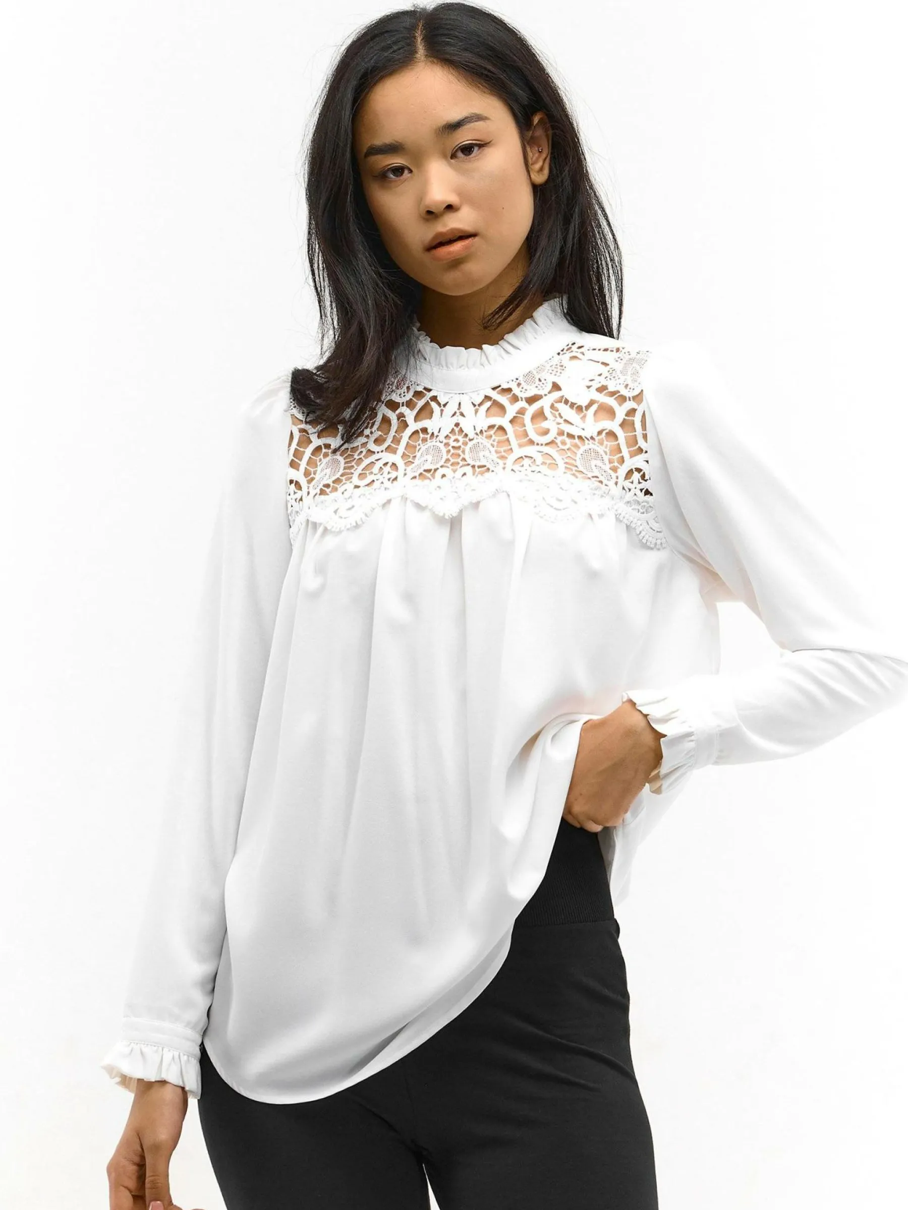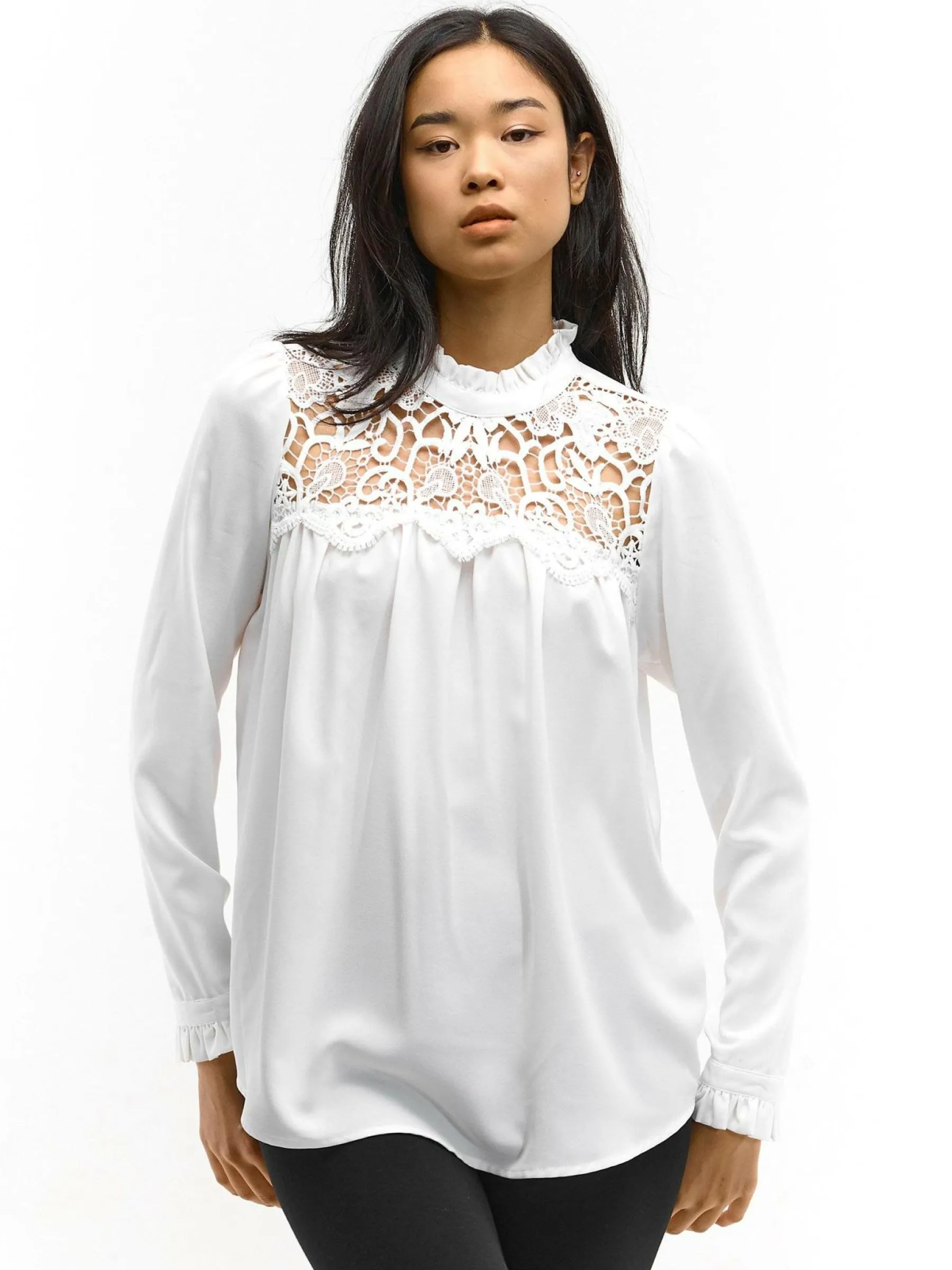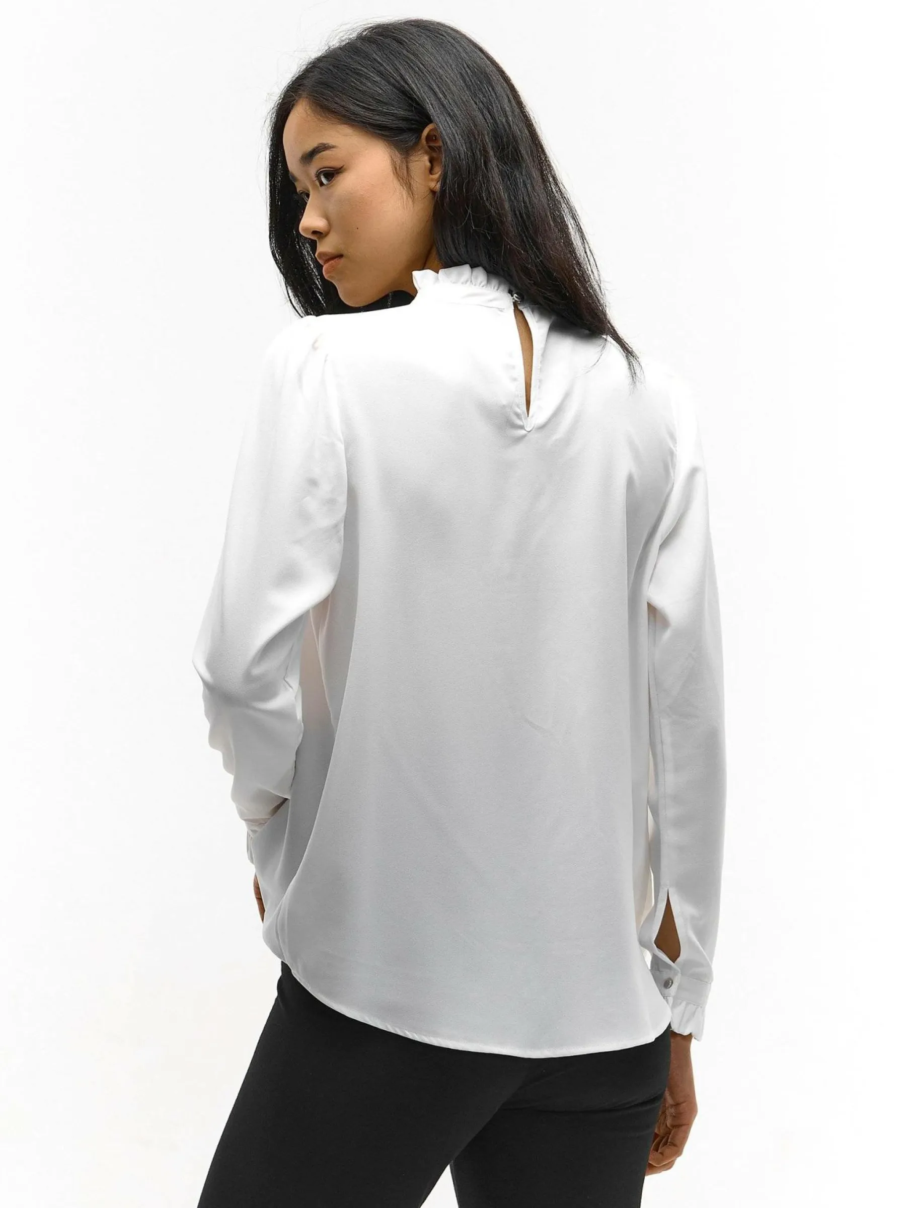 Kolor: białyKrój: z marszczeniemTyp: bluzka, topRekaw: długi rękawDługość: krótkiPattern style: pojedynczy kolor…