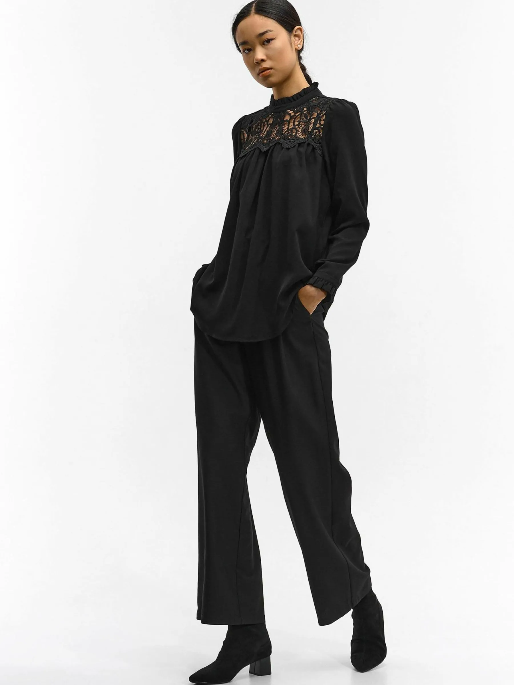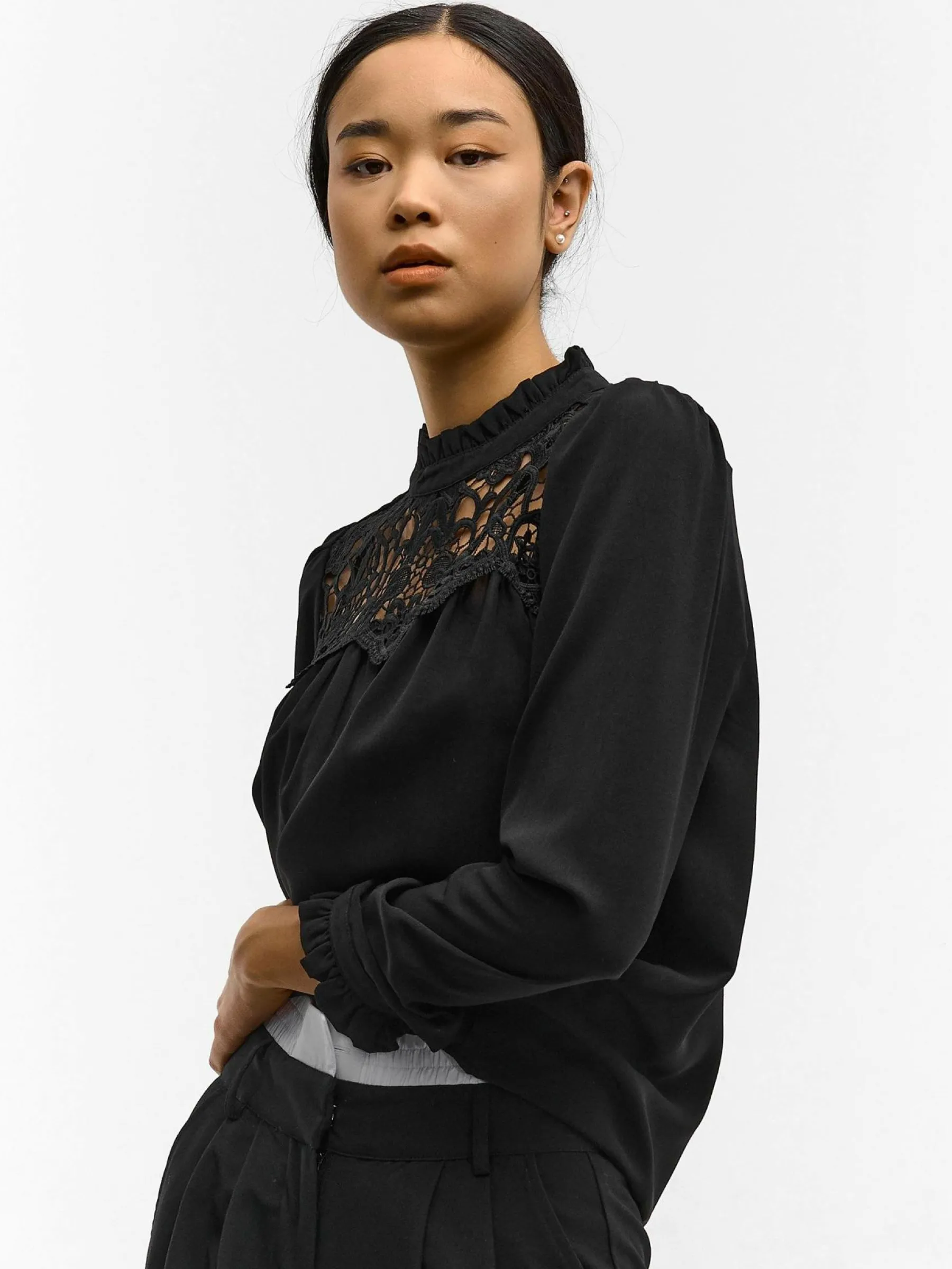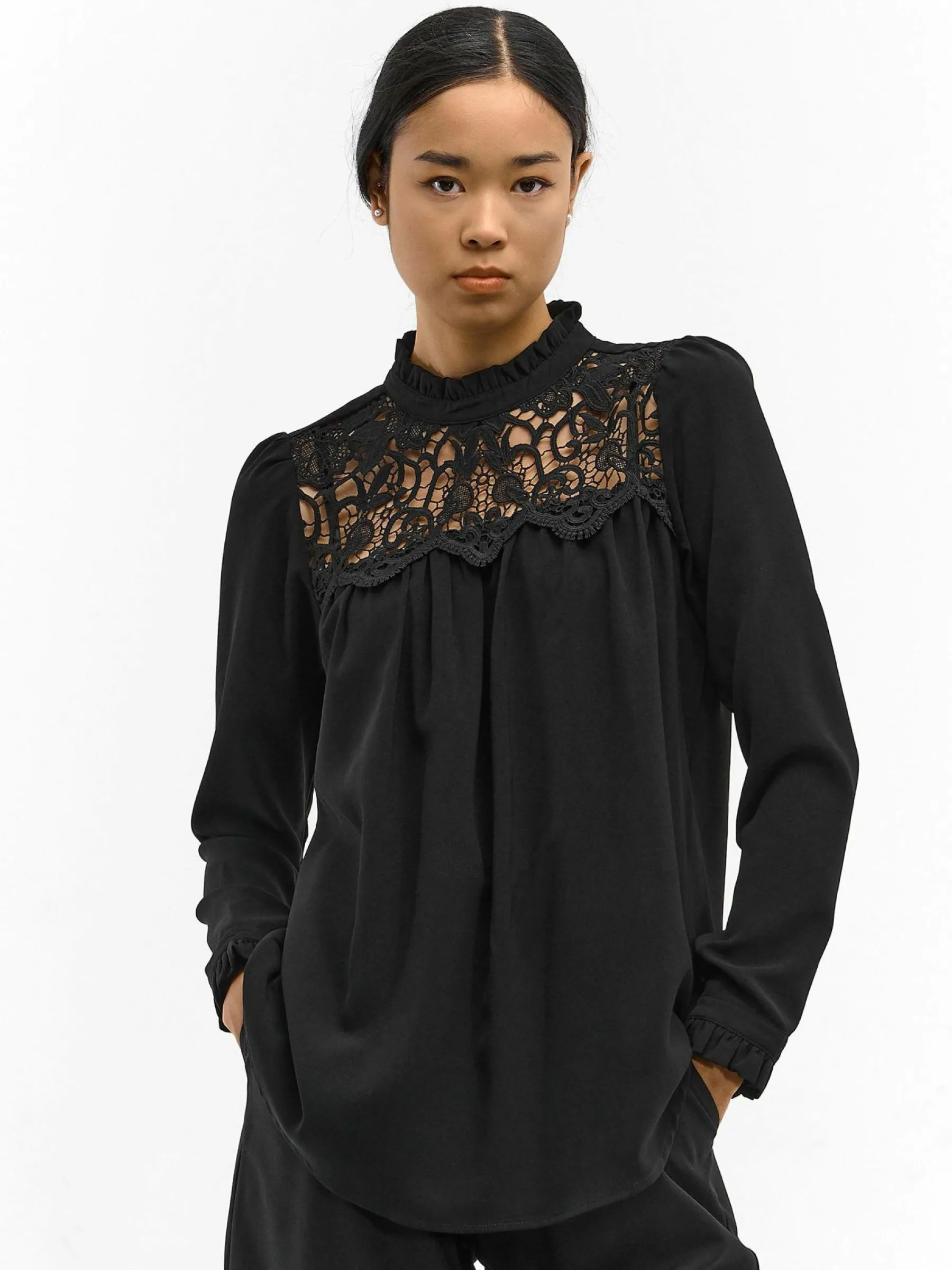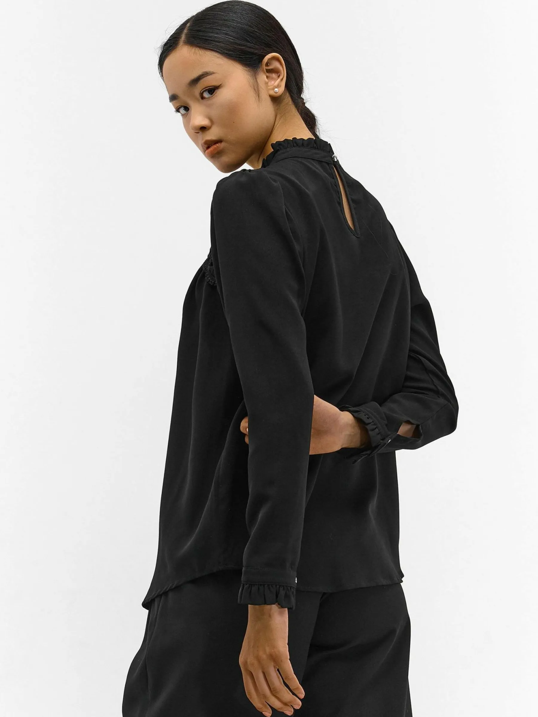 Kolor: czarnyKrój: z marszczeniemTyp: bluzka, topRekaw: długi rękawDługość: krótkiPattern style: pojedynczy kolor…