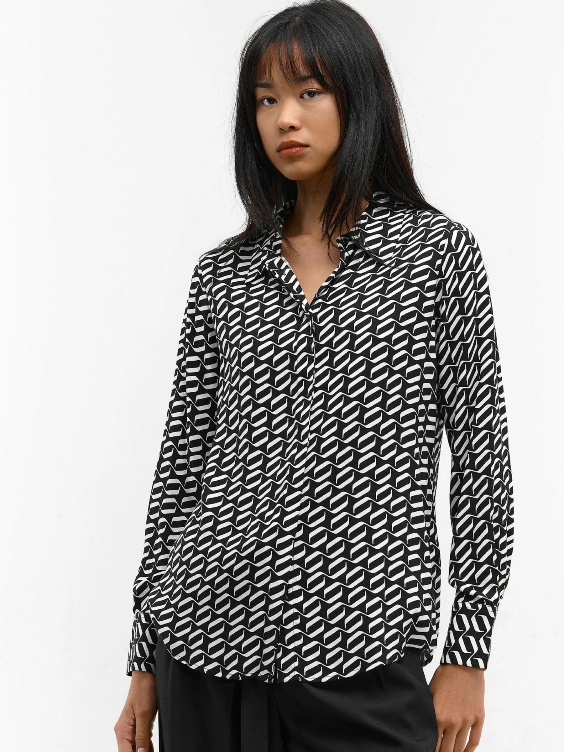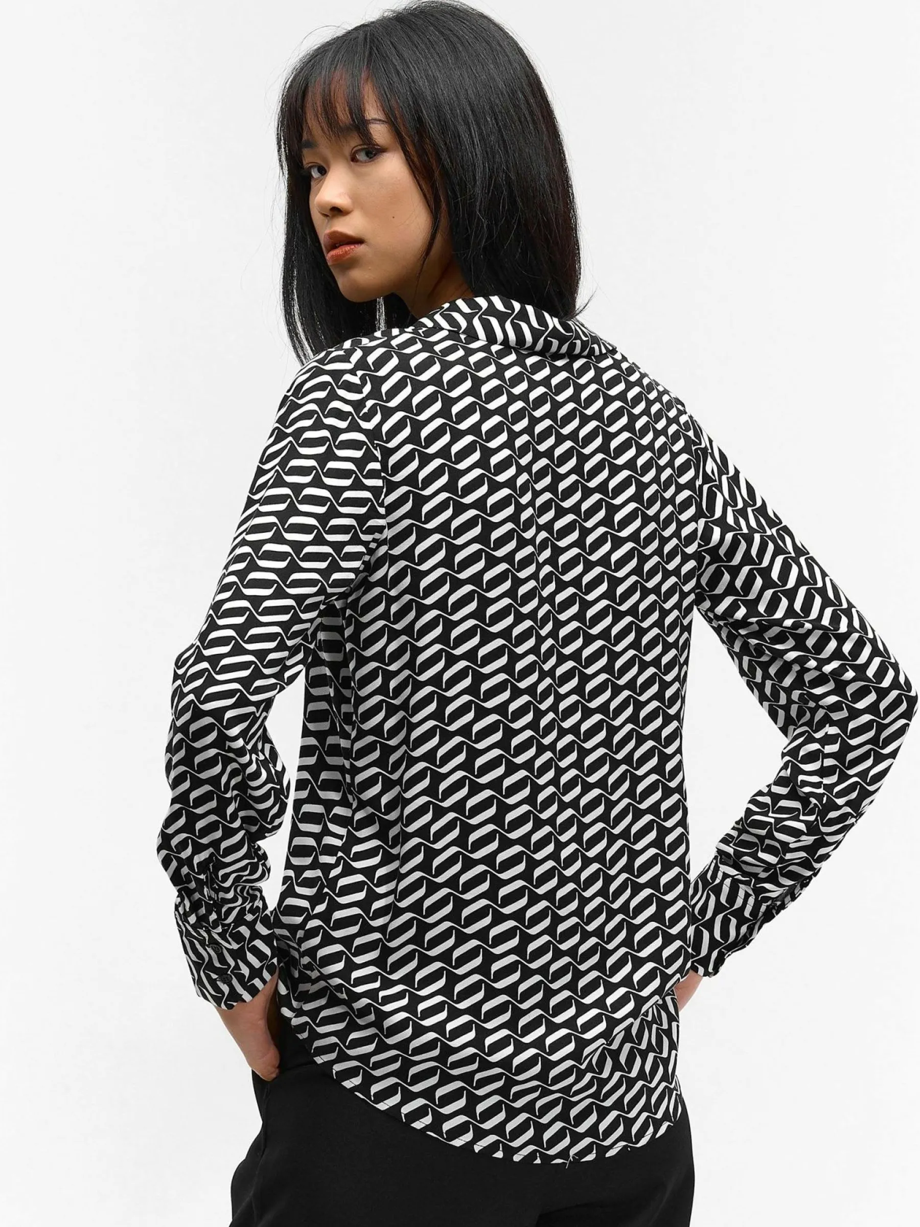 Kolor: czarnyKrój: podstawowyTyp: bluzkaRekaw: długi rękawDługość: krótkiPattern style: wzorzysteDetal: na guziki…