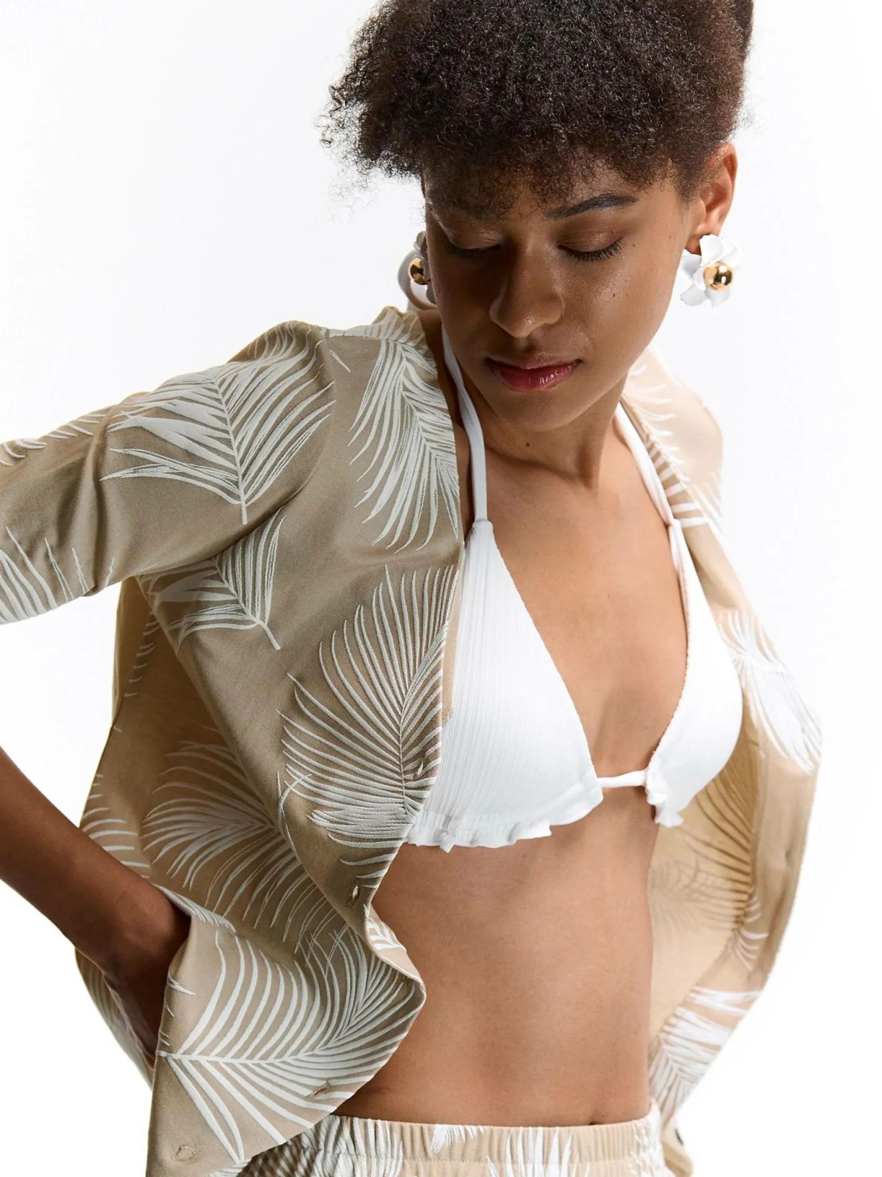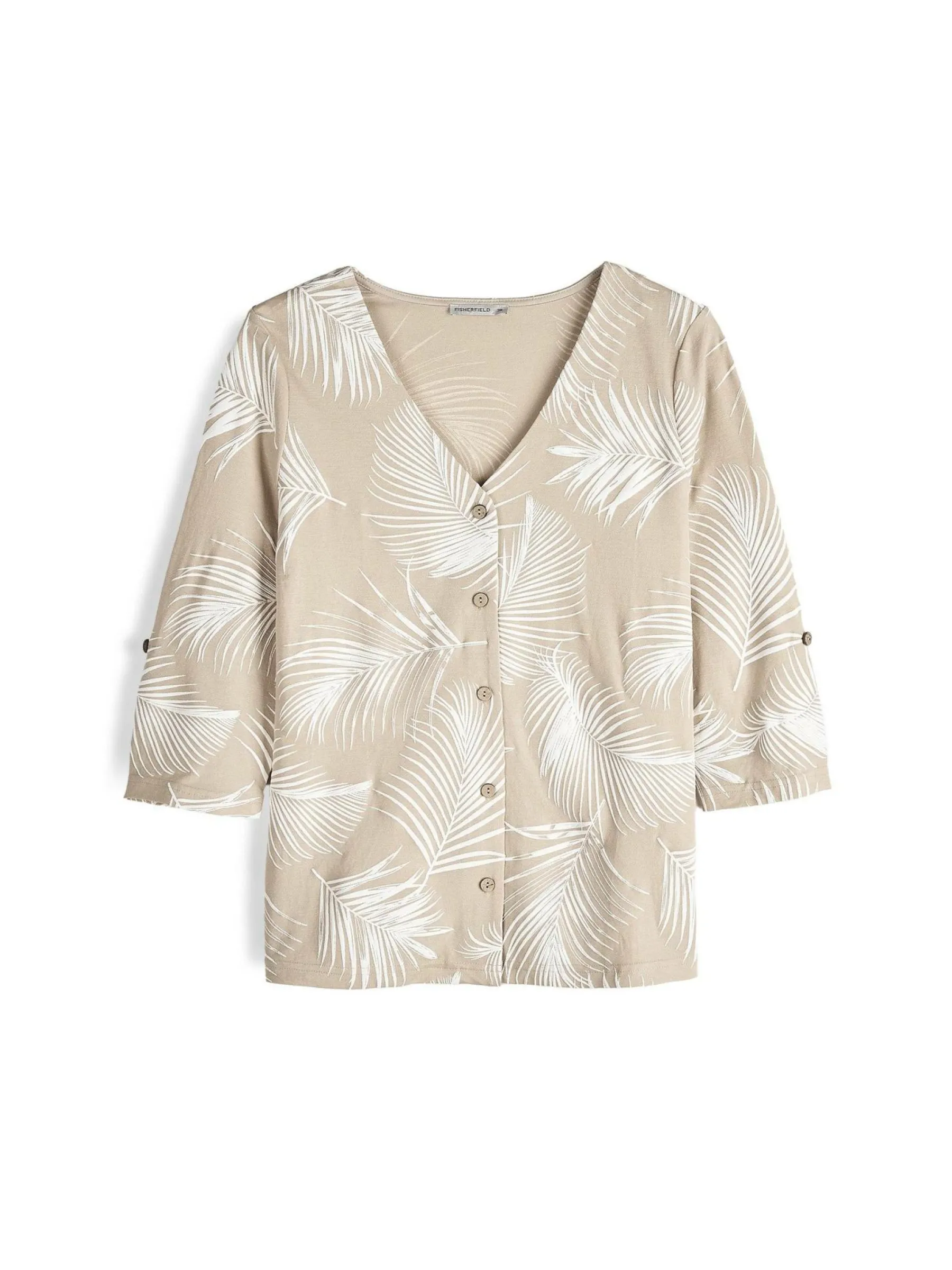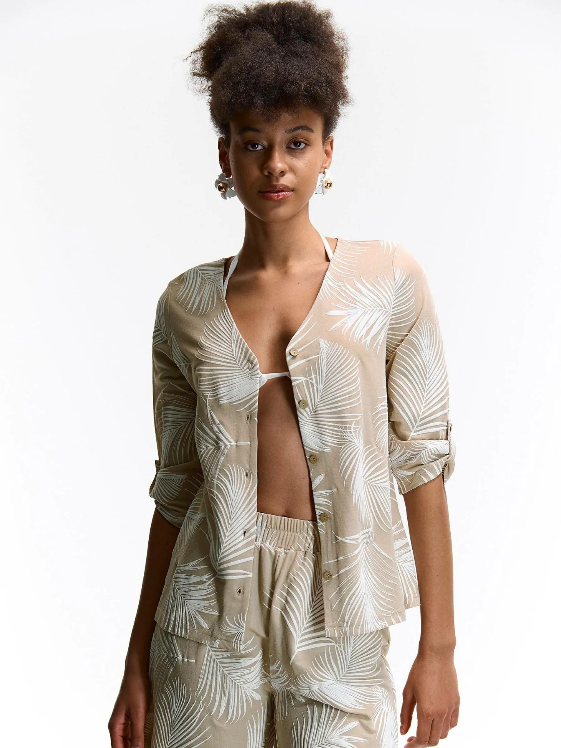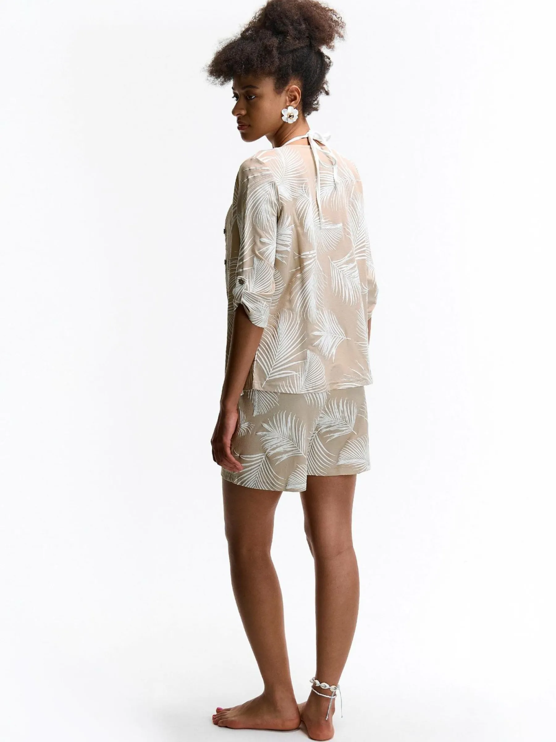 Kolor: beżowyKrój: regularTyp: bluzkaRekaw: krótki rękawDługość: krótkiPattern style: wzorzysteDetal: na guzikiM…