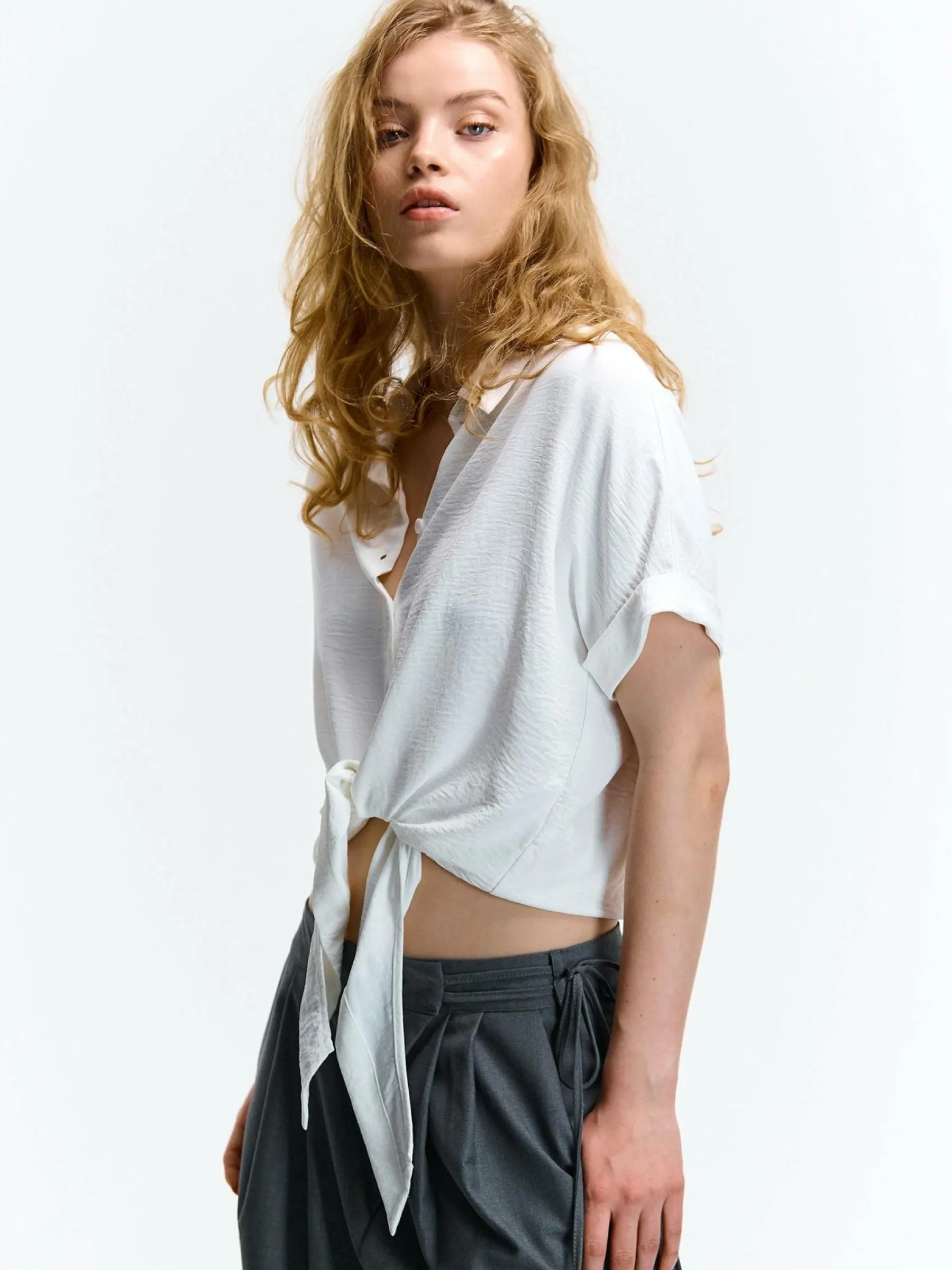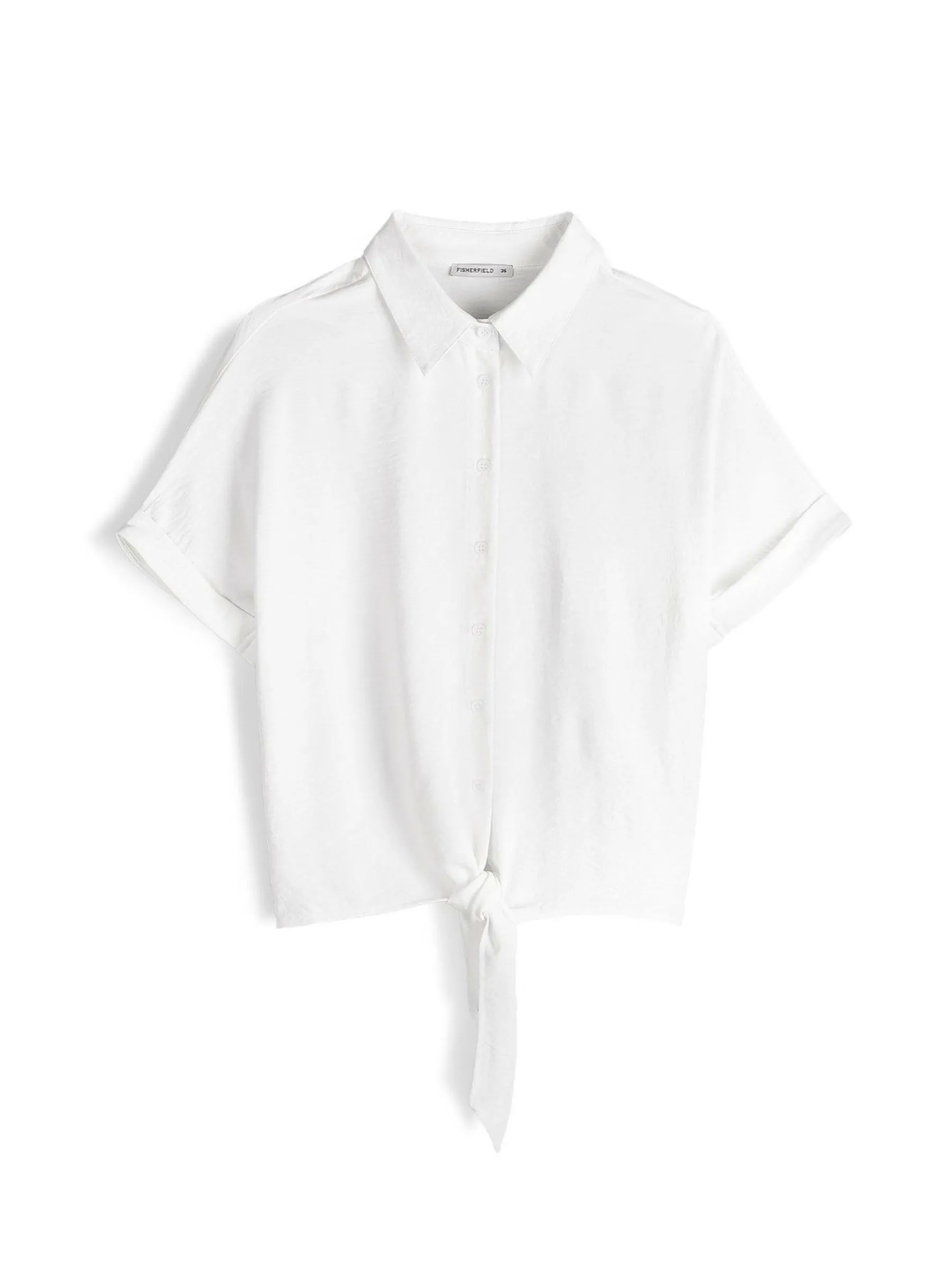 Kolor: białyKrój: regularTyp: bluzkaRekaw: krótki rękawDługość: krótki topPattern style: pojedynczy kolorDetal: …