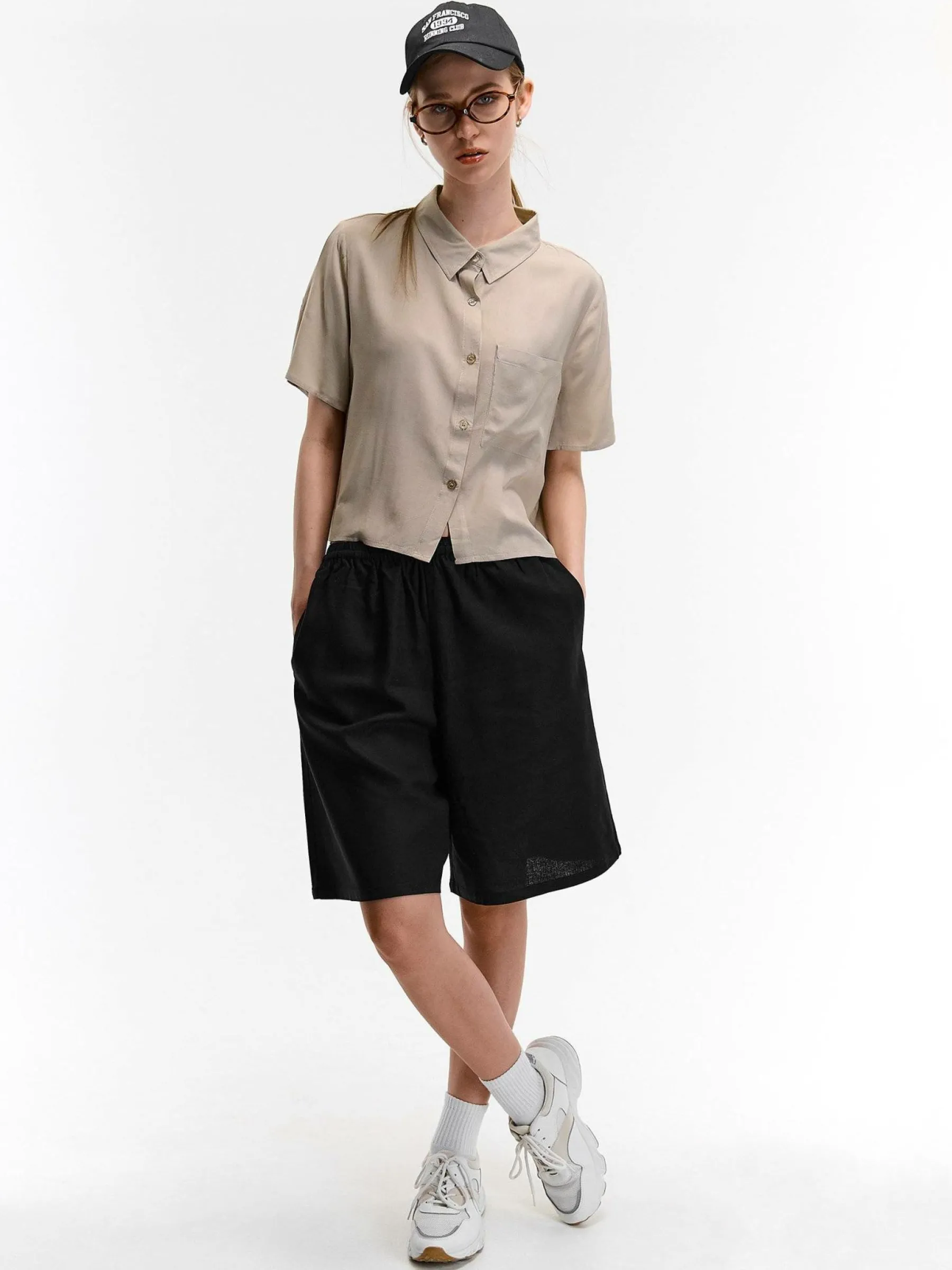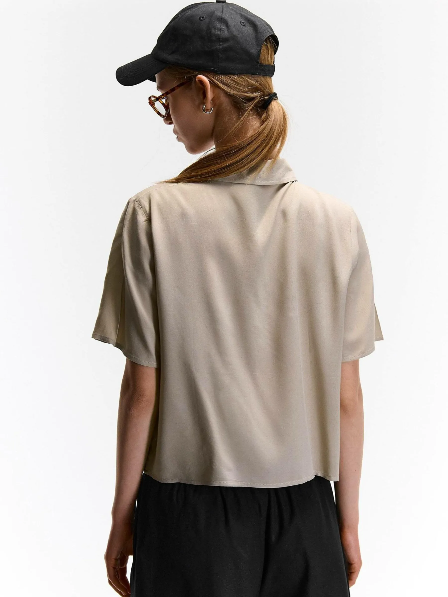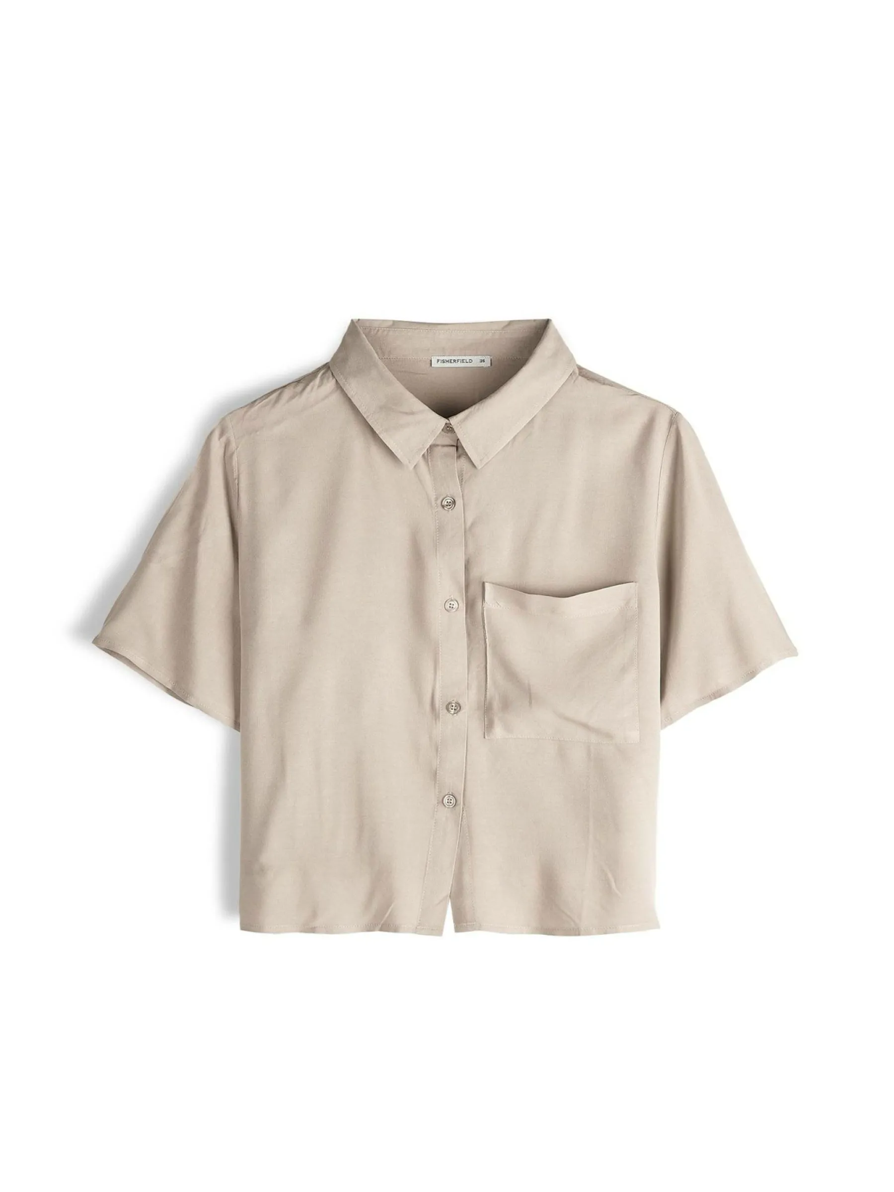 Kolor: beżowyKrój: podstawowyTyp: bluzkaRekaw: krótki rękawDługość: krótki topPattern style: pojedynczy kolorDet…