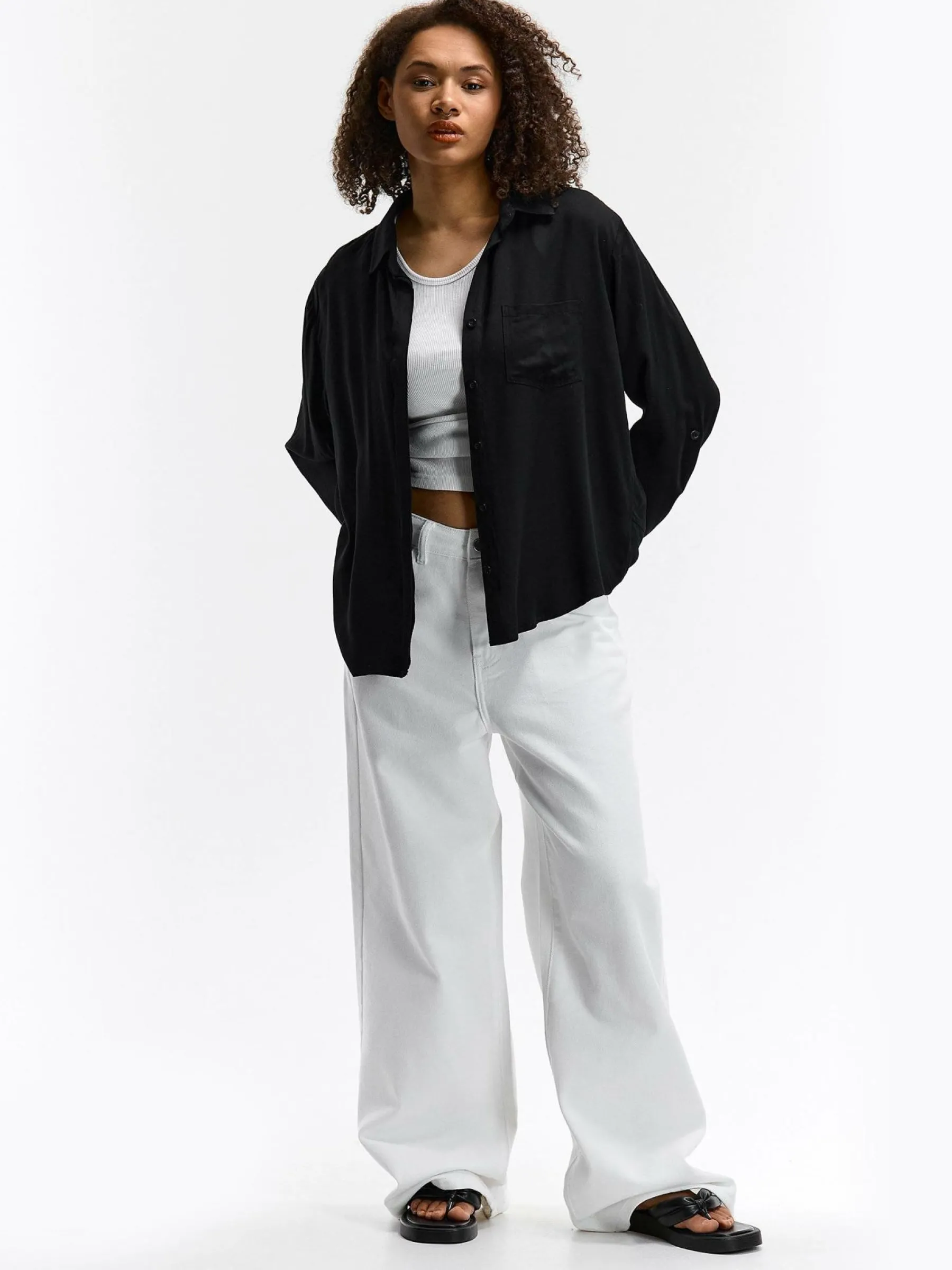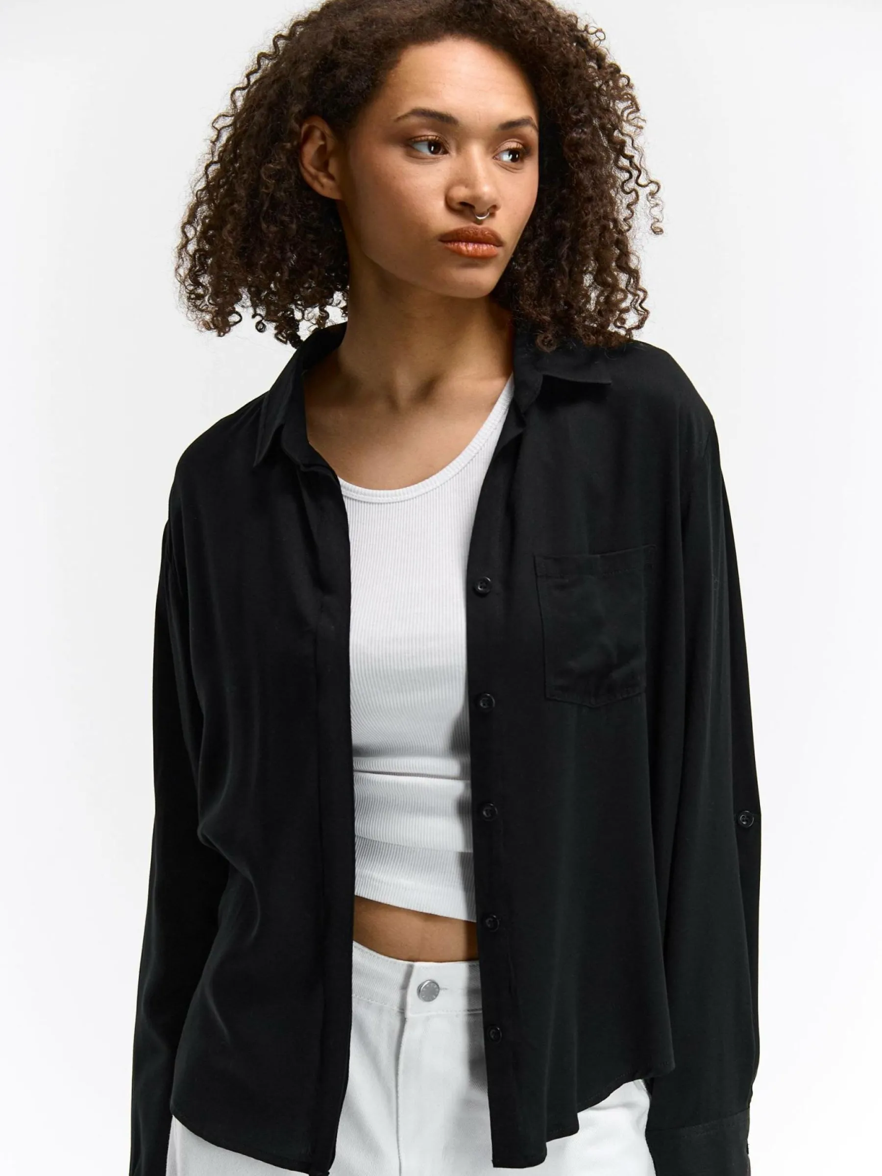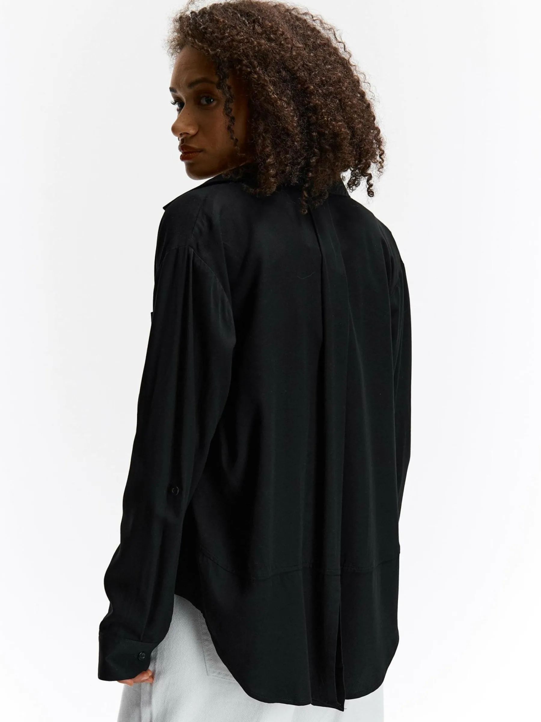 Kolor: czarnyKrój: asymetryczneTyp: bluzkaRekaw: długi rękawDługość: krótkiPattern style: pojedynczy kolorDetal: …