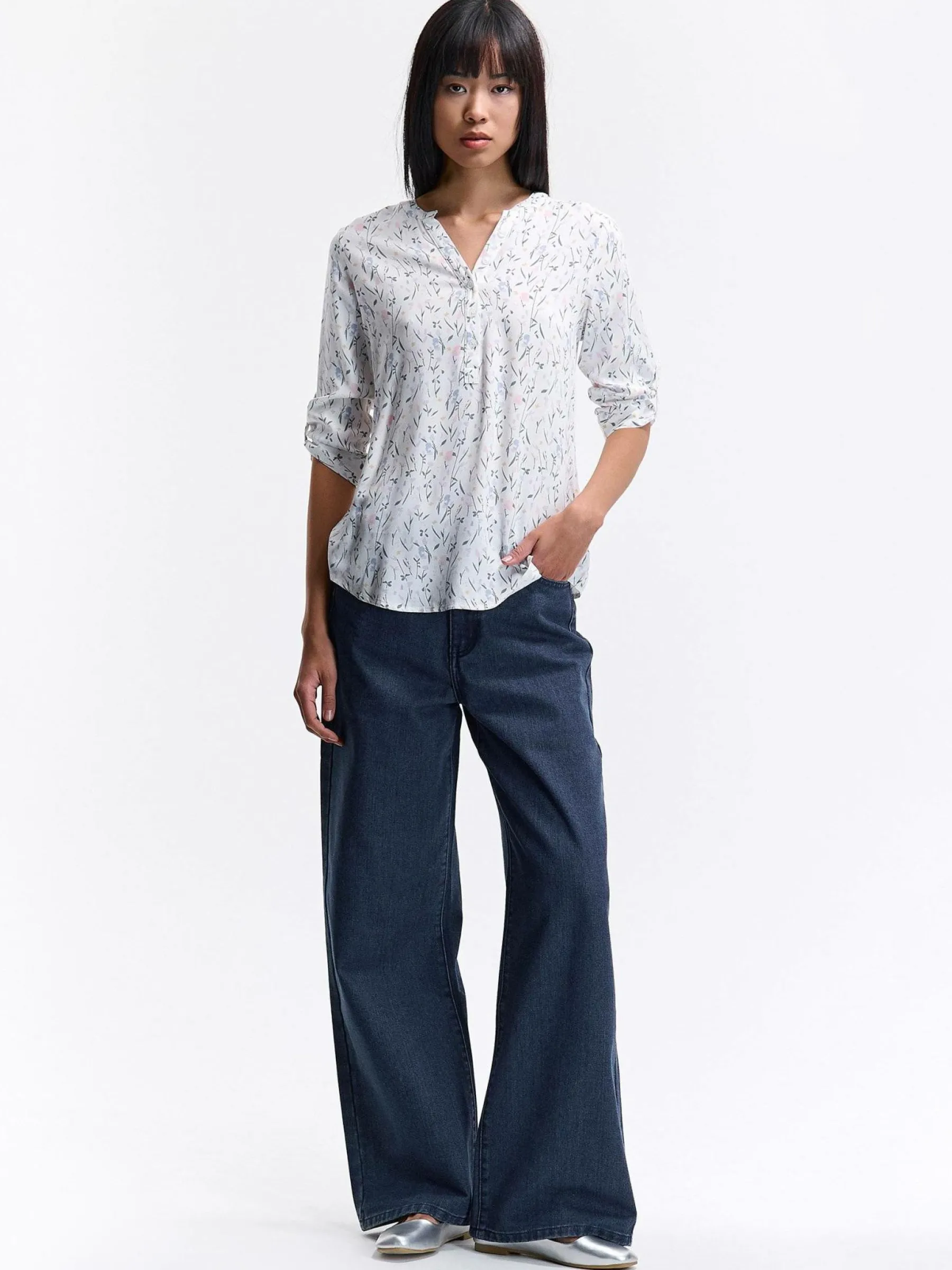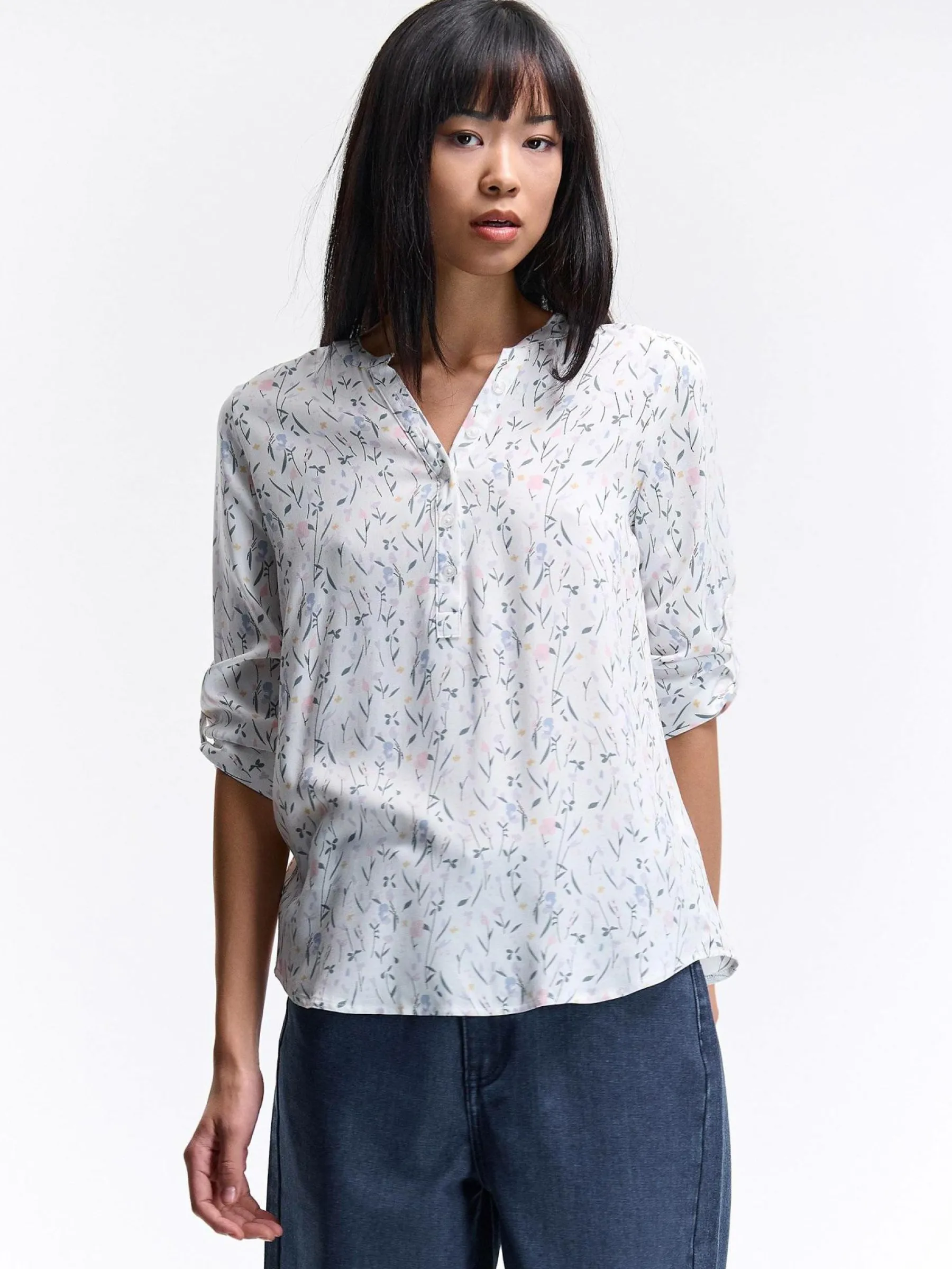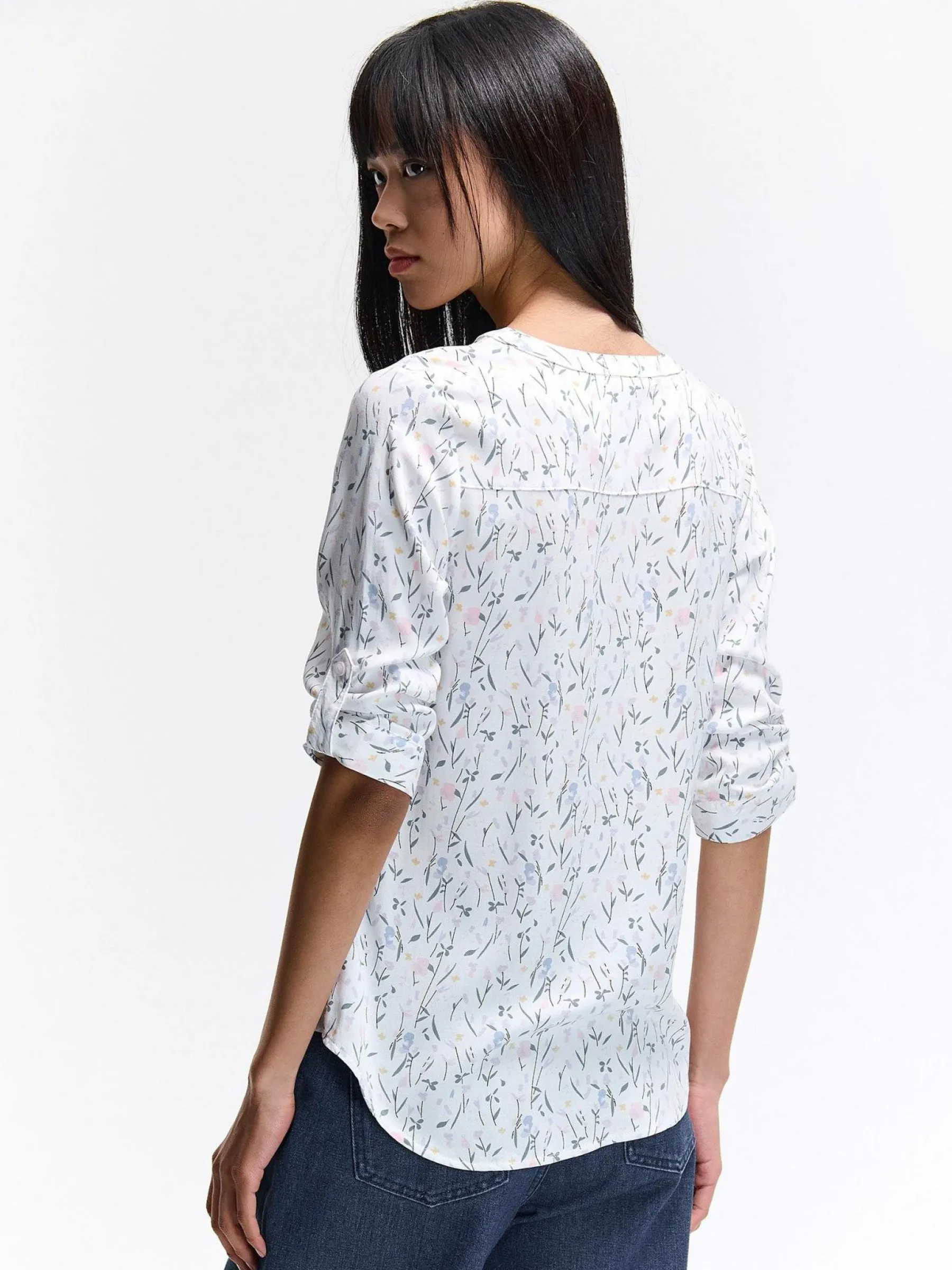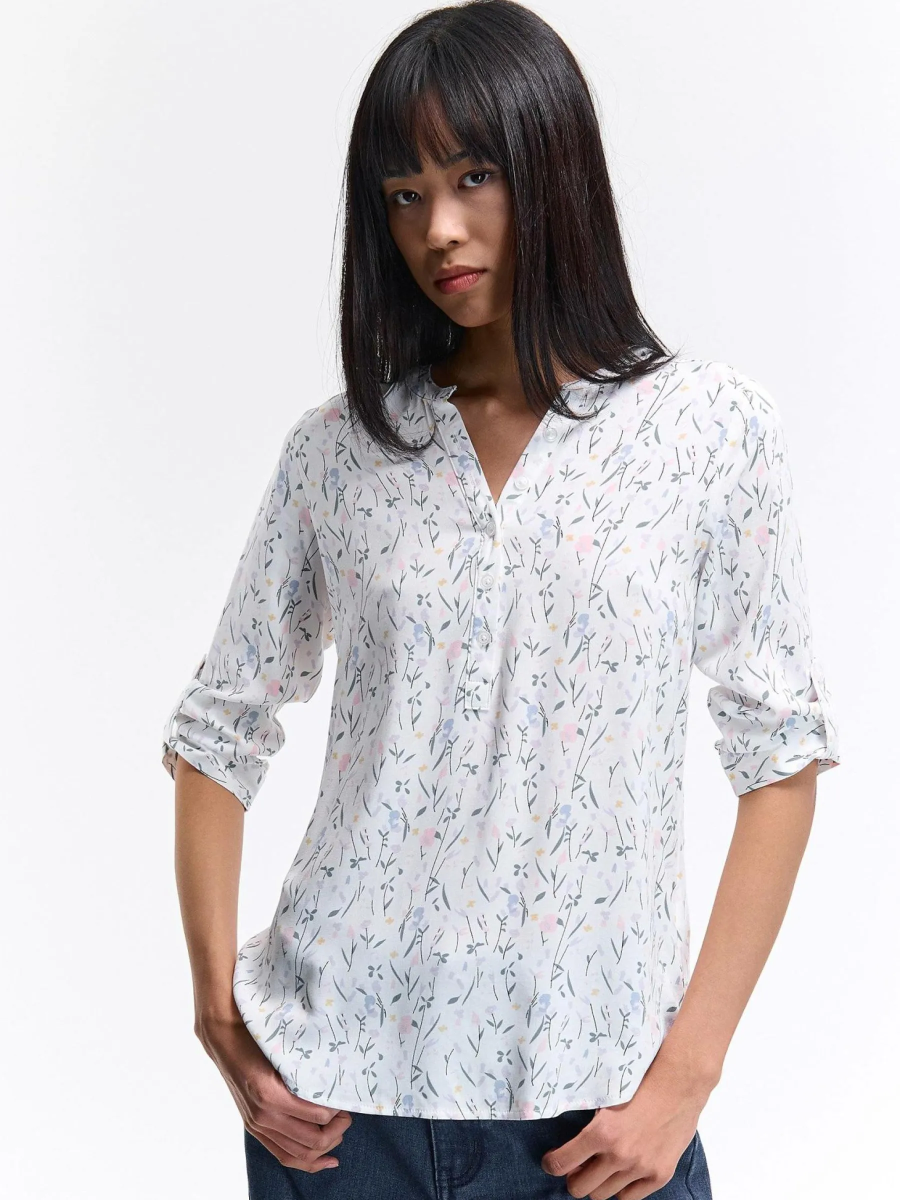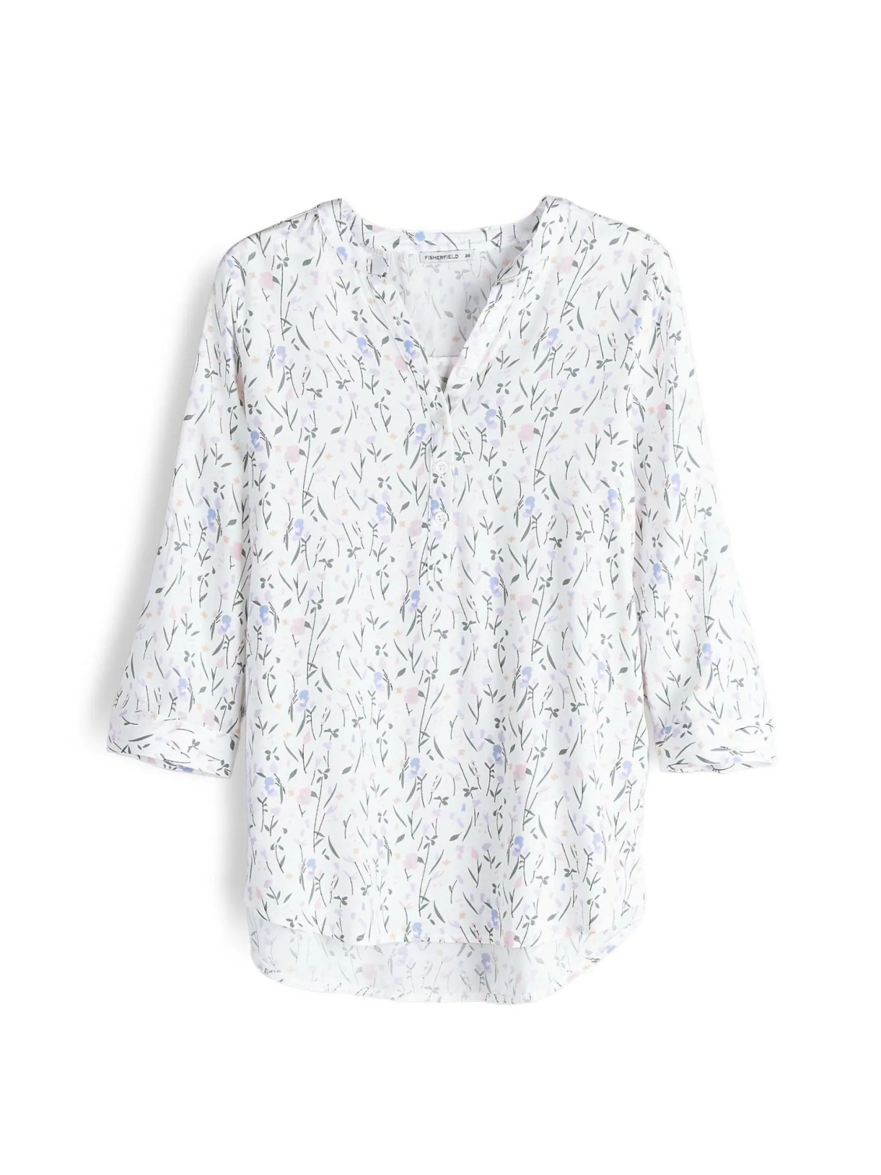 Kolor: białyKrój: regularTyp: bluzkaRekaw: rękaw 3/4Długość: krótkiPattern style: z nadrukiem, kwiatoweDetal: v-n…