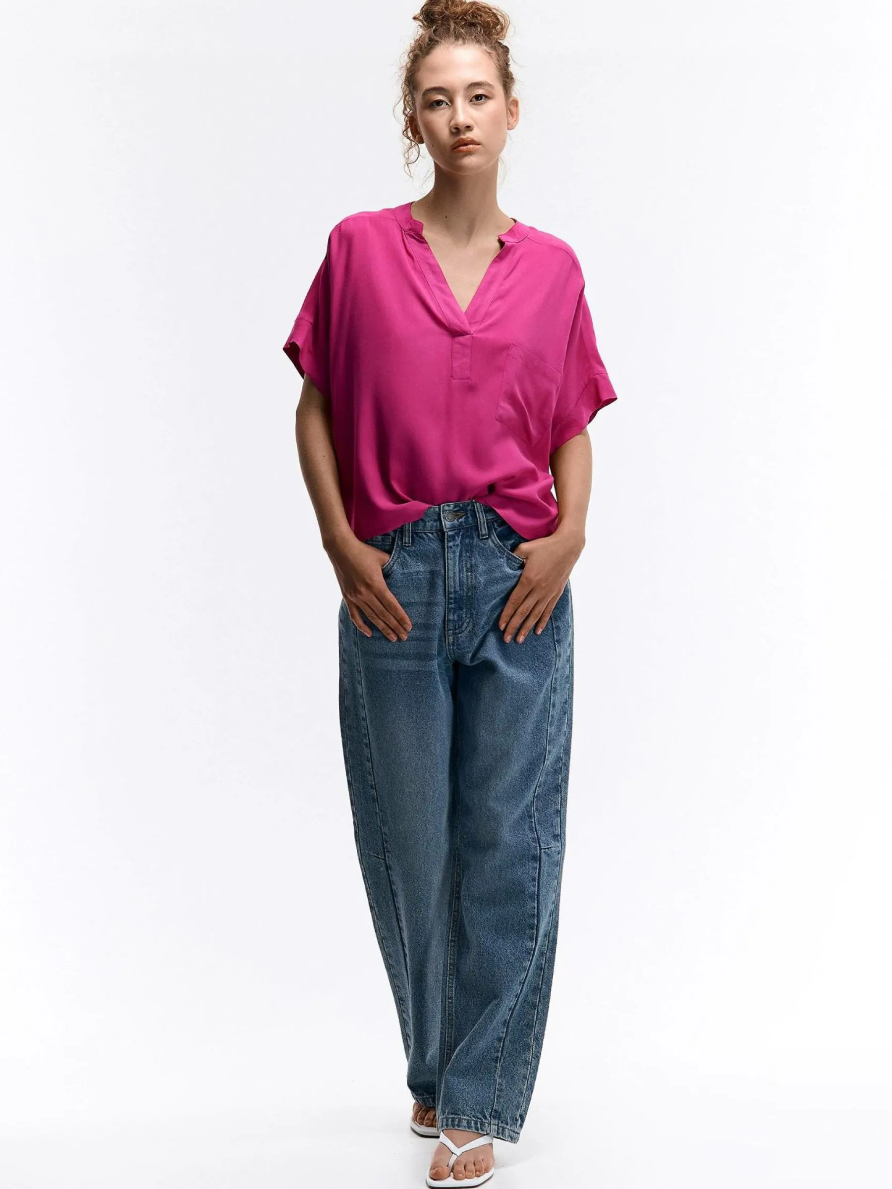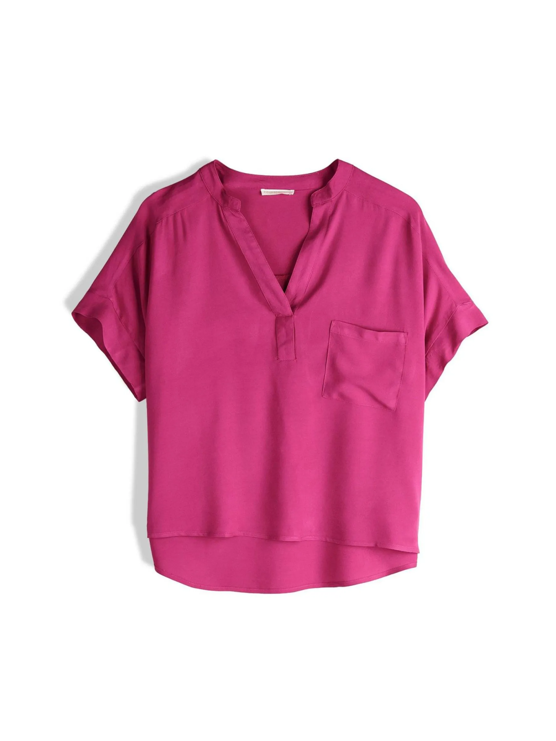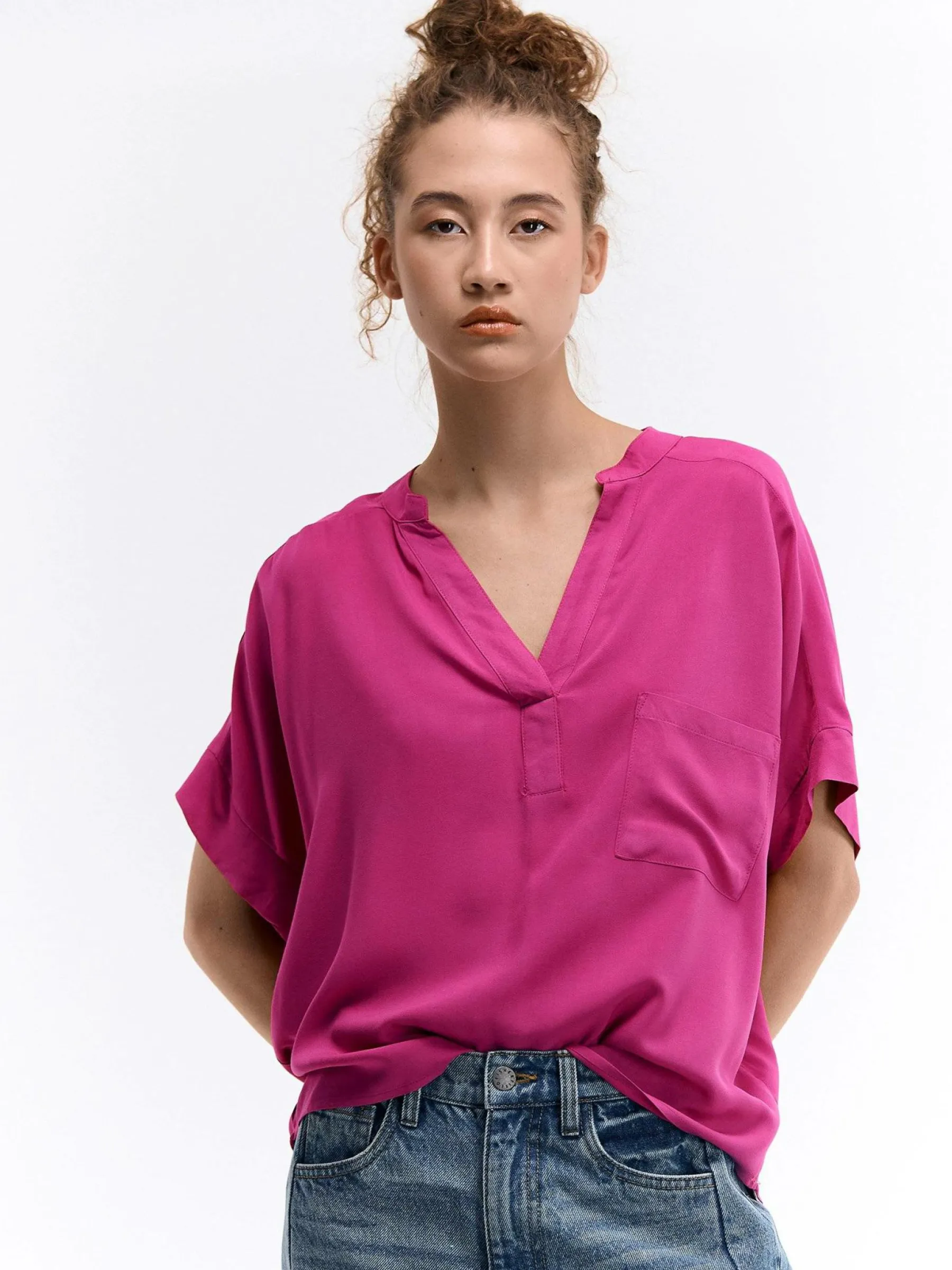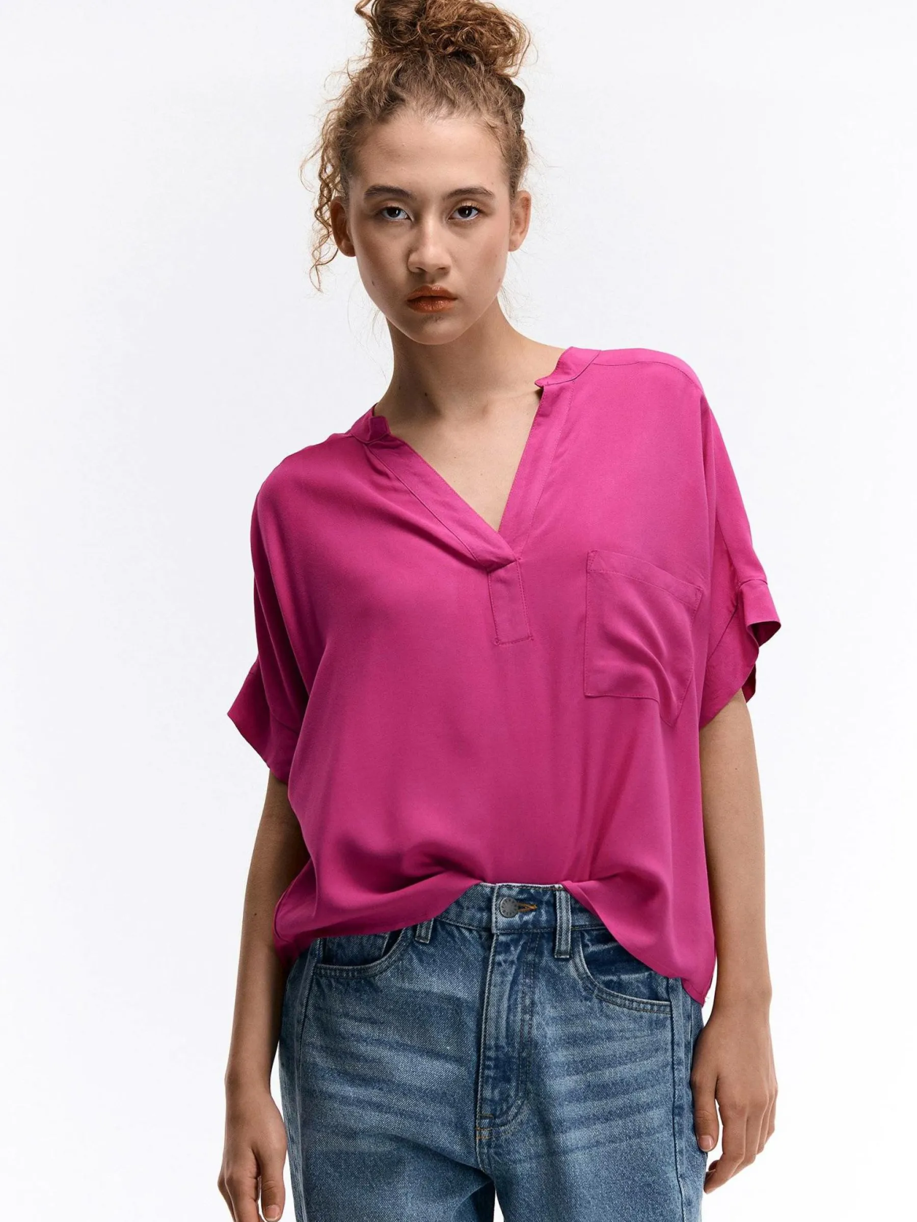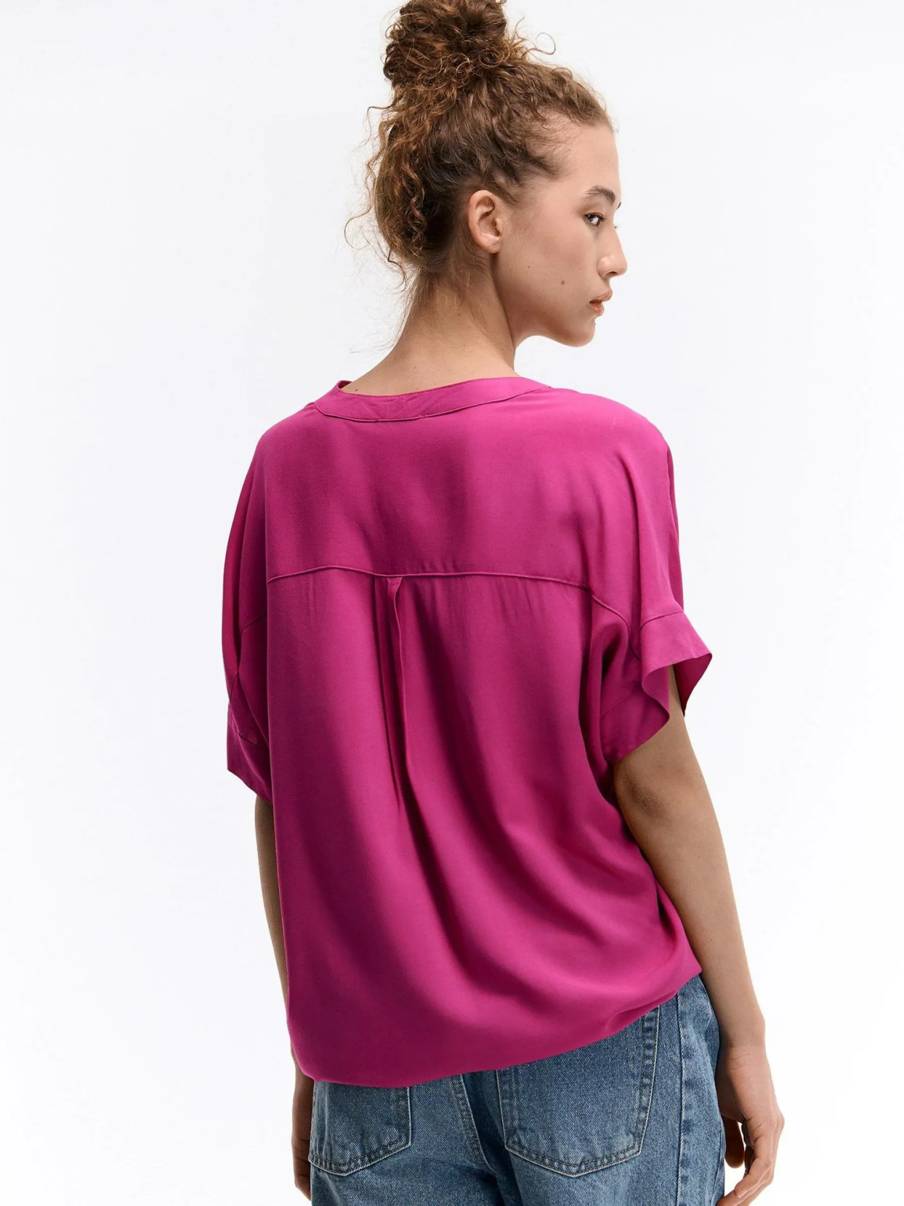 Kolor: różowy, purpurowyKrój: regularTyp: bluzkaRekaw: krótki rękawDługość: krótkiPattern style: pojedynczy kol…