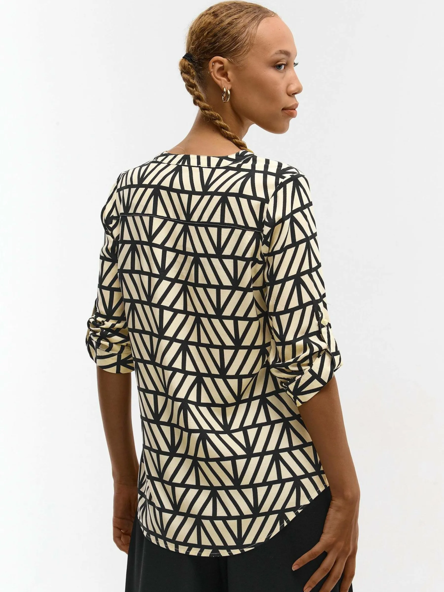Kolor: beżowyKrój: regularTyp: bluzkaRekaw: rękaw 3/4Długość: krótkiPattern style: z nadrukiemDetal: nad głową,…