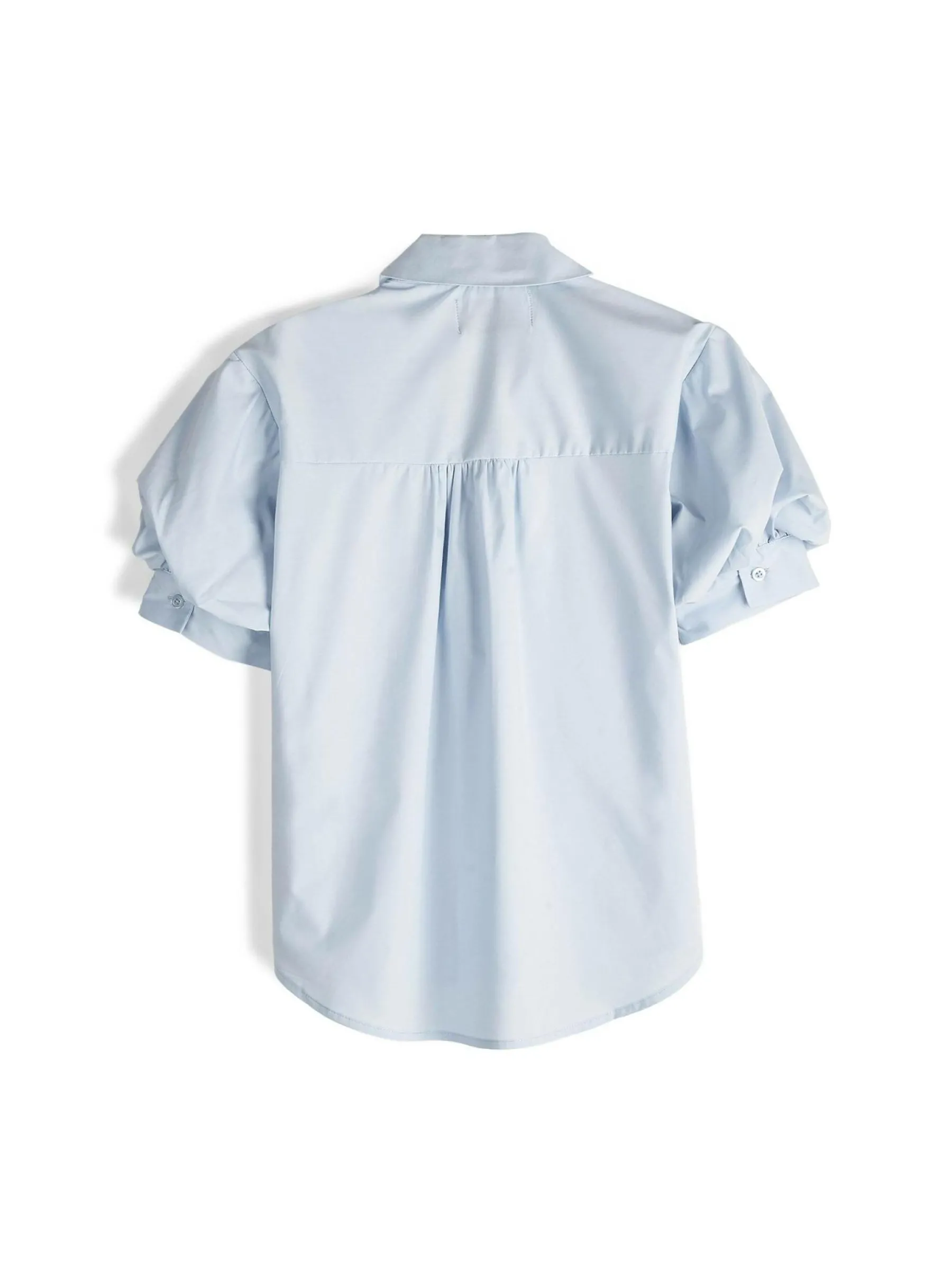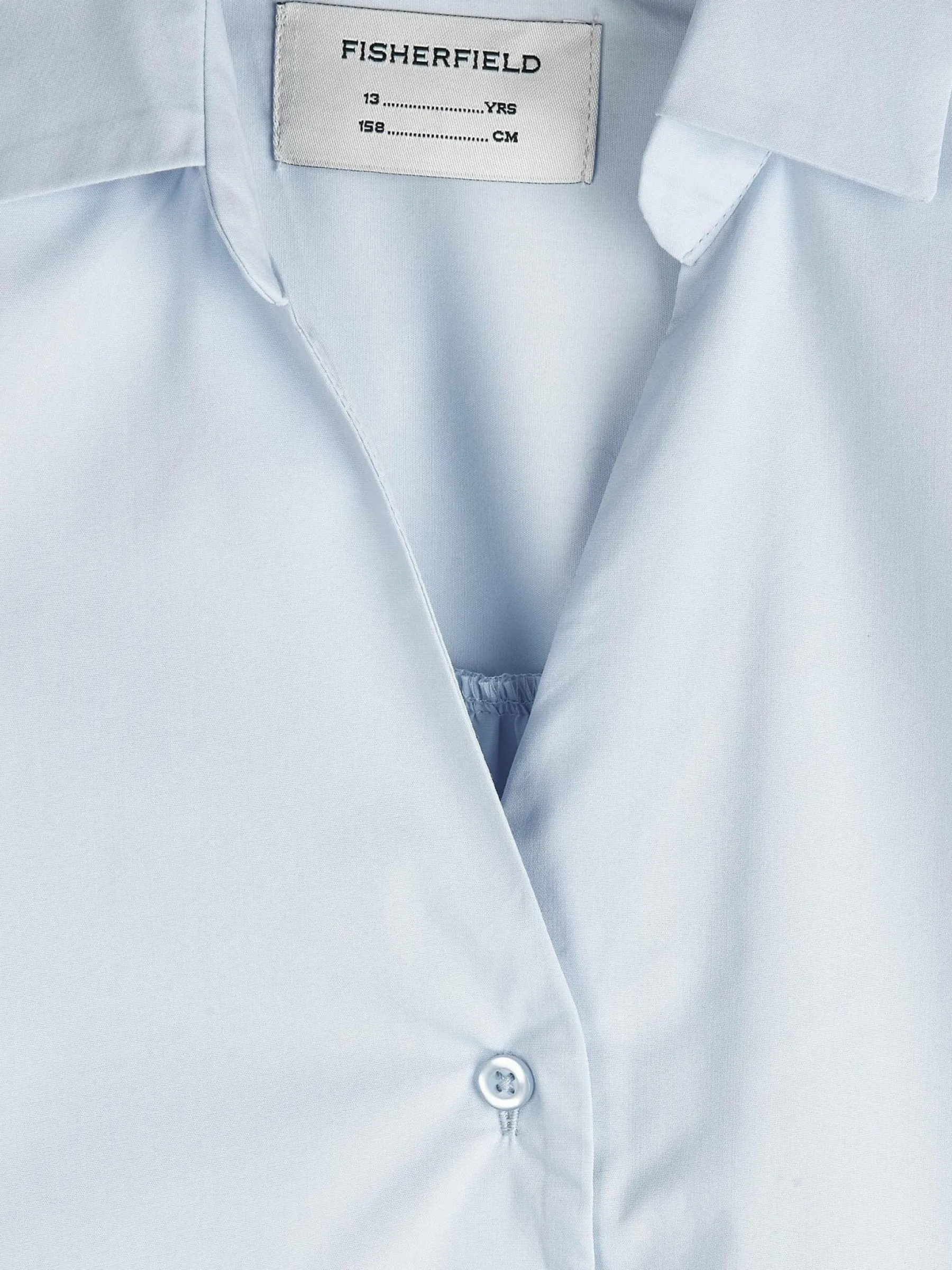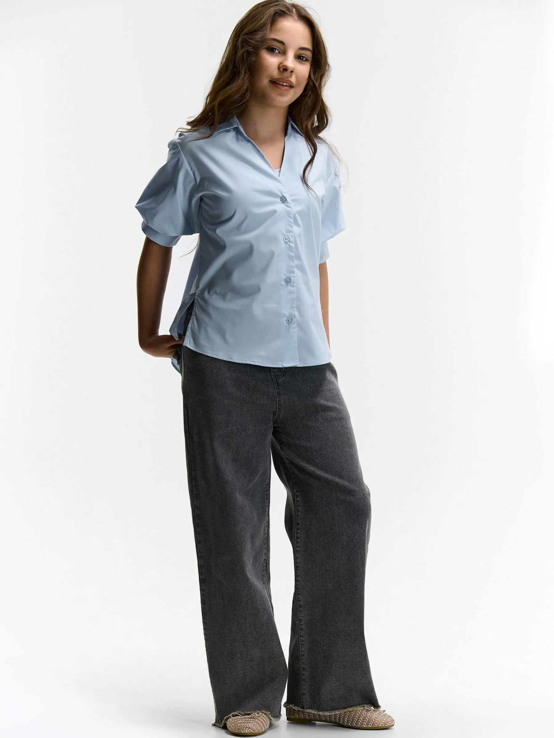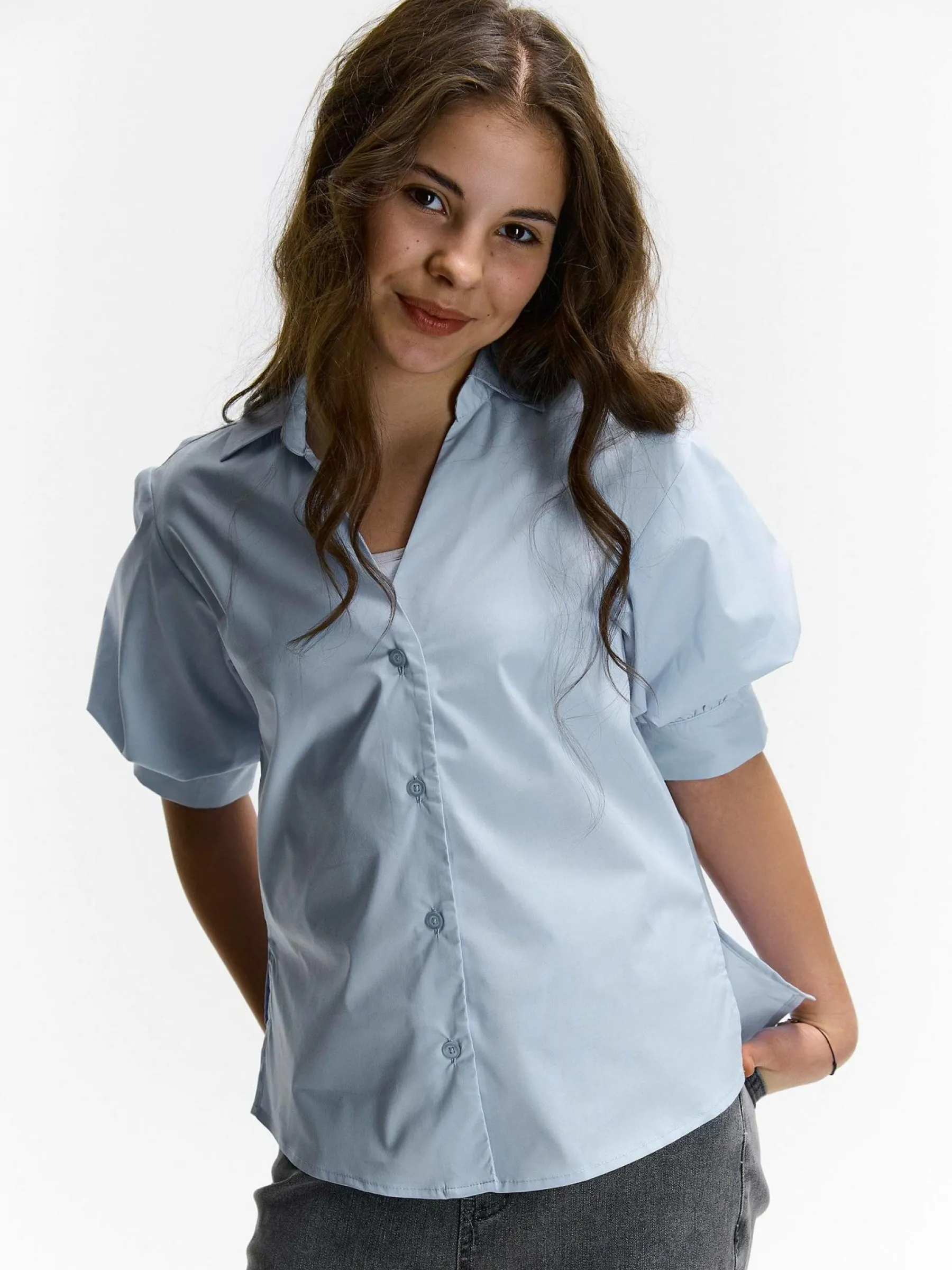 Kolor: niebieskiKrój: podstawowyTyp: bluzkaRekaw: krótki rękawDługość: krótkiPattern style: pojedynczy kolorDetal…