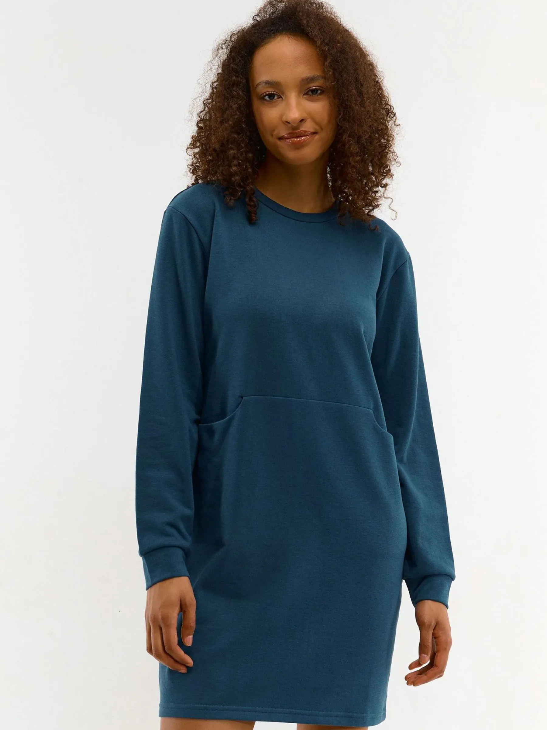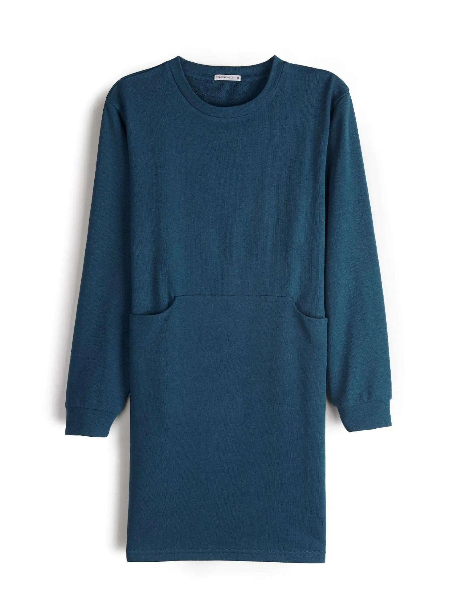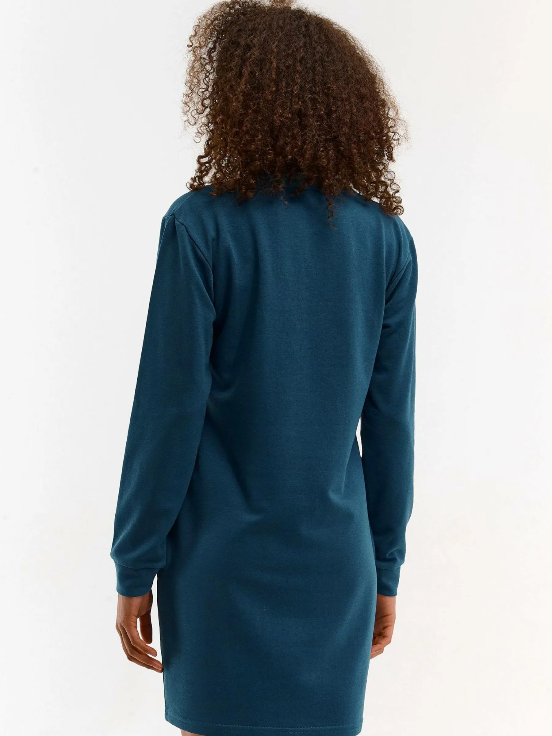 Kolor: granatowy, niebieskiKrój: bluza sportowaTyp: sukienkaRekaw: długi rękawDługość: miniPattern style: pojedync…