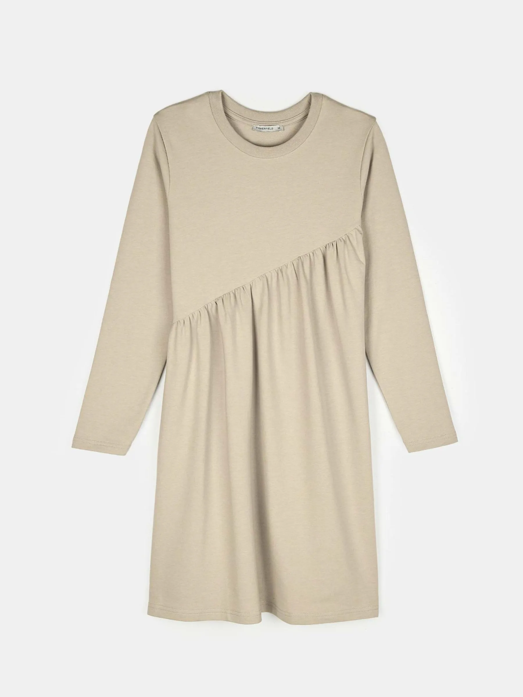 Zdjęcia z modelką mogą nie odpowiadać rzeczywistemu kolorowi produktu.Kolor: beżowyKrój: z marszczeniemTyp: sukien…