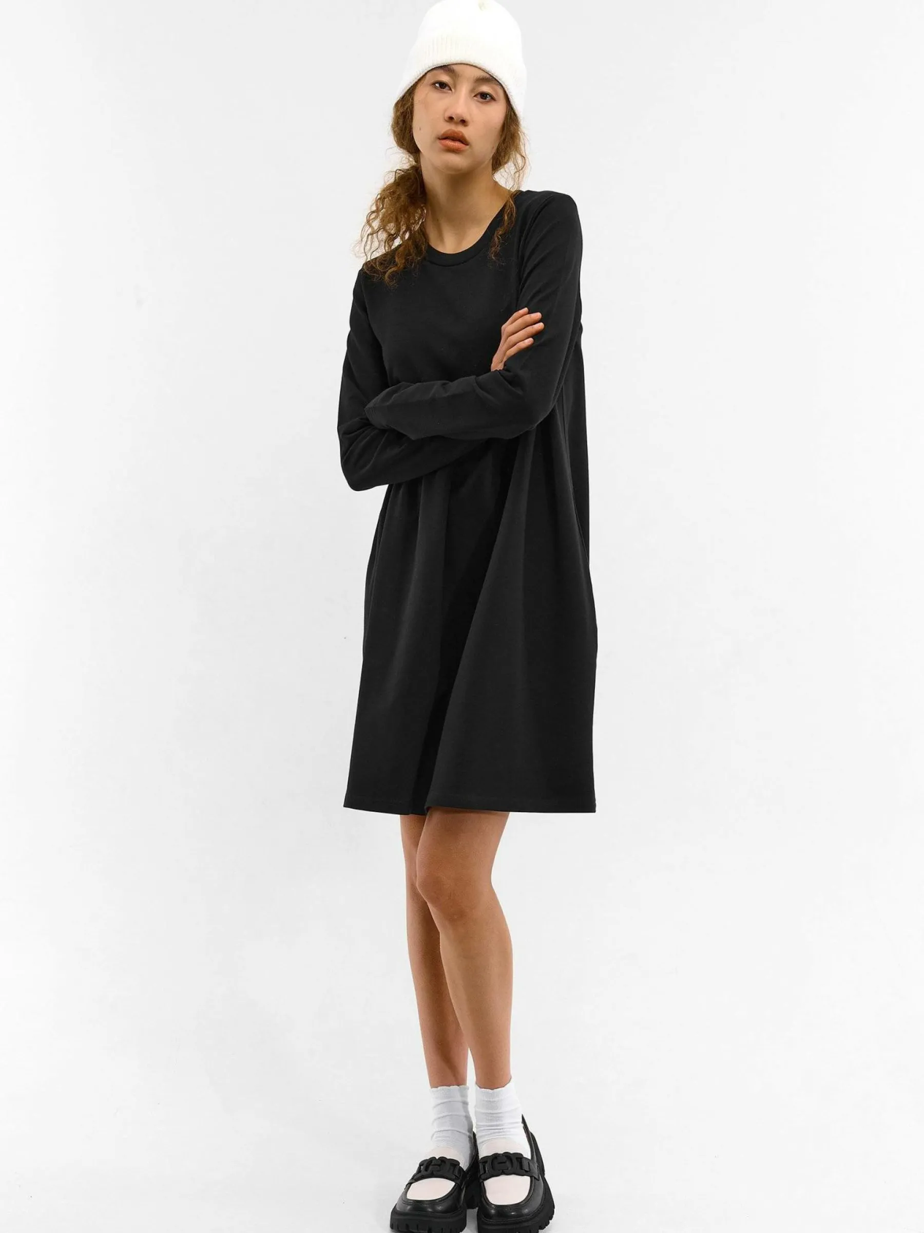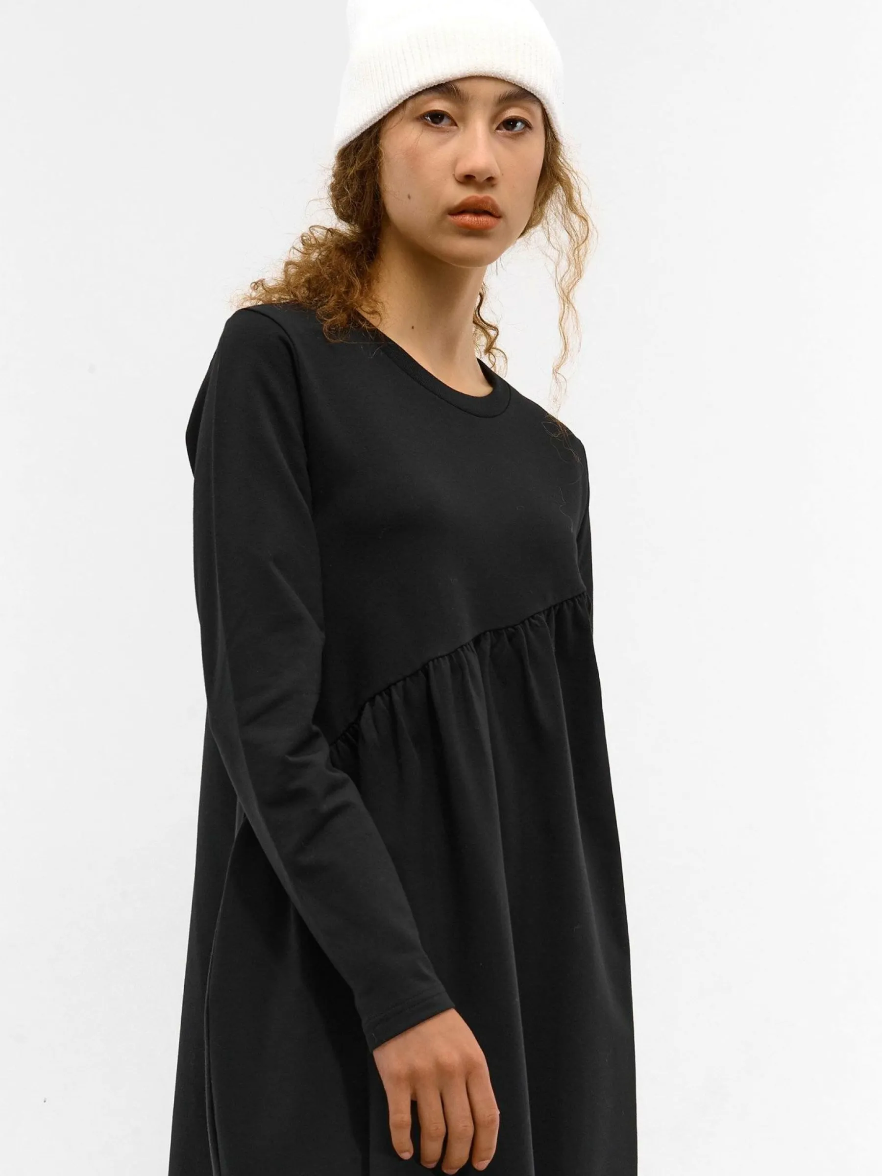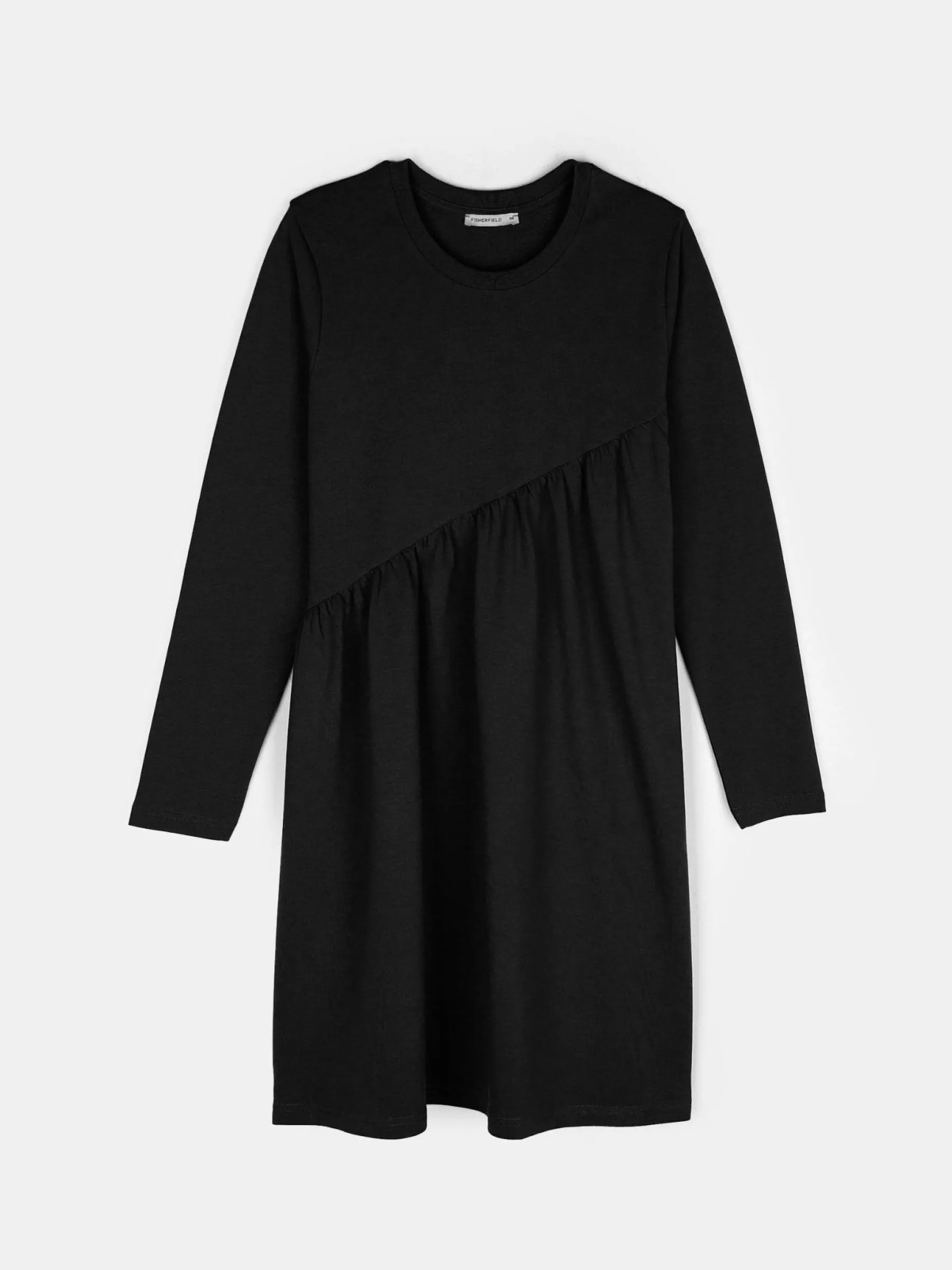 Kolor: czarnyKrój: z marszczeniemTyp: sukienkaRekaw: długi rękawDługość: miniPattern style: pojedynczy kolorDetal:…