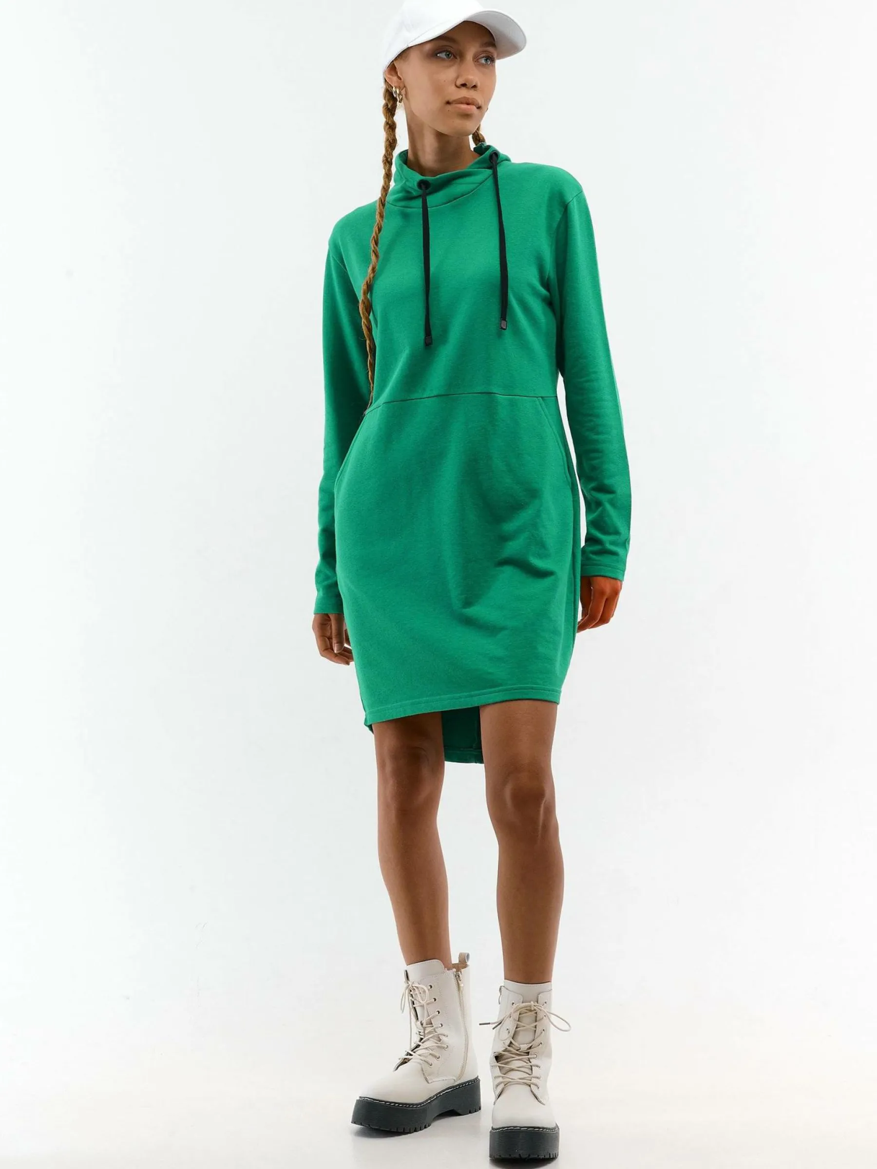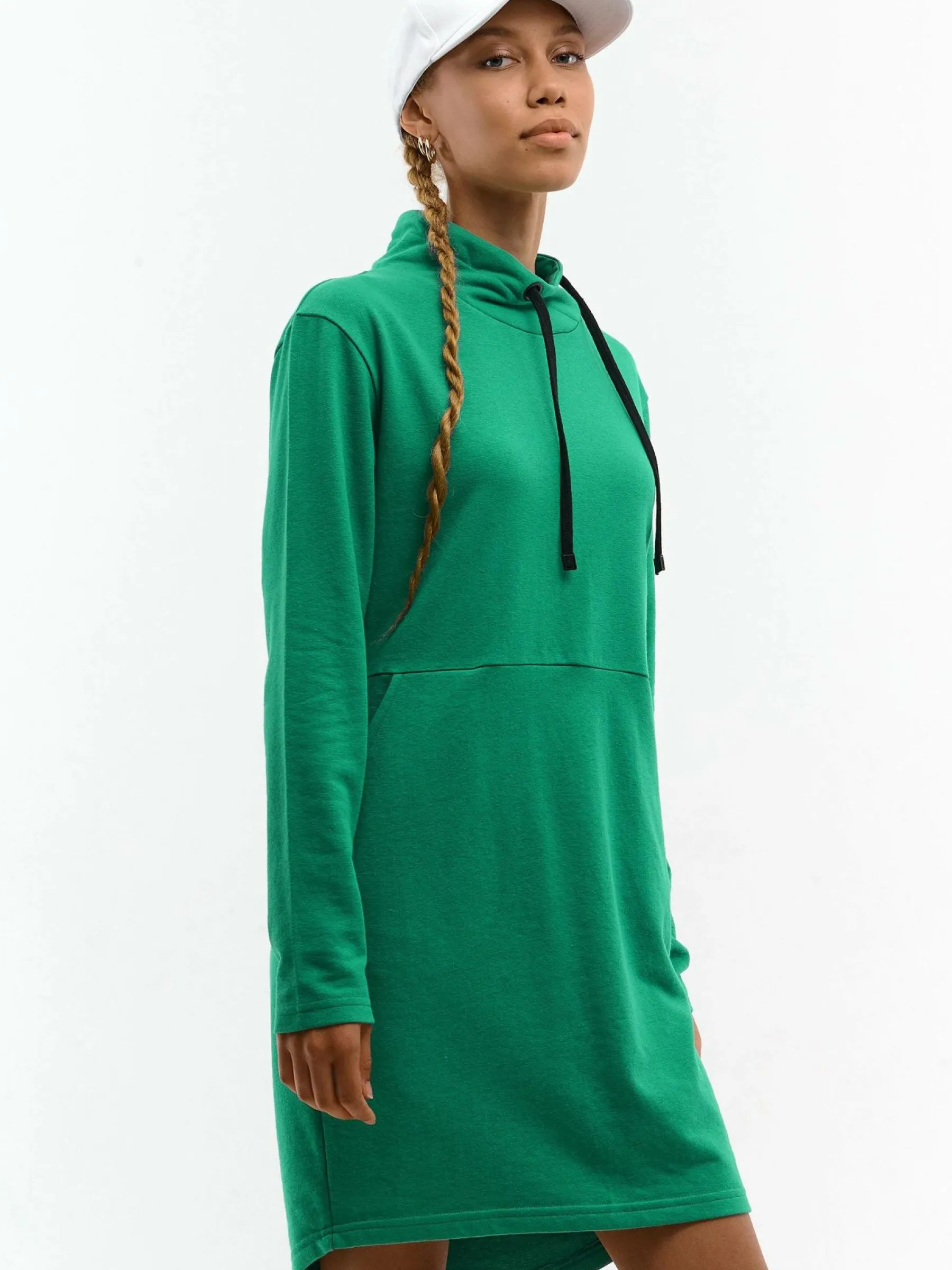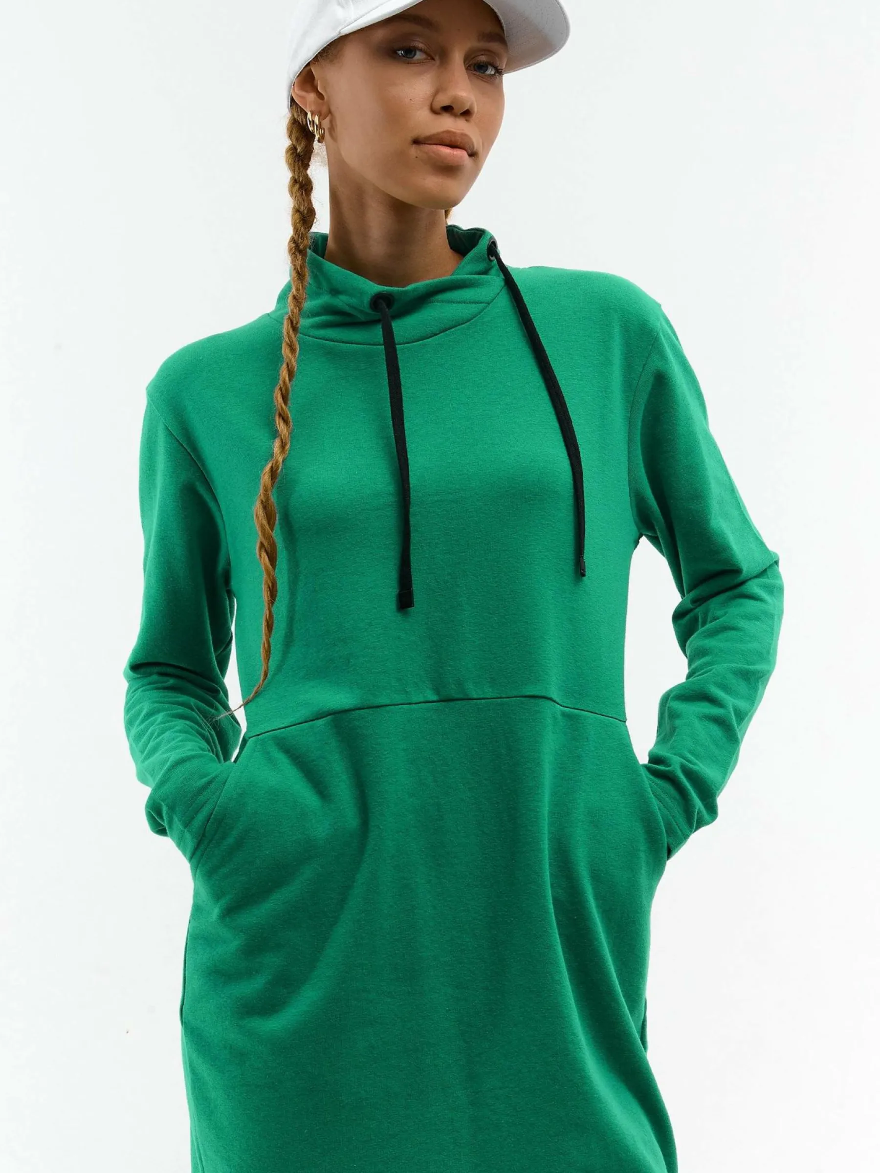 Kolor: zielonyKrój: bluza sportowaTyp: sukienkaRekaw: długi rękawDługość: miniPattern style: pojedynczy kolorDetal…
