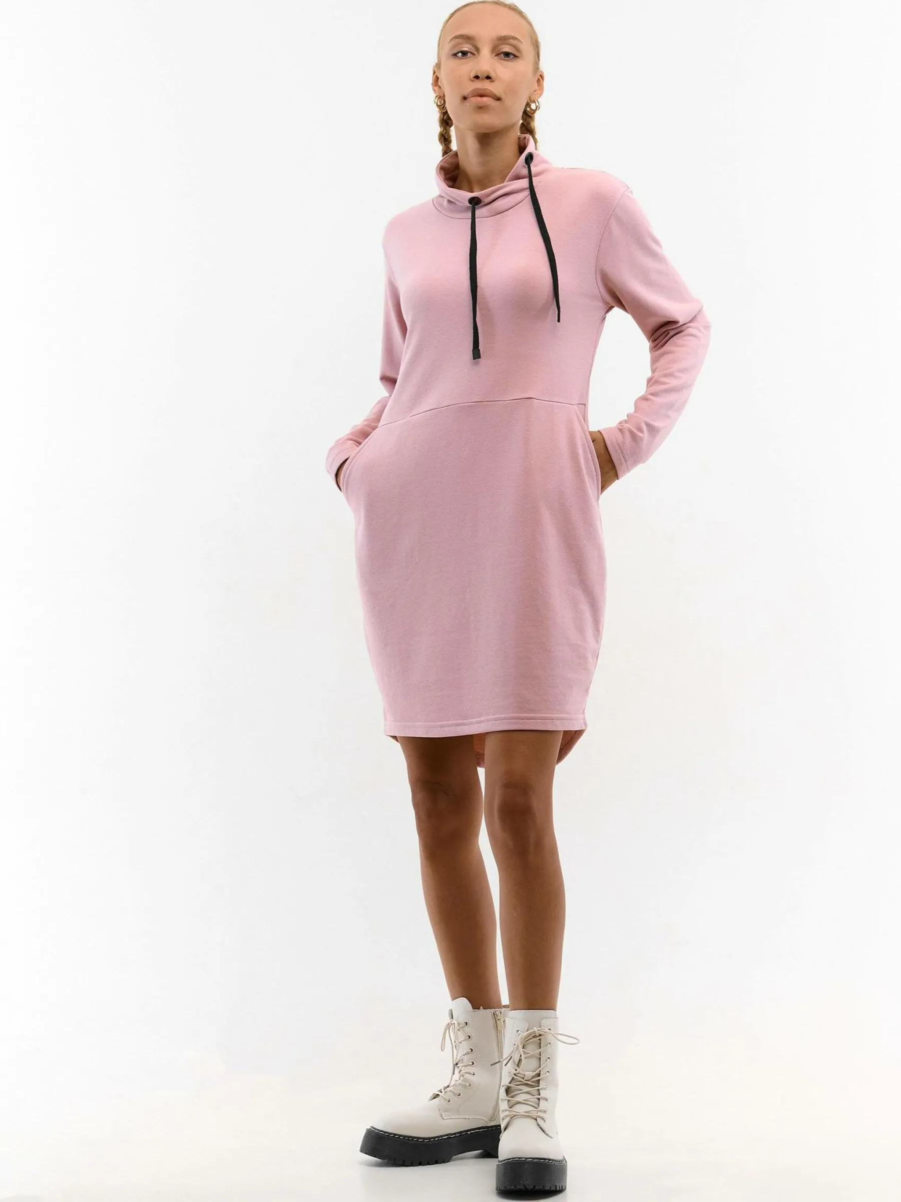 Kolor: różowyKrój: bluza sportowaTyp: sukienkaRekaw: długi rękawDługość: miniPattern style: pojedynczy kolorDeta…