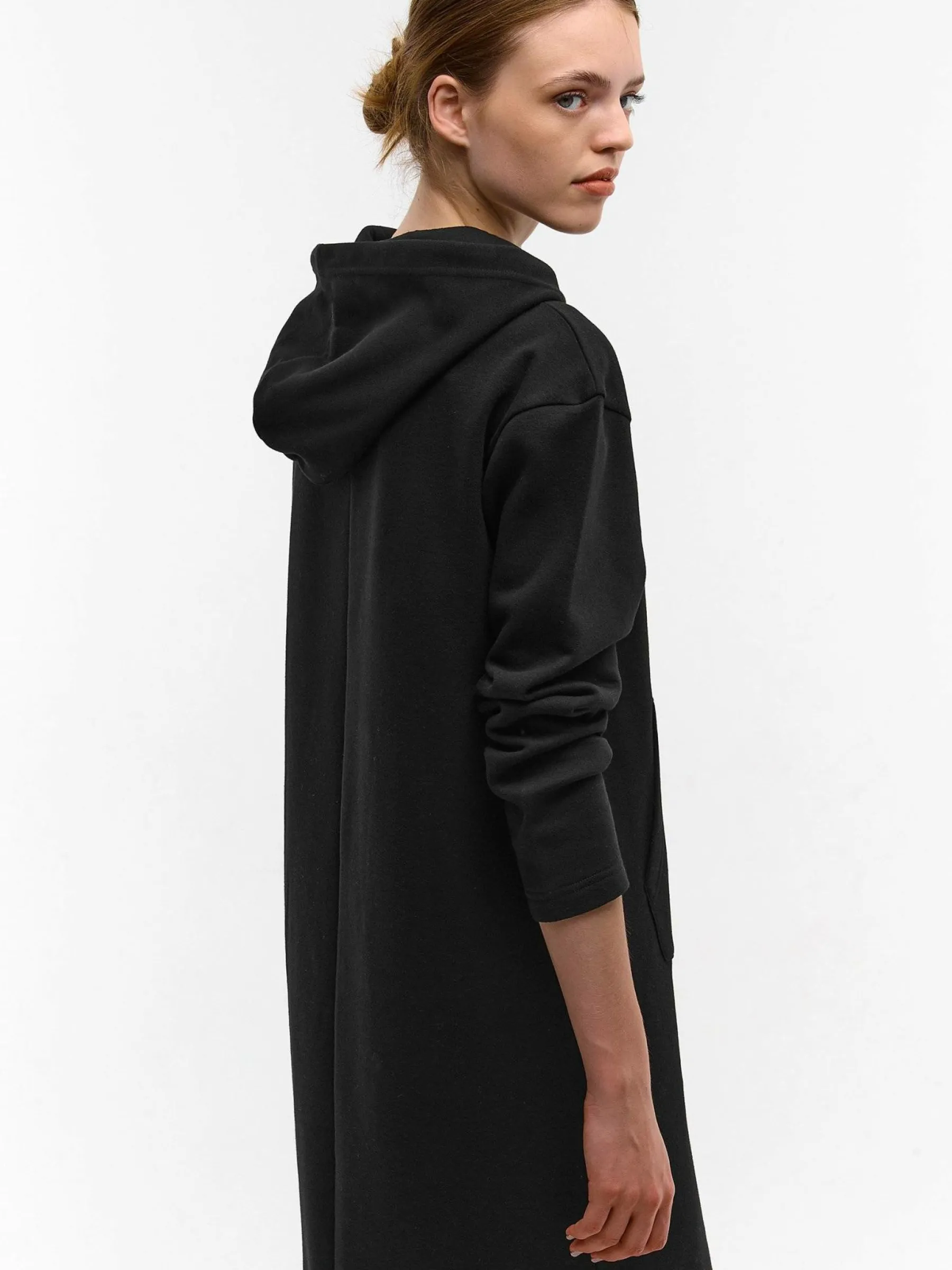 Kolor: czarnyKrój: bluza sportowaTyp: sukienkaRekaw: długi rękawDługość: midiPattern style: pojedynczy kolorDetal:…