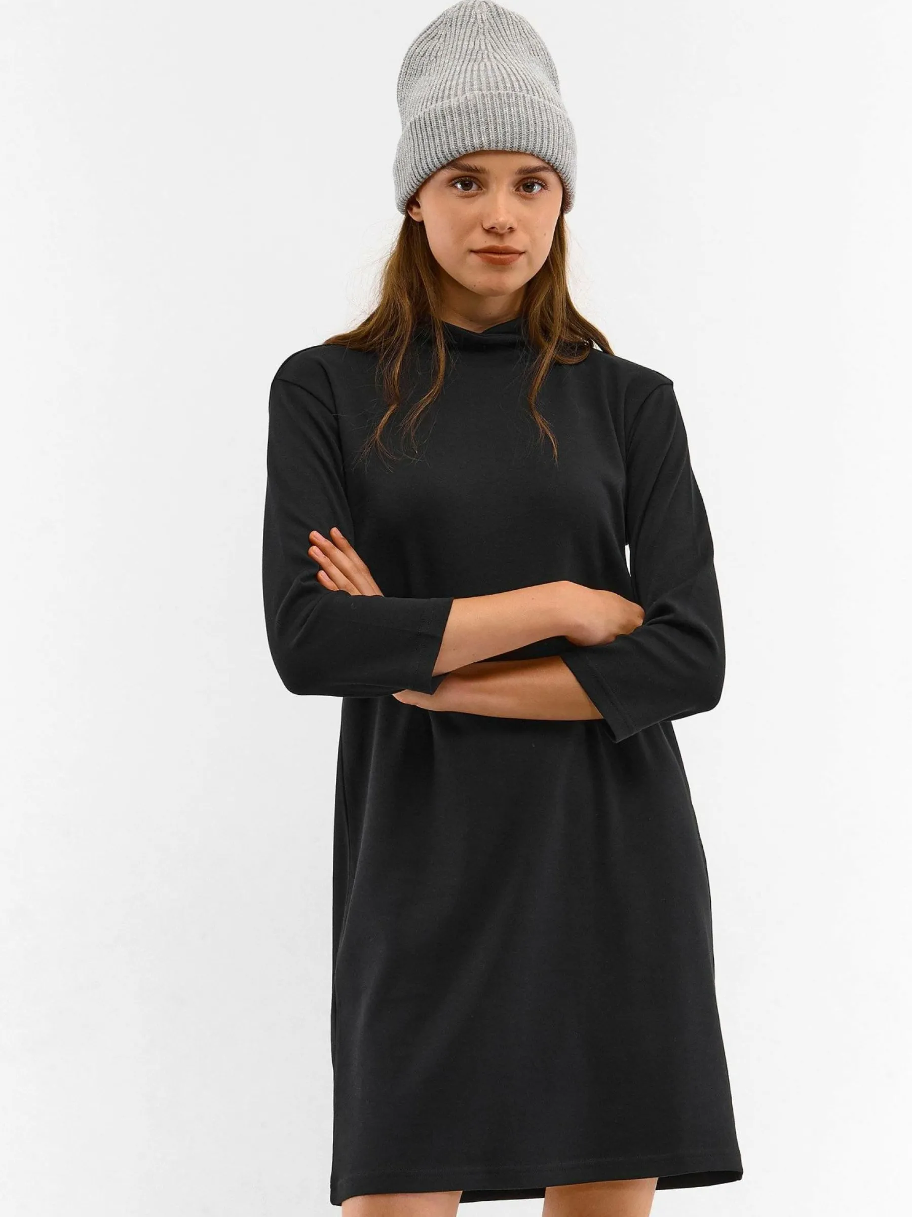 Kolor: czarnyKrój: regular, bluza sportowaTyp: sukienkaRekaw: rękaw 3/4Długość: miniPattern style: pojedynczy kolor…