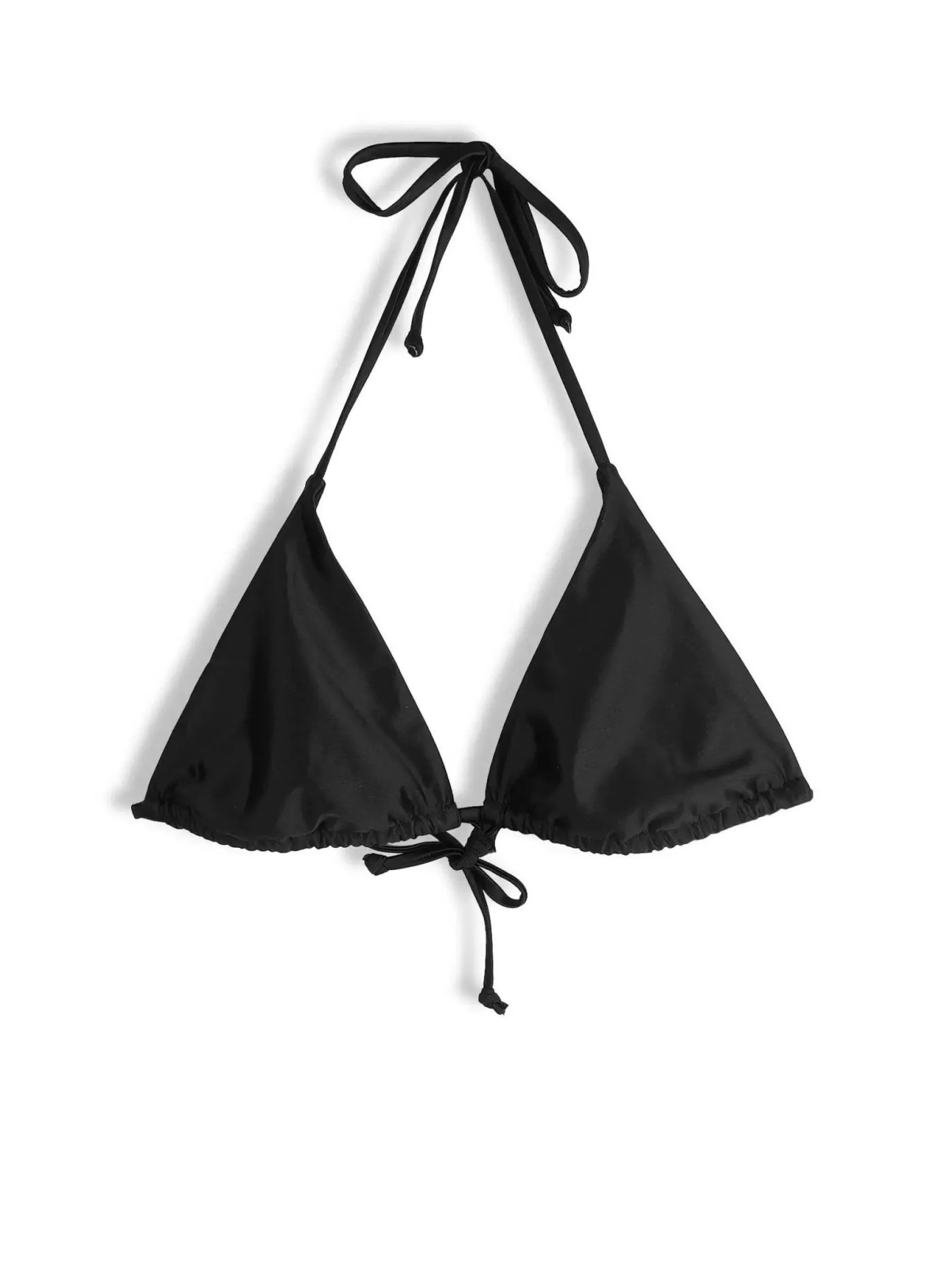 Kolor: czarnyKrój: bikiniTyp: góra od bikiniPattern style: pojedynczy kolorDetal: trójkatne, z wiązaniem na szyi, ni…