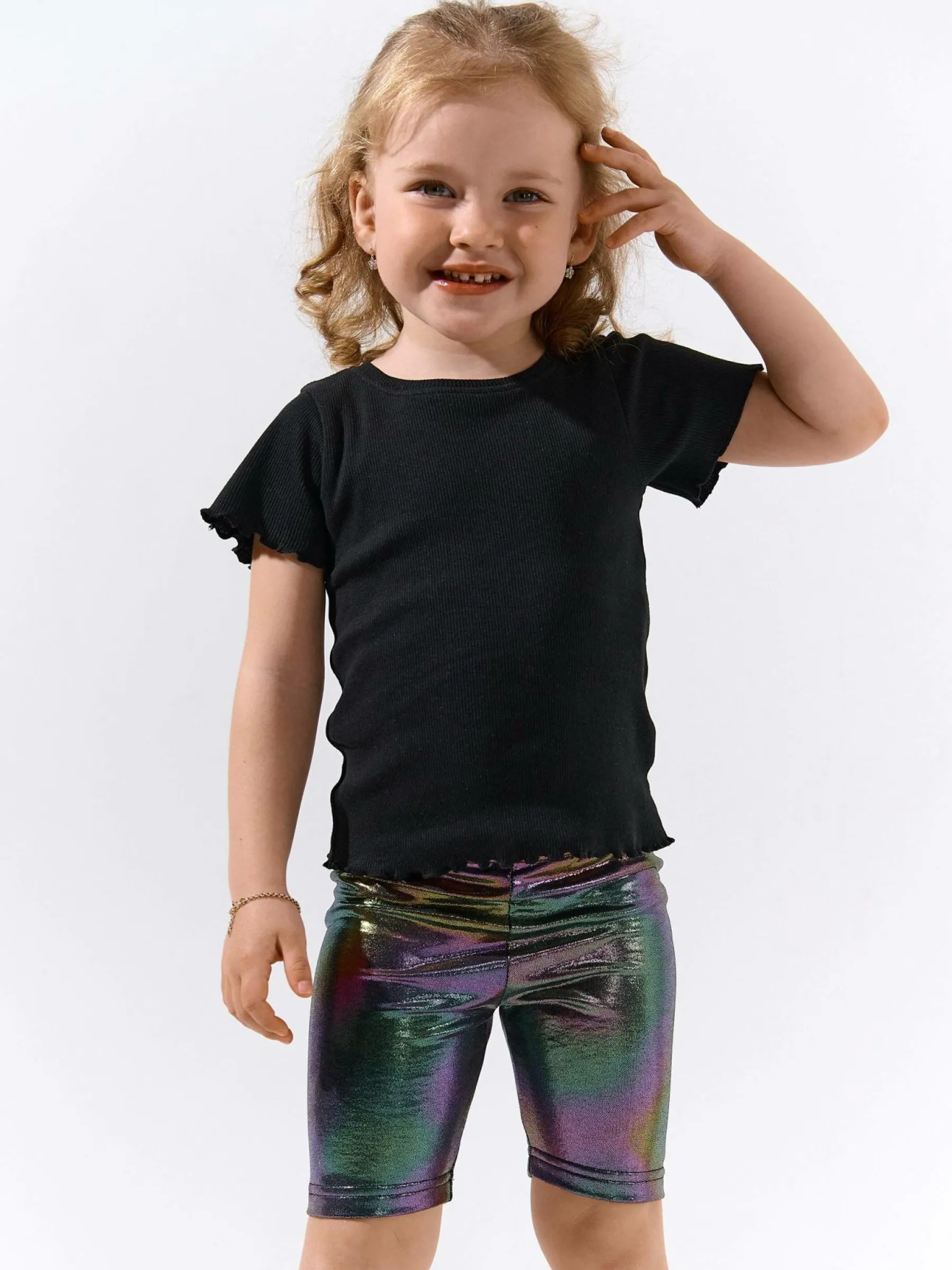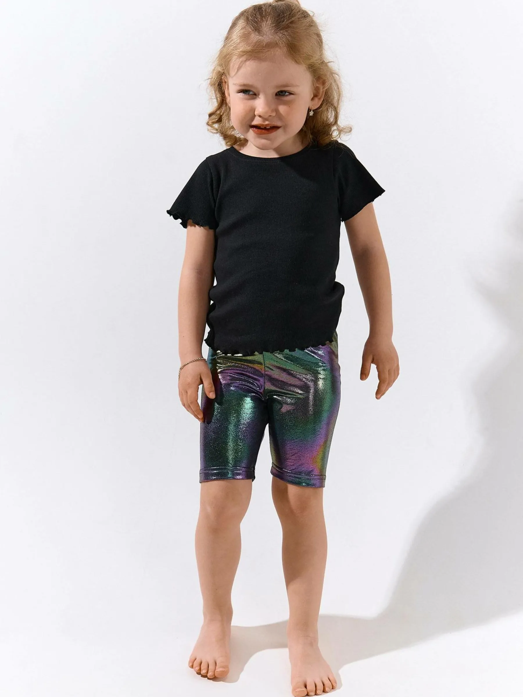 Kolor: czarnyKrój: bikerTyp: spodenkiDługość: krótkiPattern style: wielobarwnyDetal: z elastyczną opaskąMateriał…