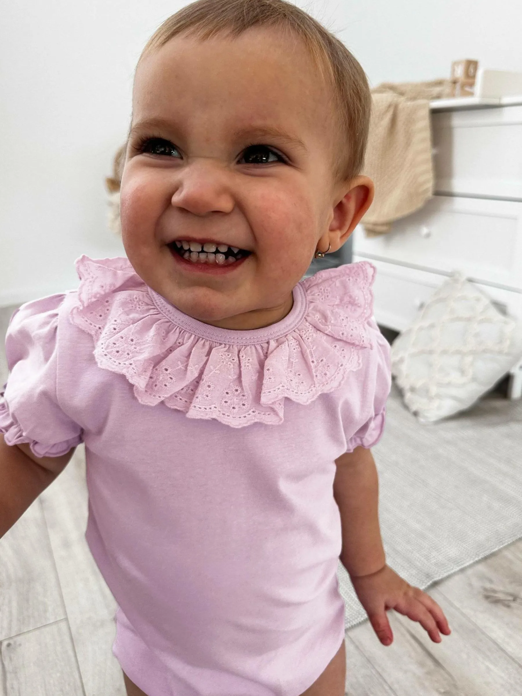 Kolor: różowy, purpurowyKrój: z falbanąTyp: bodyRekaw: krótki rękawDługość: krótkiPattern style: pojedynczy ko…