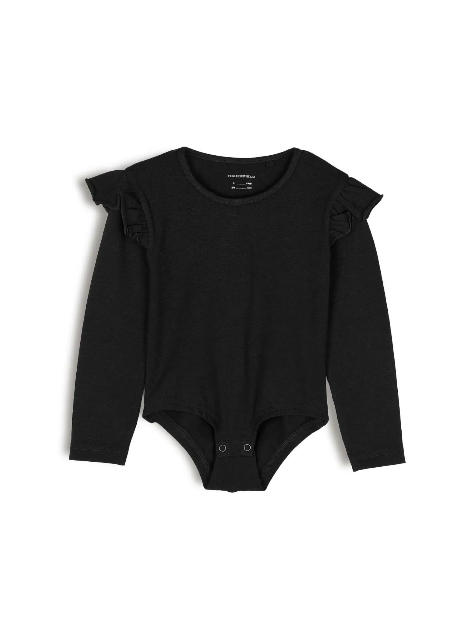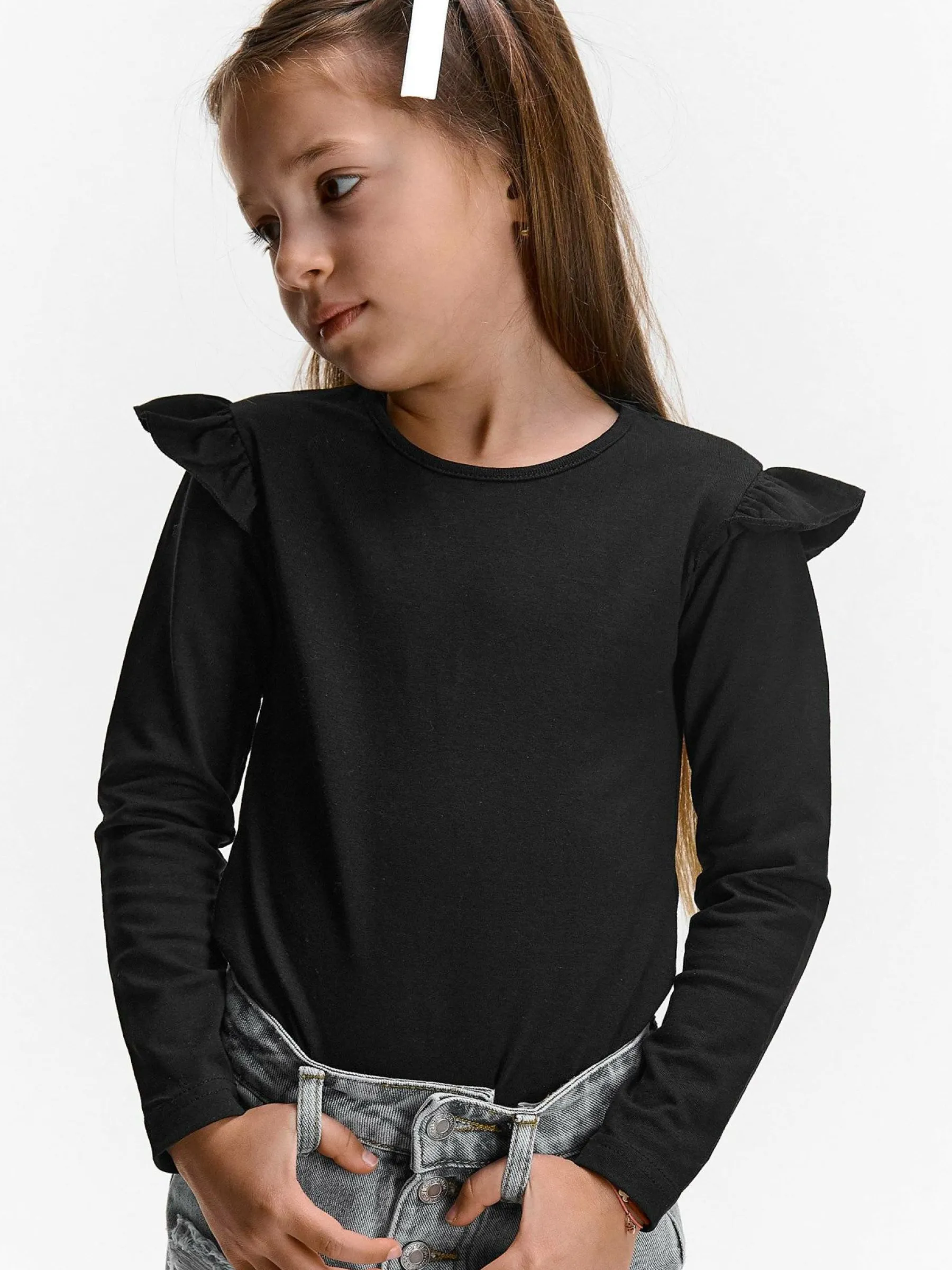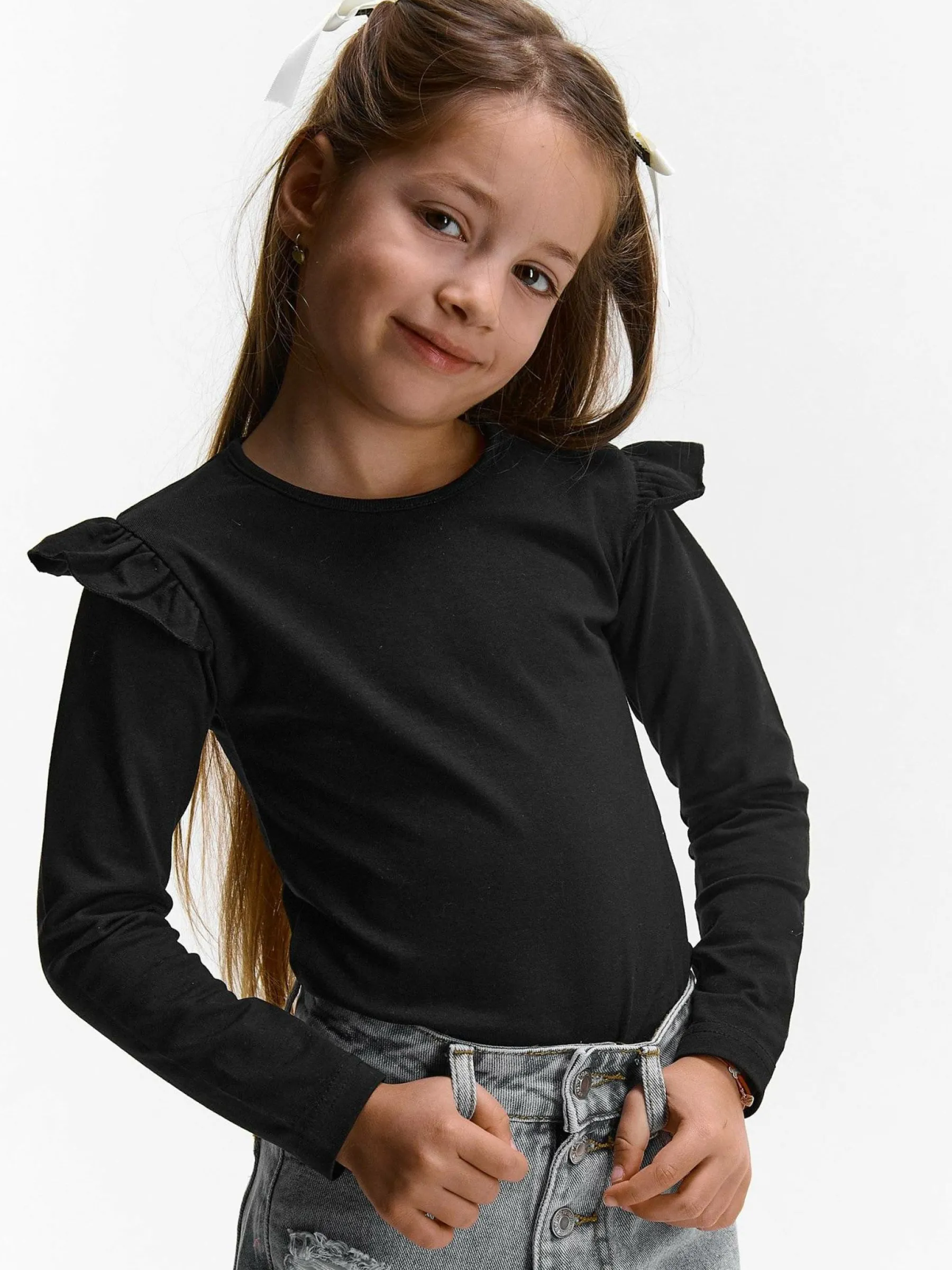 Kolor: czarnyKrój: z falbanąTyp: bodyRekaw: długi rękawDługość: krótkiPattern style: pojedynczy kolorDetal: na s…