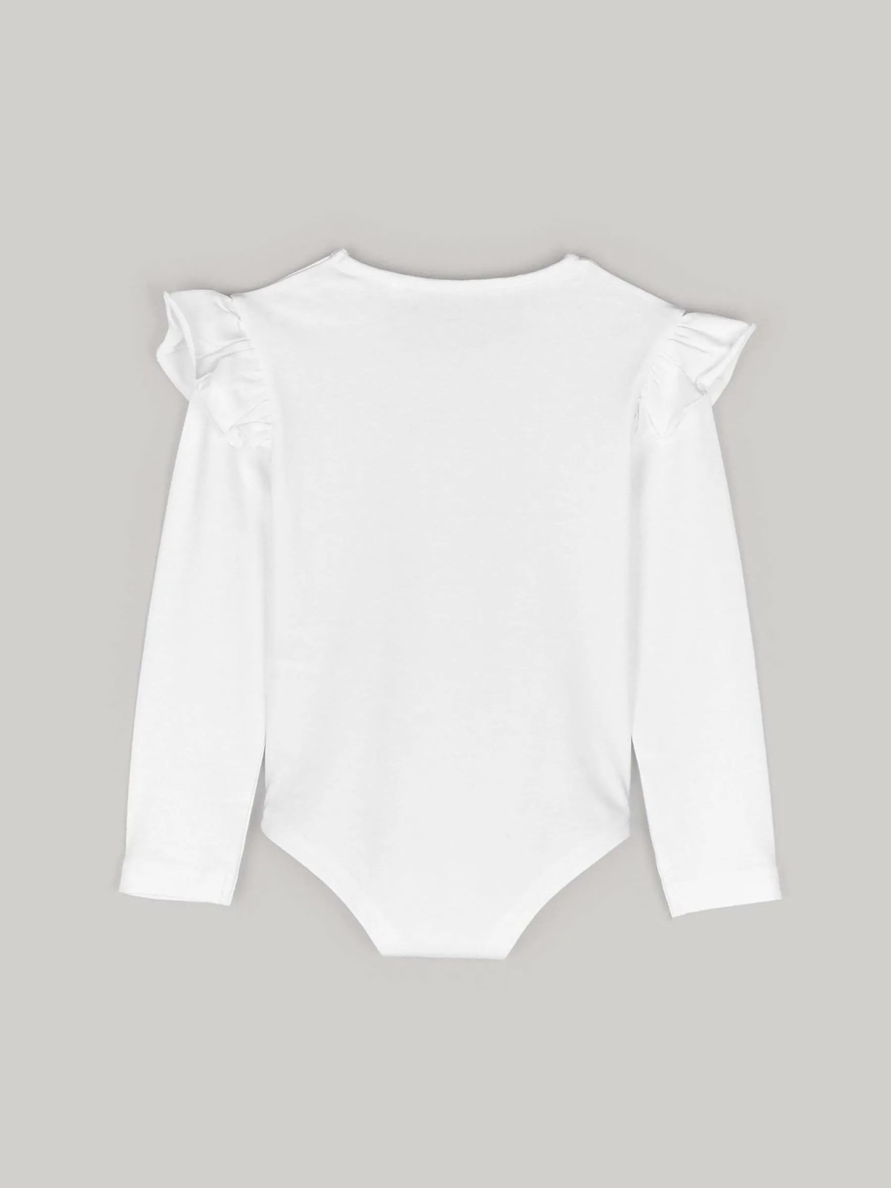 Zdjęcia z modelką mogą nie odpowiadać rzeczywistemu kolorowi produktu.Kolor: białyKrój: z falbanąTyp: bodyRekaw: …