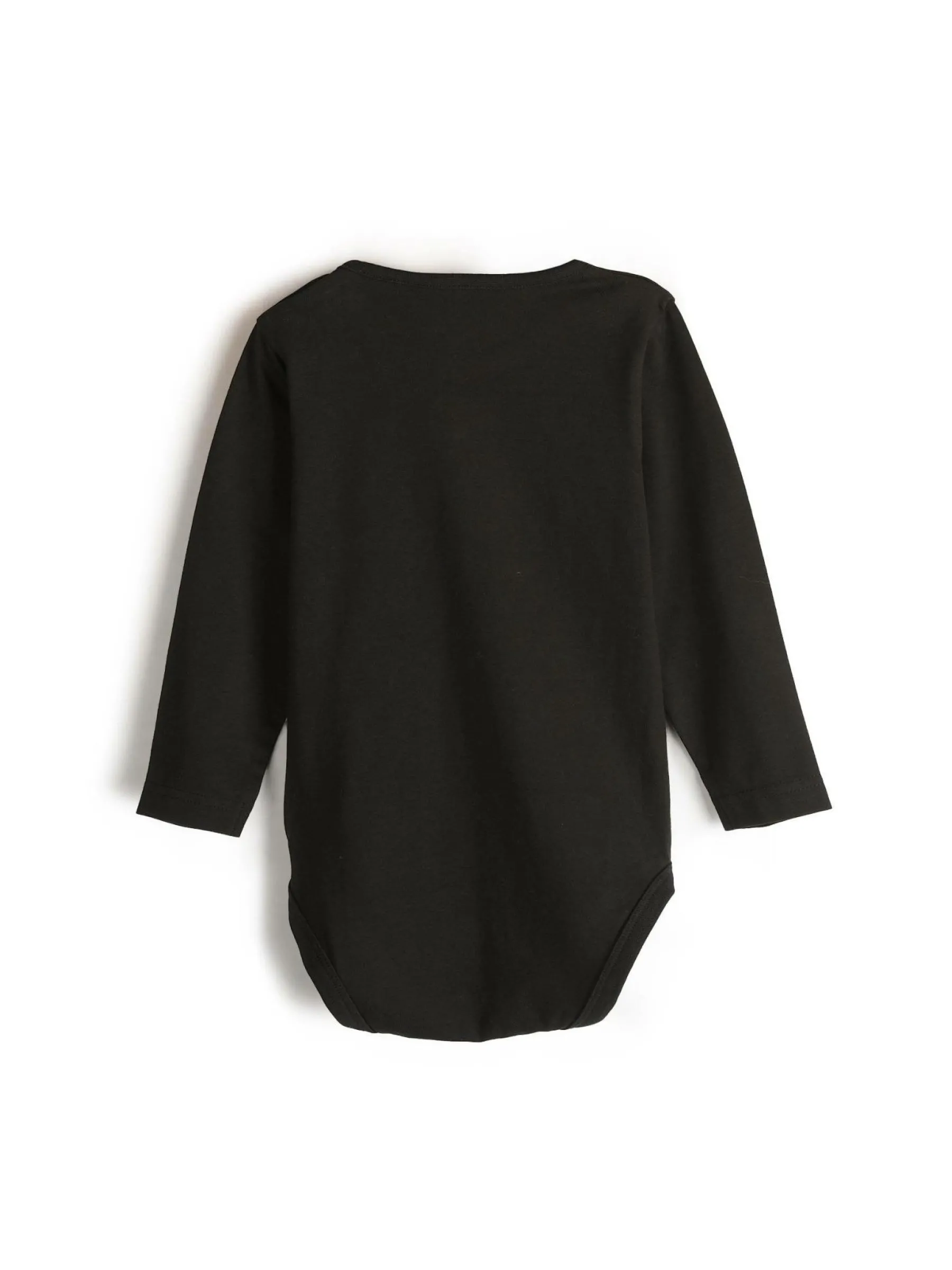 Kolor: czarnyKrój: podstawowyTyp: bodyRekaw: długi rękawDługość: krótkiPattern style: z nadrukiemDetal: nad głow…