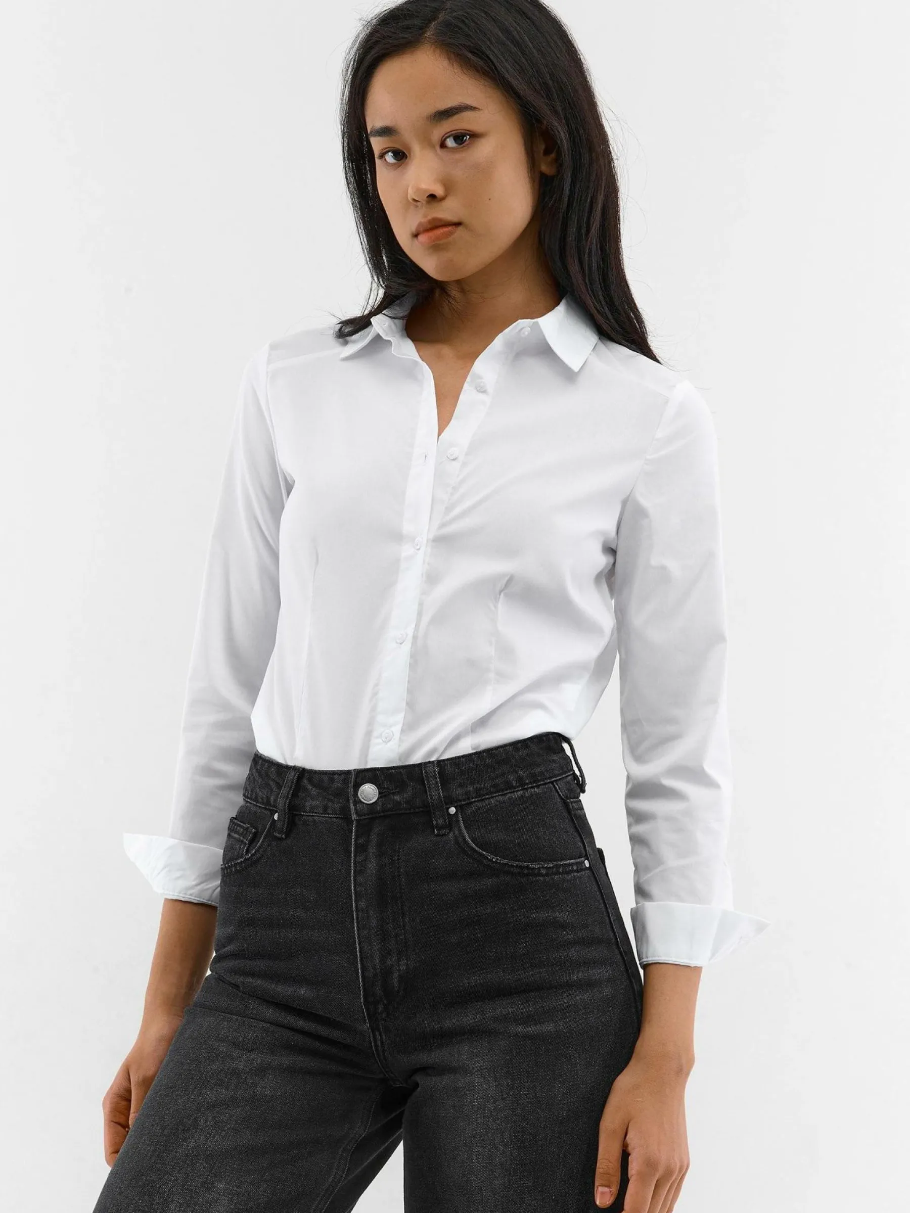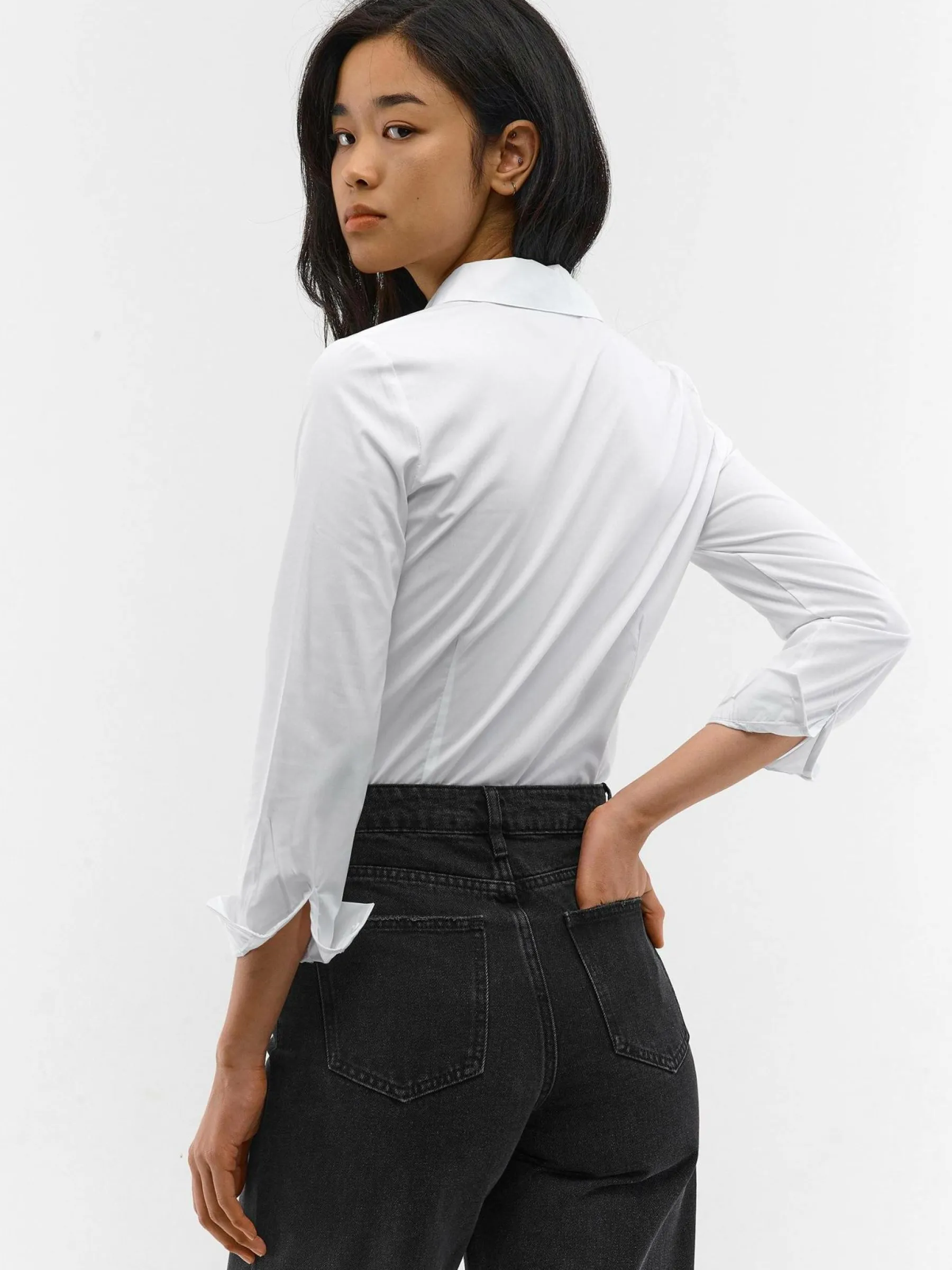 Kolor: białyKrój: koszuloweTyp: bodyRekaw: długi rękawDługość: krótkiPattern style: pojedynczy kolorDetal: na gu…