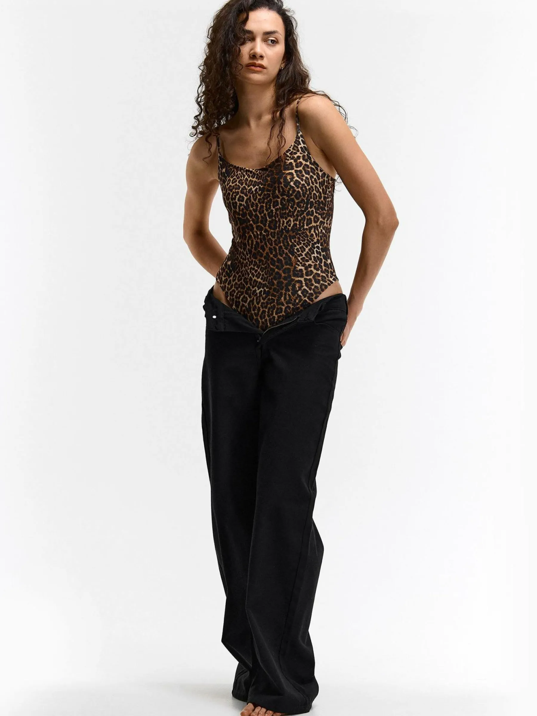 Kolor: brązowyKrój: slimTyp: bodyRekaw: bez rękawówDługość: krótkiPattern style: zwierzecyDetal: nad głowąMate…