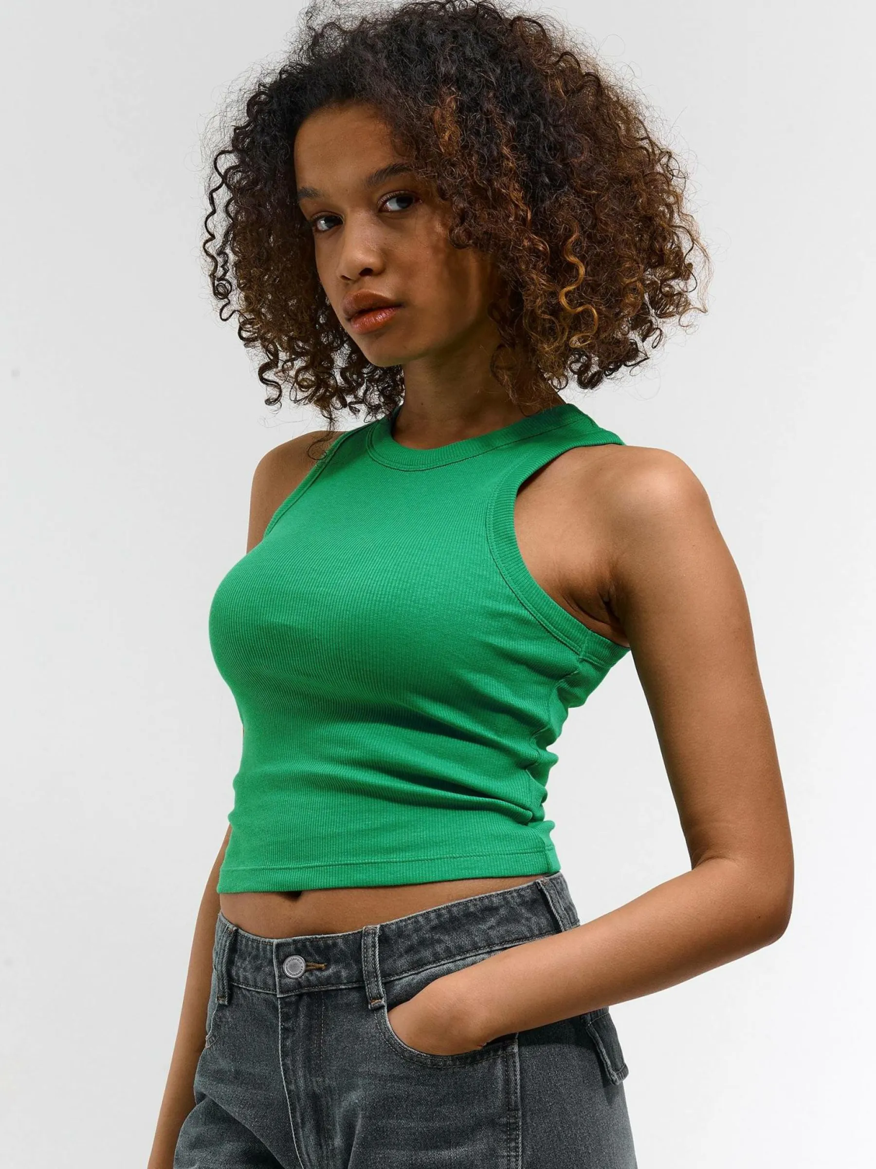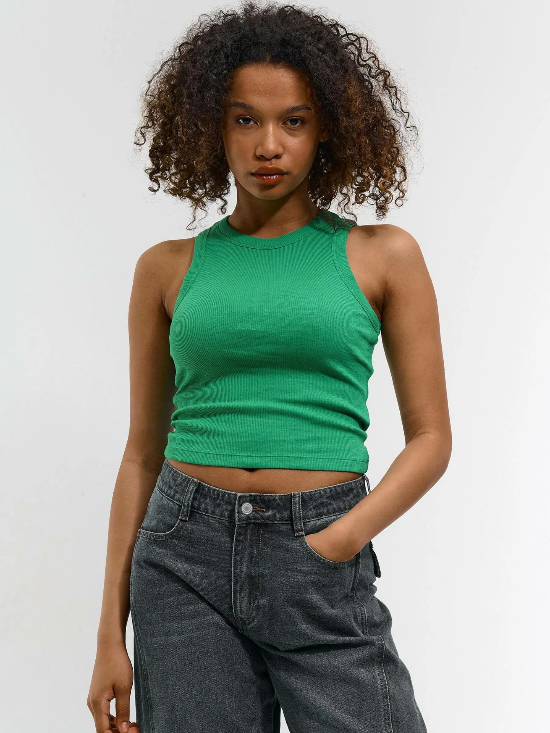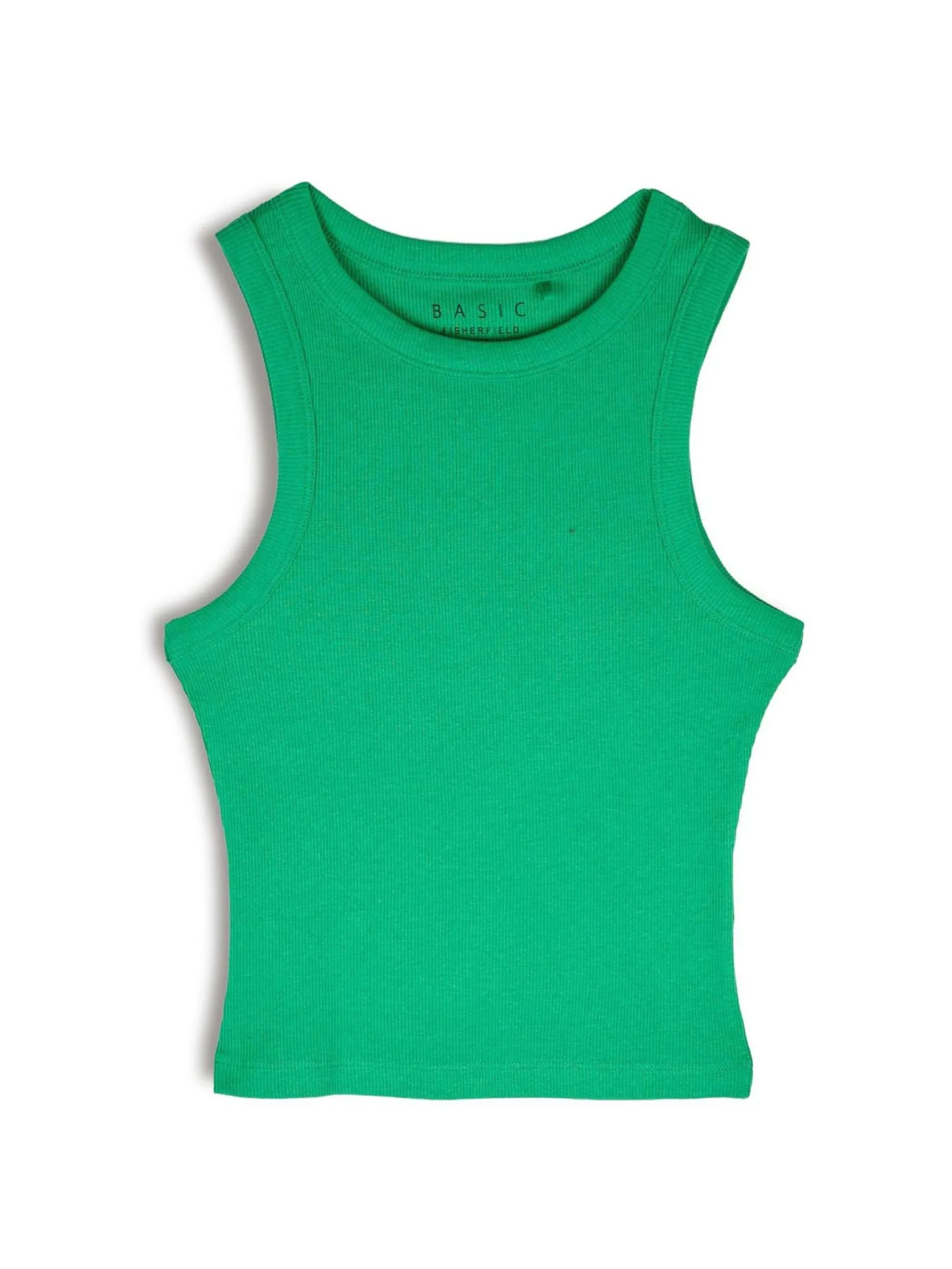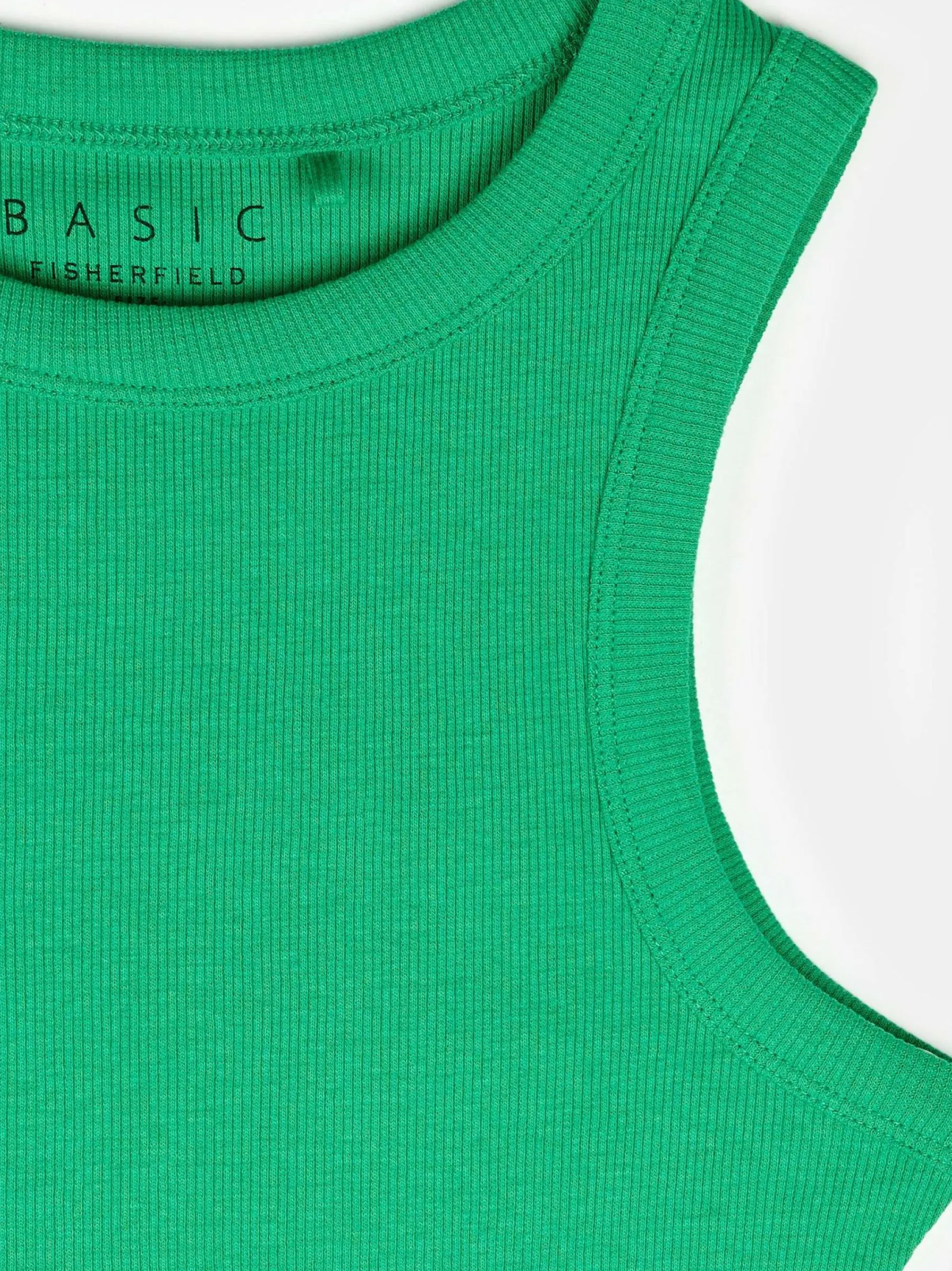 Kolor: zielonyKrój: regularTyp: podkoszulekRekaw: bez rękawówDługość: krótkiPattern style: pojedynczy kolor, żeb…