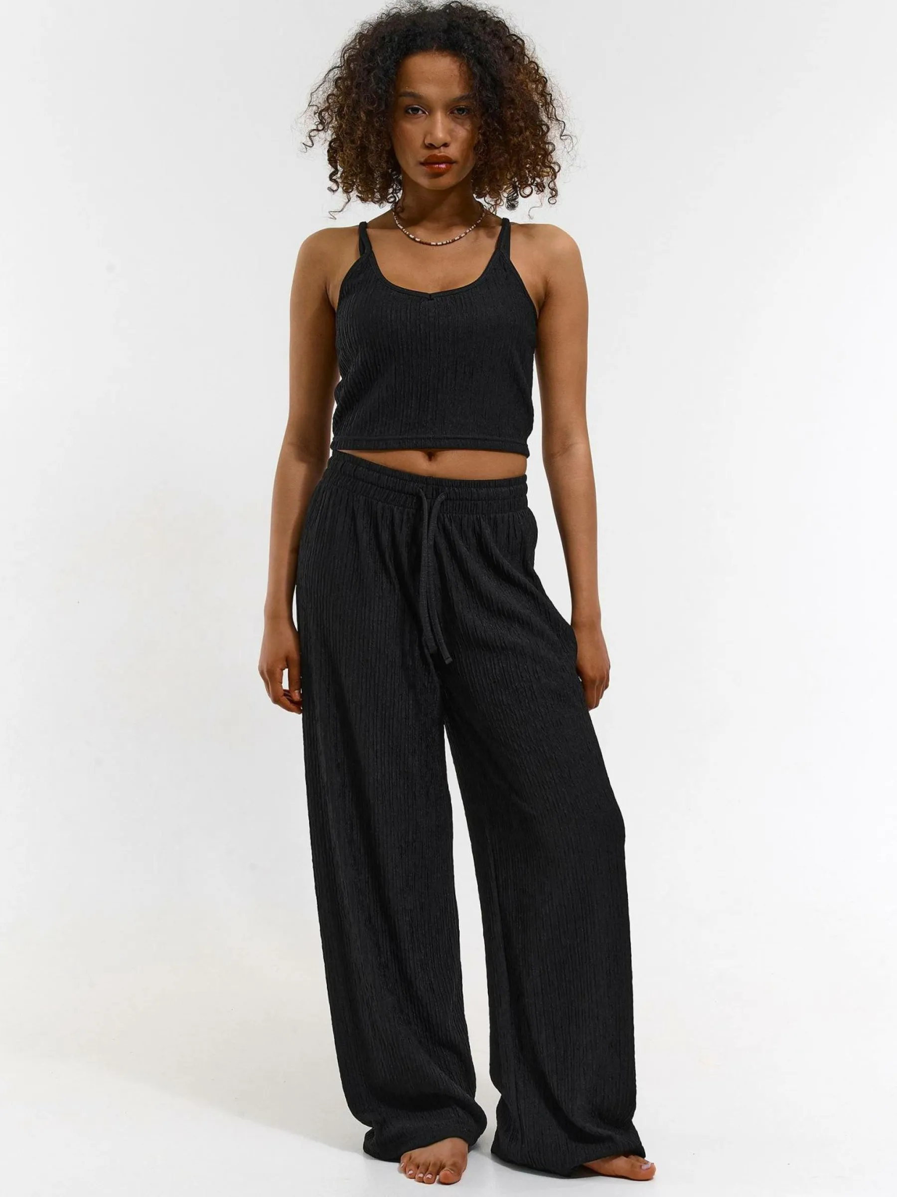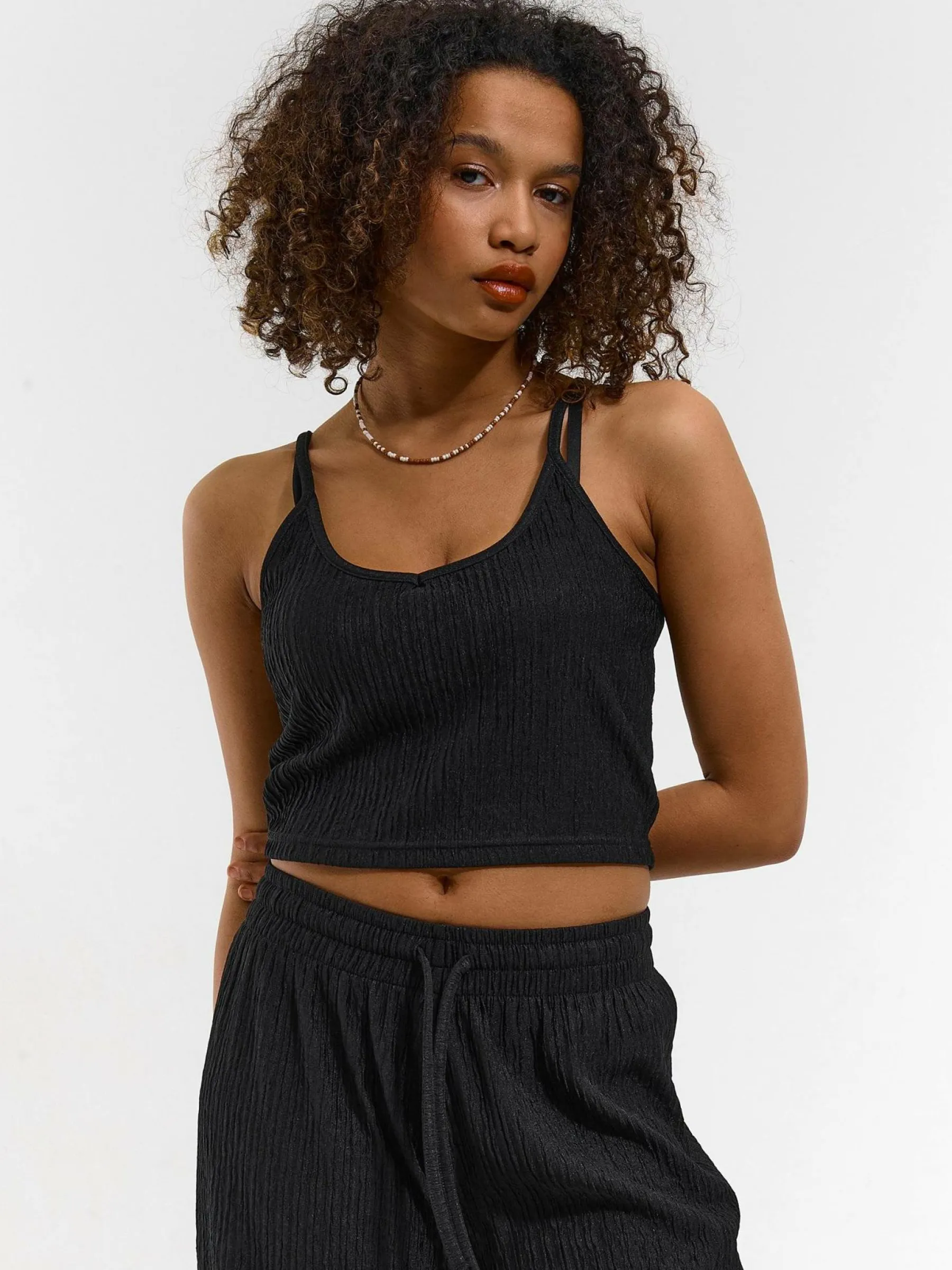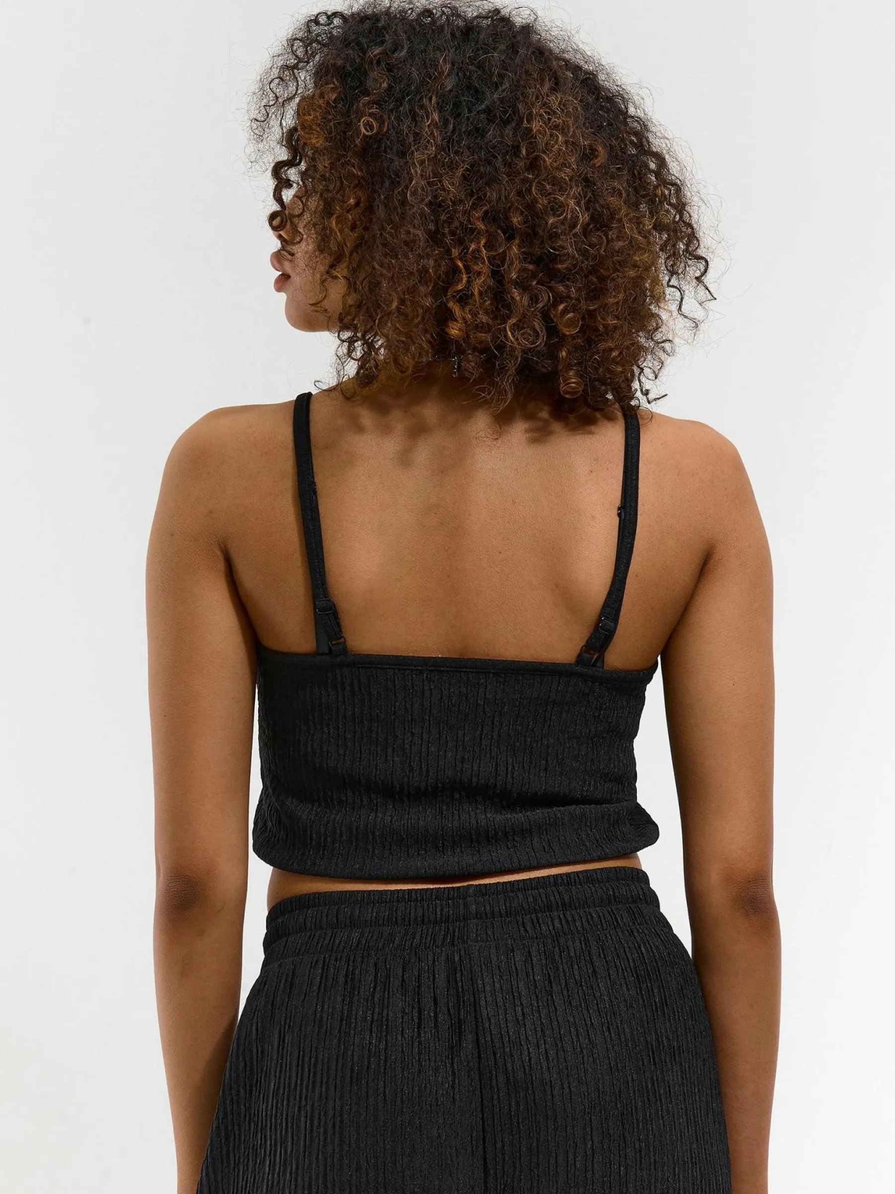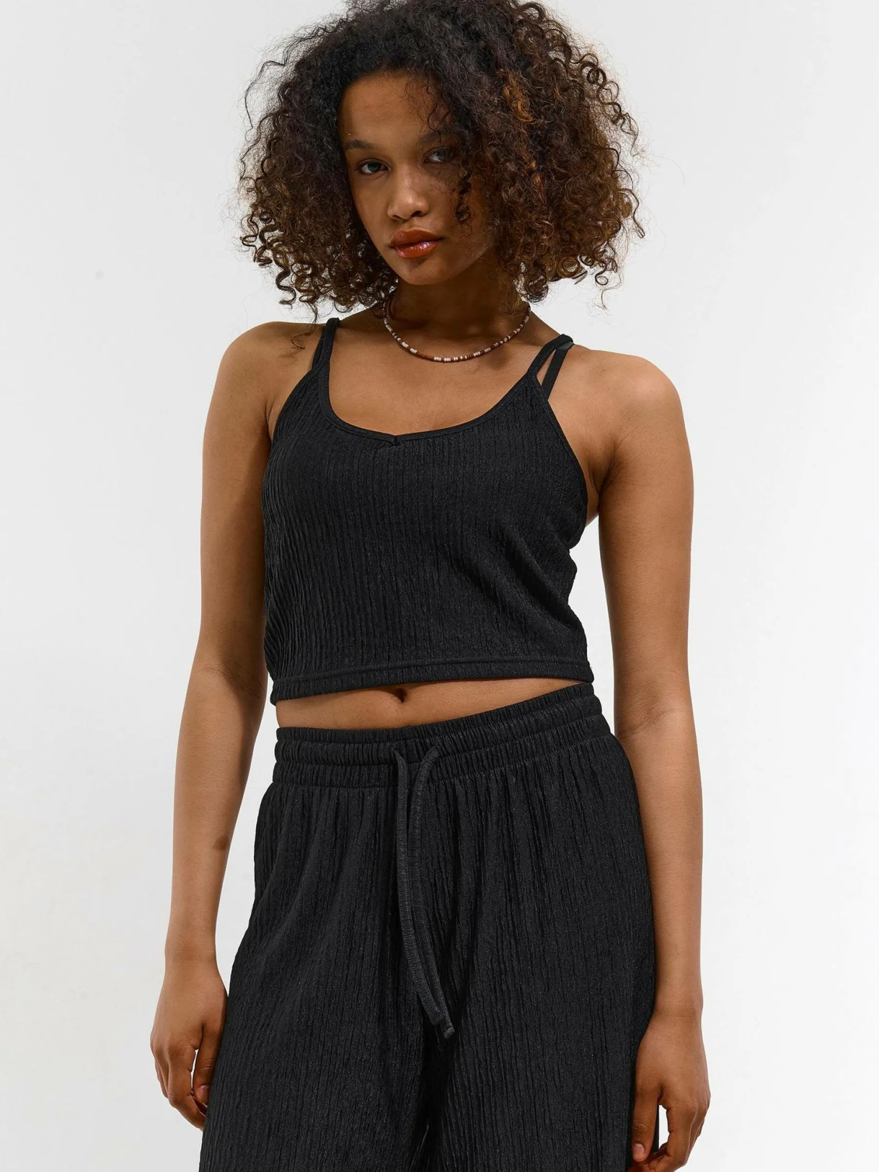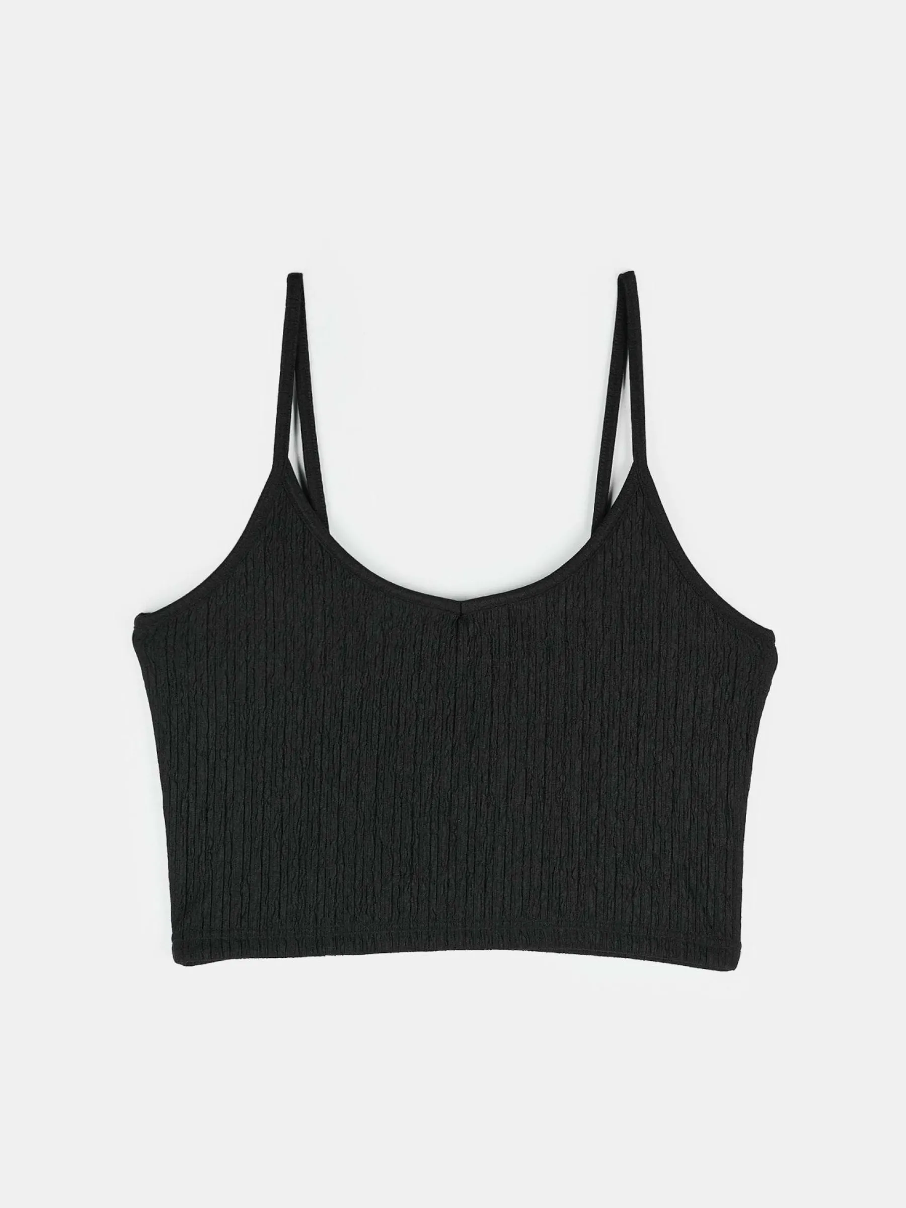 Kolor: czarnyKrój: regularTyp: podkoszulekRekaw: bez rękawówDługość: krótki topPattern style: strukturowane, poje…