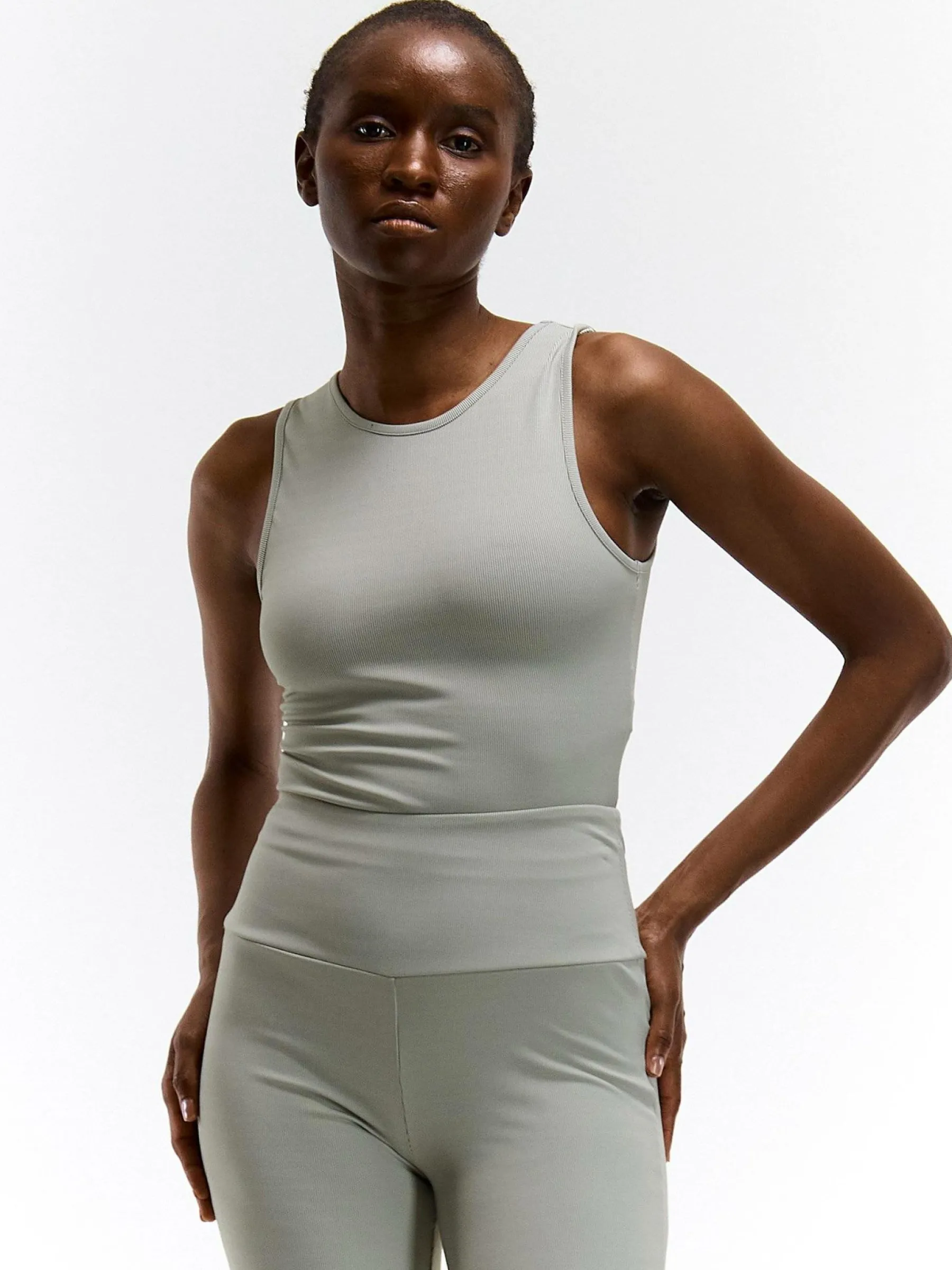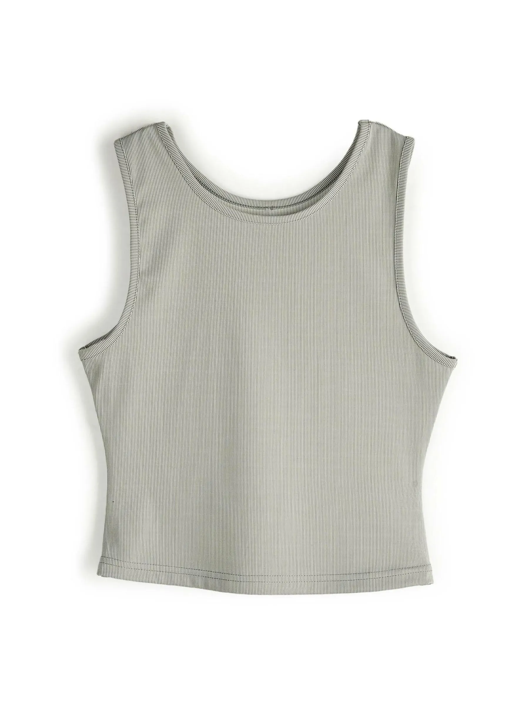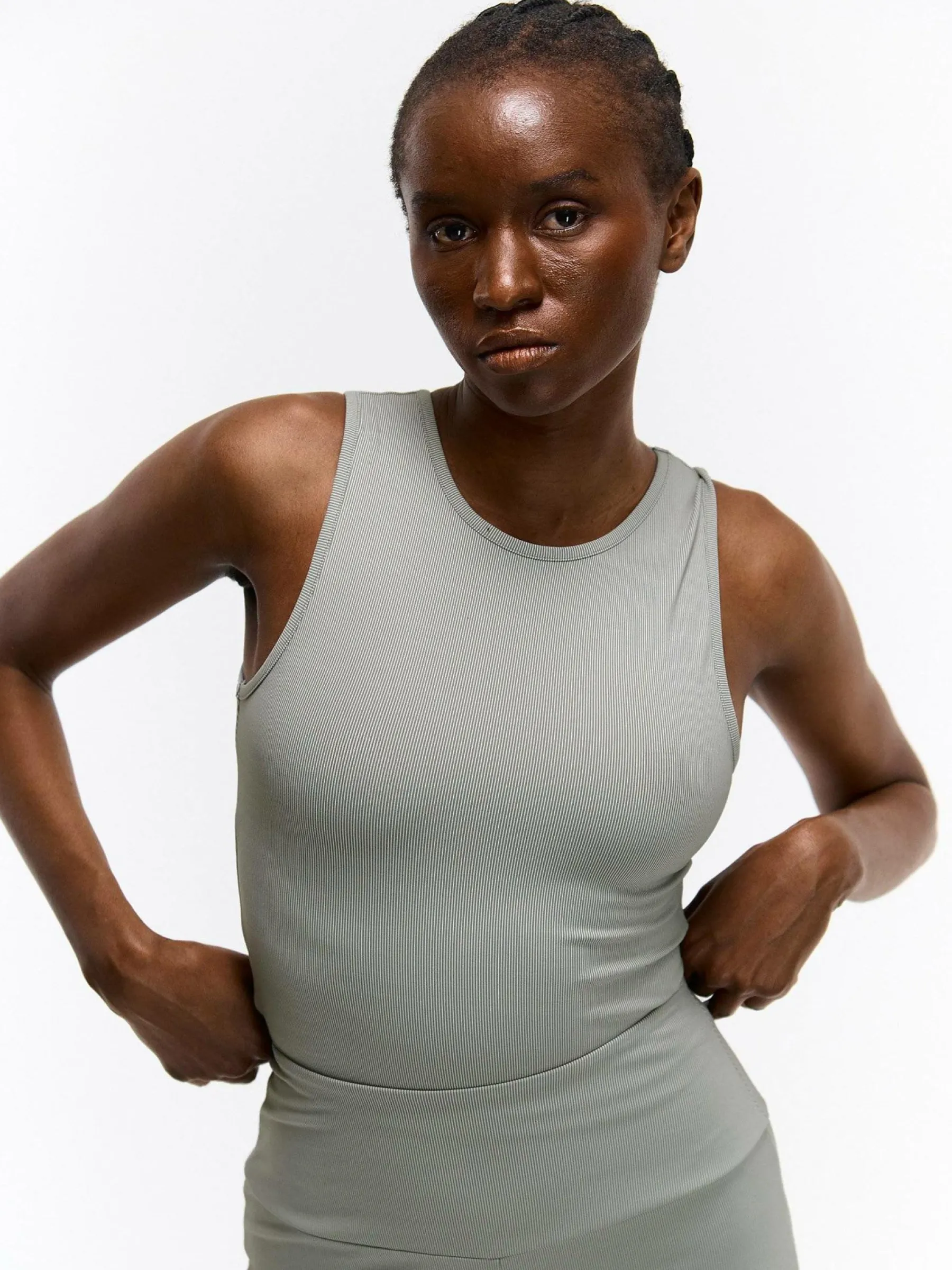 Kolor: szary, zielonyKrój: regularTyp: podkoszulekRekaw: bez rękawówDługość: krótkiPattern style: w prążkiDetal…