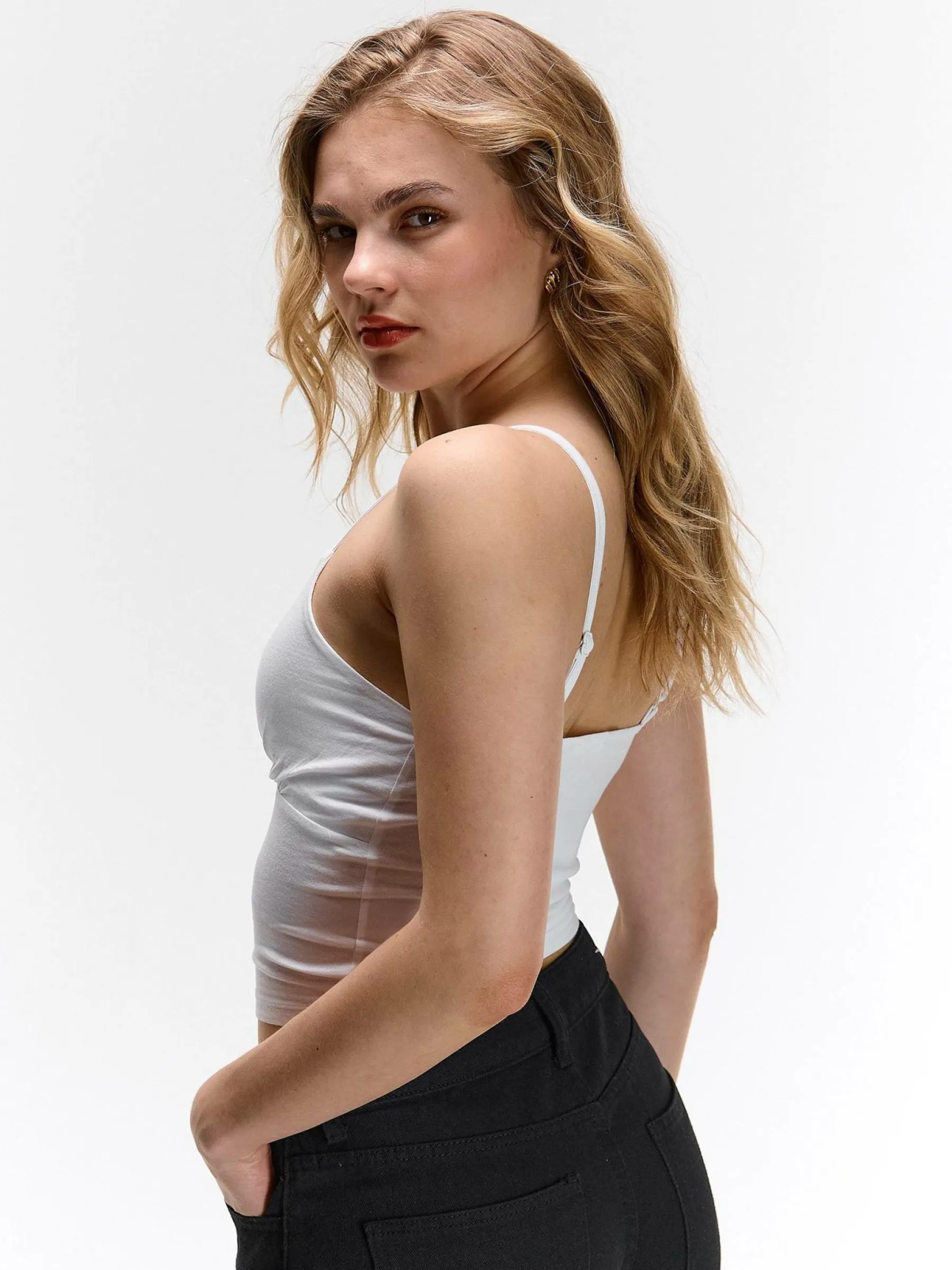 Kolor: białyKrój: z marszczeniemTyp: podkoszulekRekaw: bez rękawówDługość: krótkiPattern style: pojedynczy kolor…