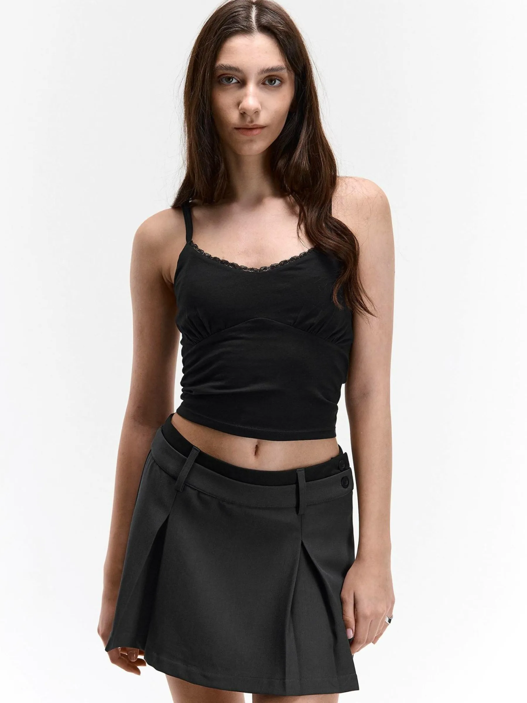 Kolor: czarnyKrój: z marszczeniemTyp: podkoszulekRekaw: bez rękawówDługość: krótkiPattern style: pojedynczy kolor…