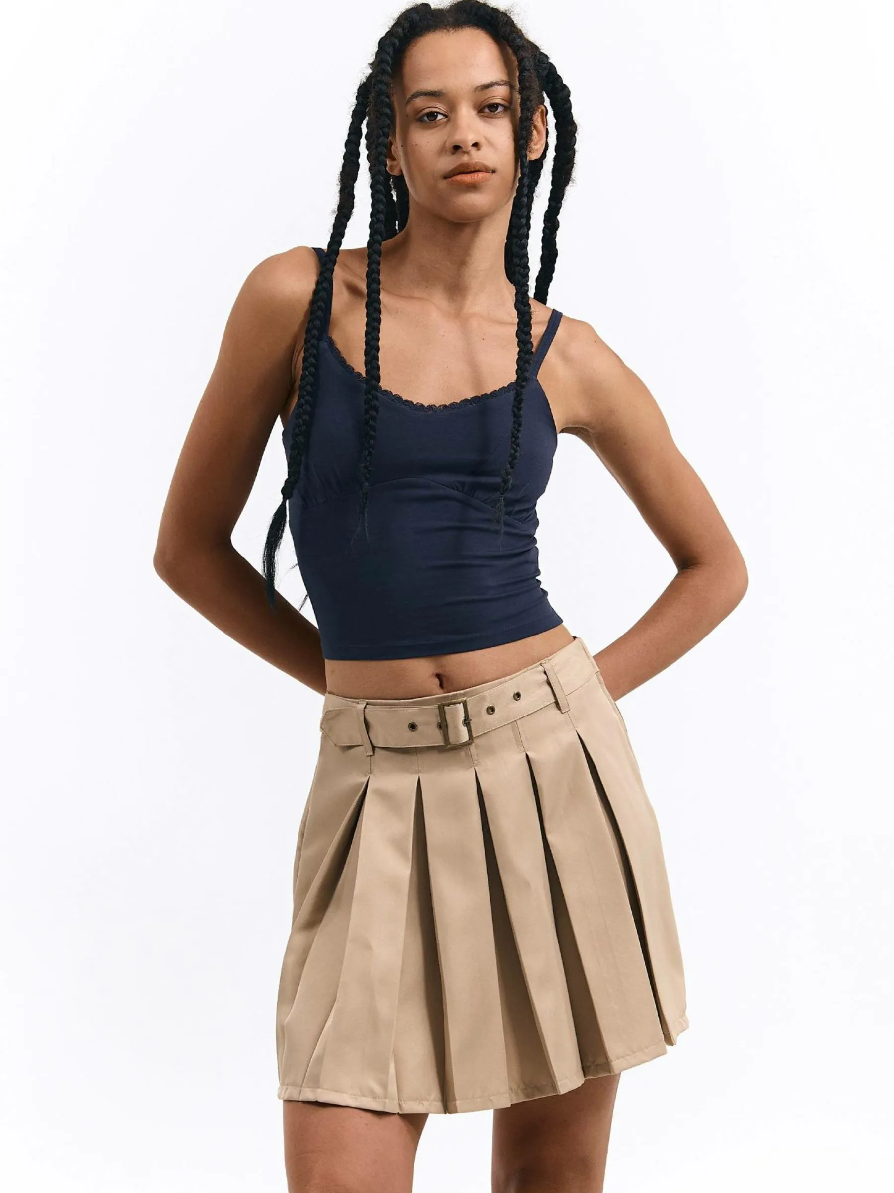 Kolor: granatowyKrój: z marszczeniemTyp: podkoszulekRekaw: bez rękawówDługość: krótkiPattern style: pojedynczy ko…