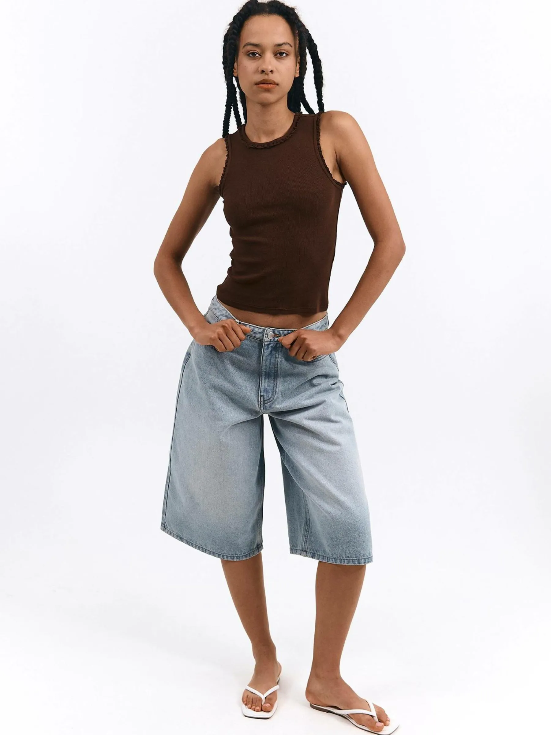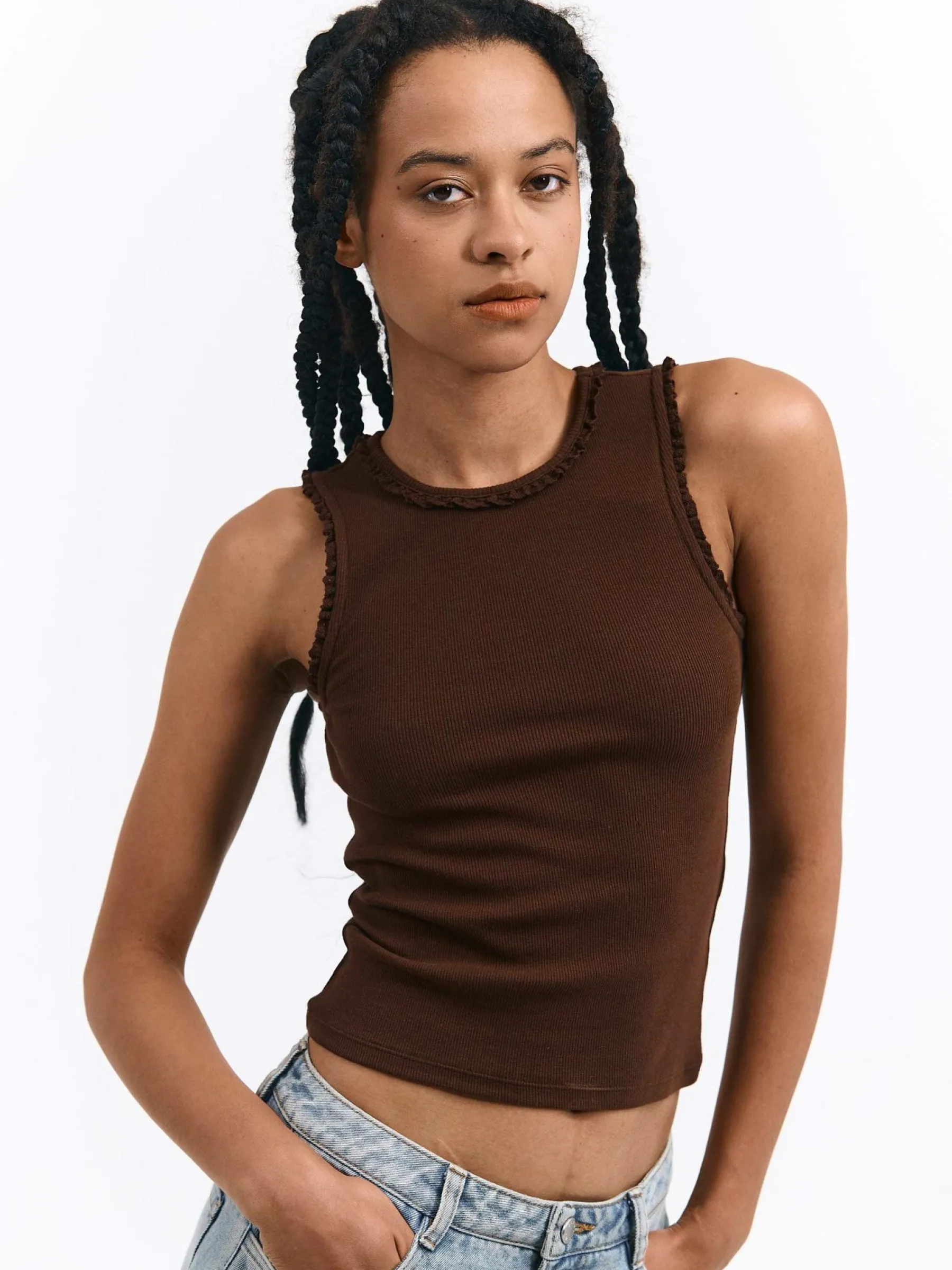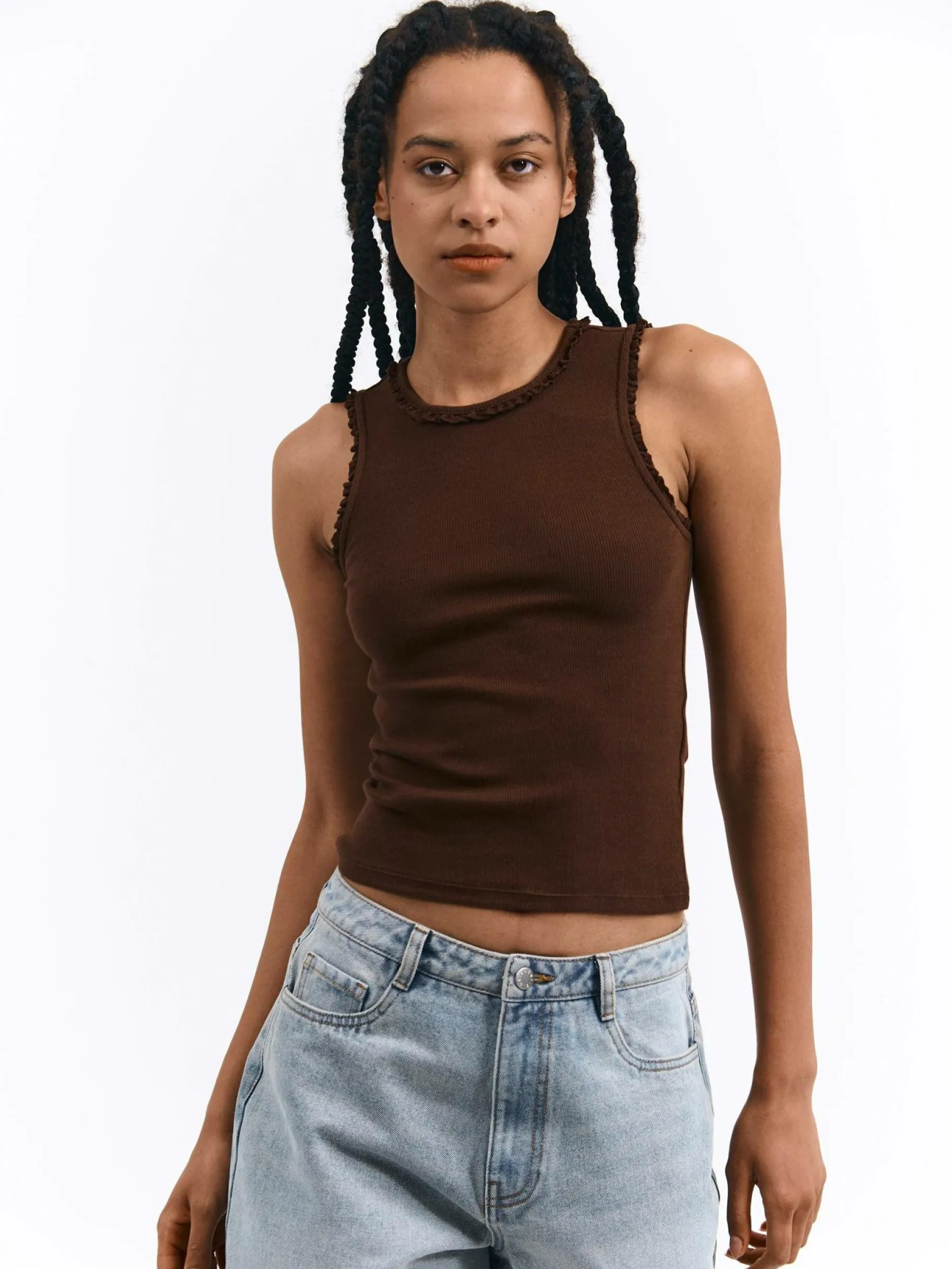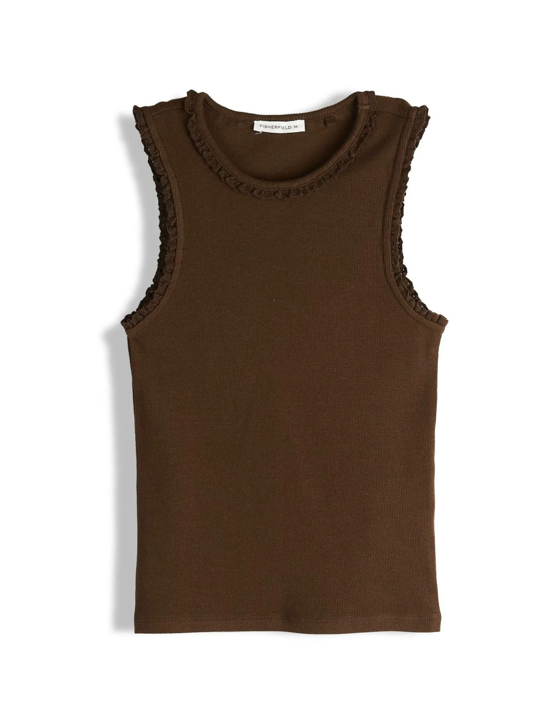 Kolor: brązowyKrój: regularTyp: podkoszulekRekaw: bez rękawówDługość: krótkiPattern style: pojedynczy kolor, że…