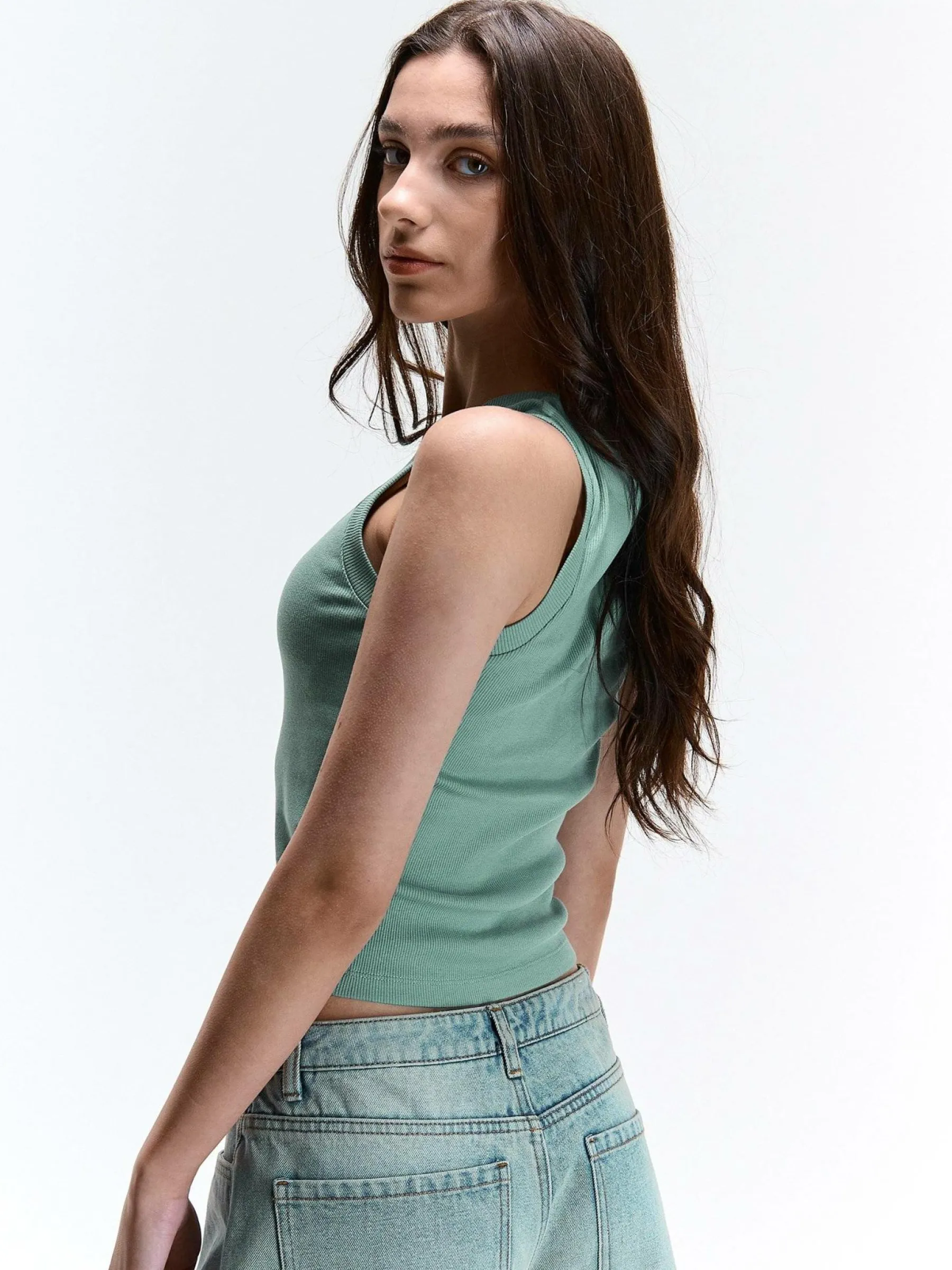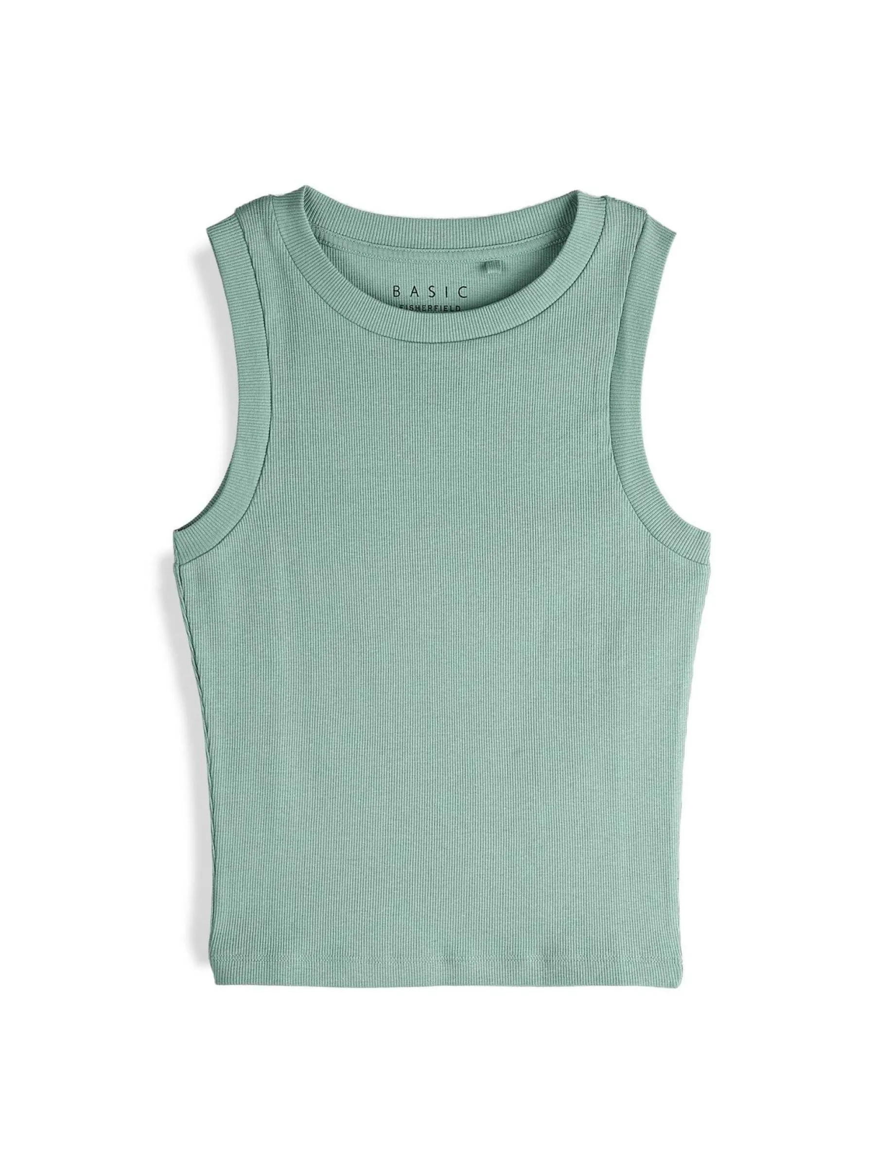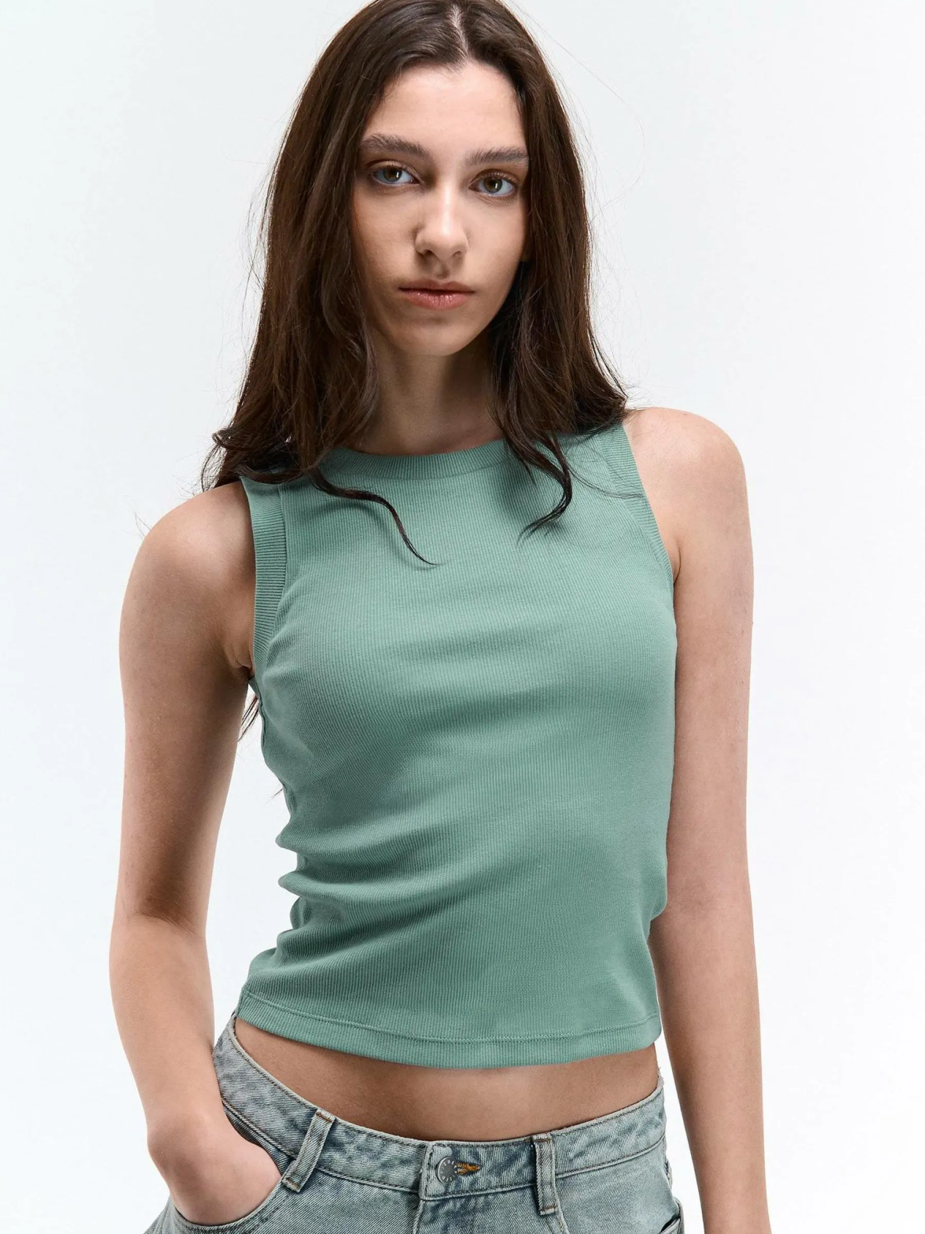 Kolor: zielonyKrój: regularTyp: podkoszulekRekaw: bez rękawówDługość: krótkiPattern style: pojedynczy kolor, żeb…