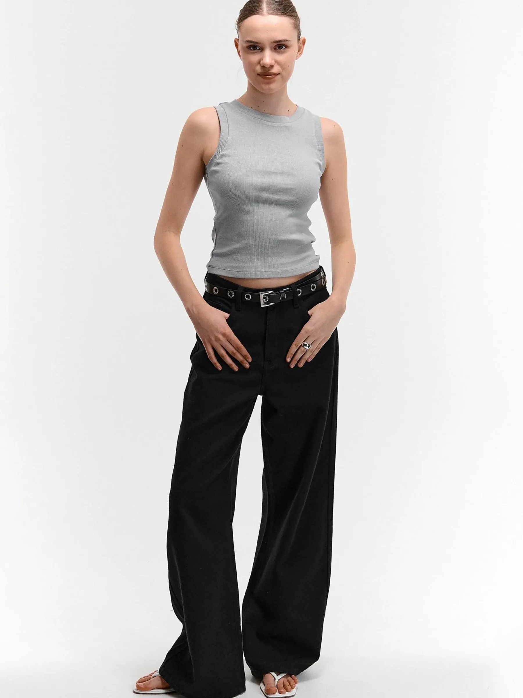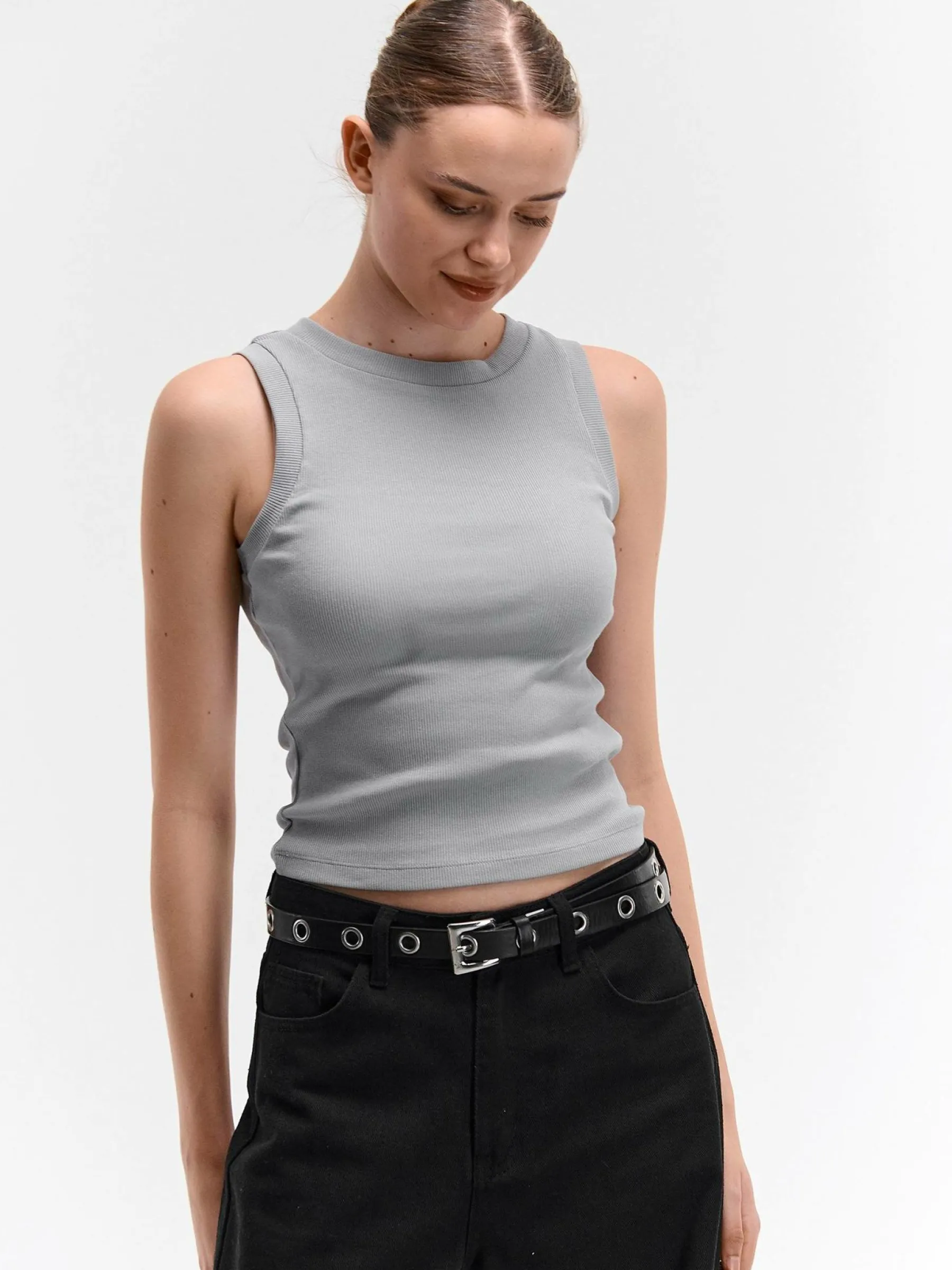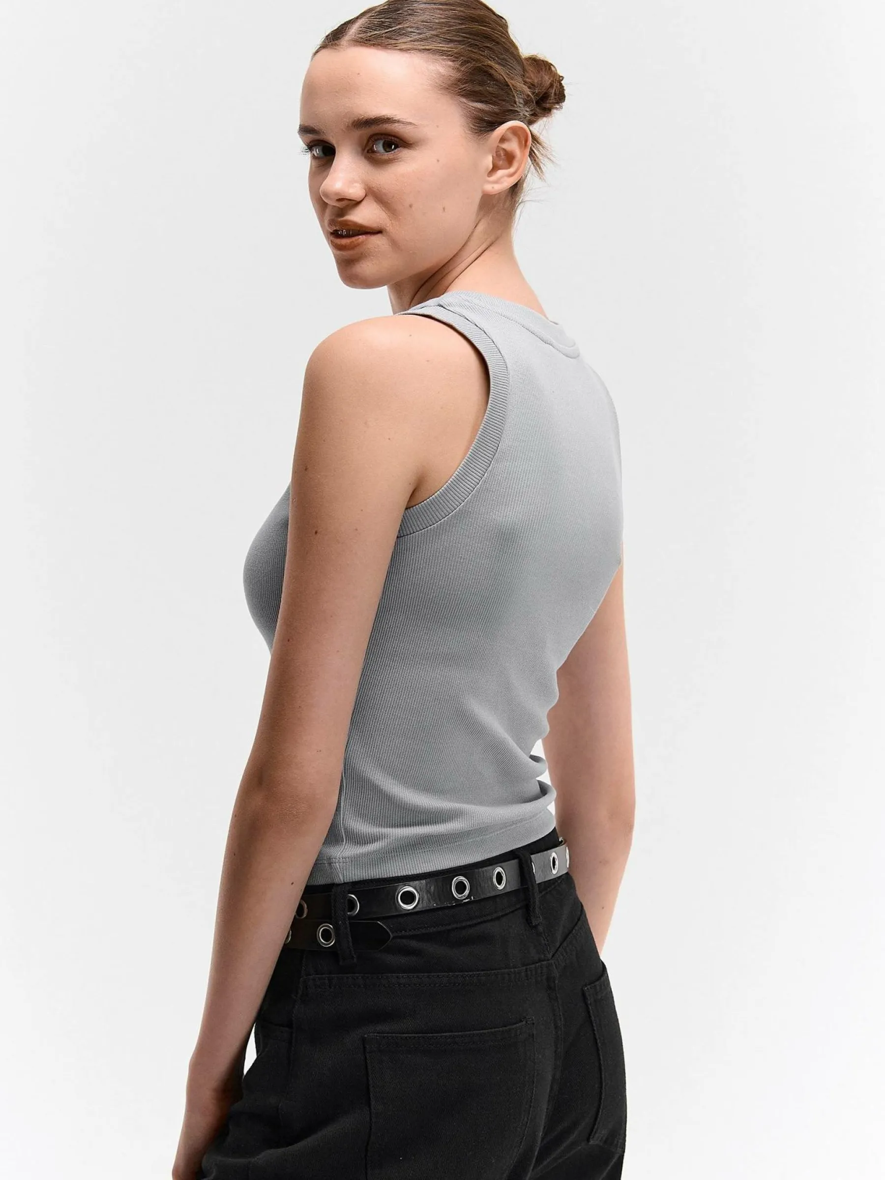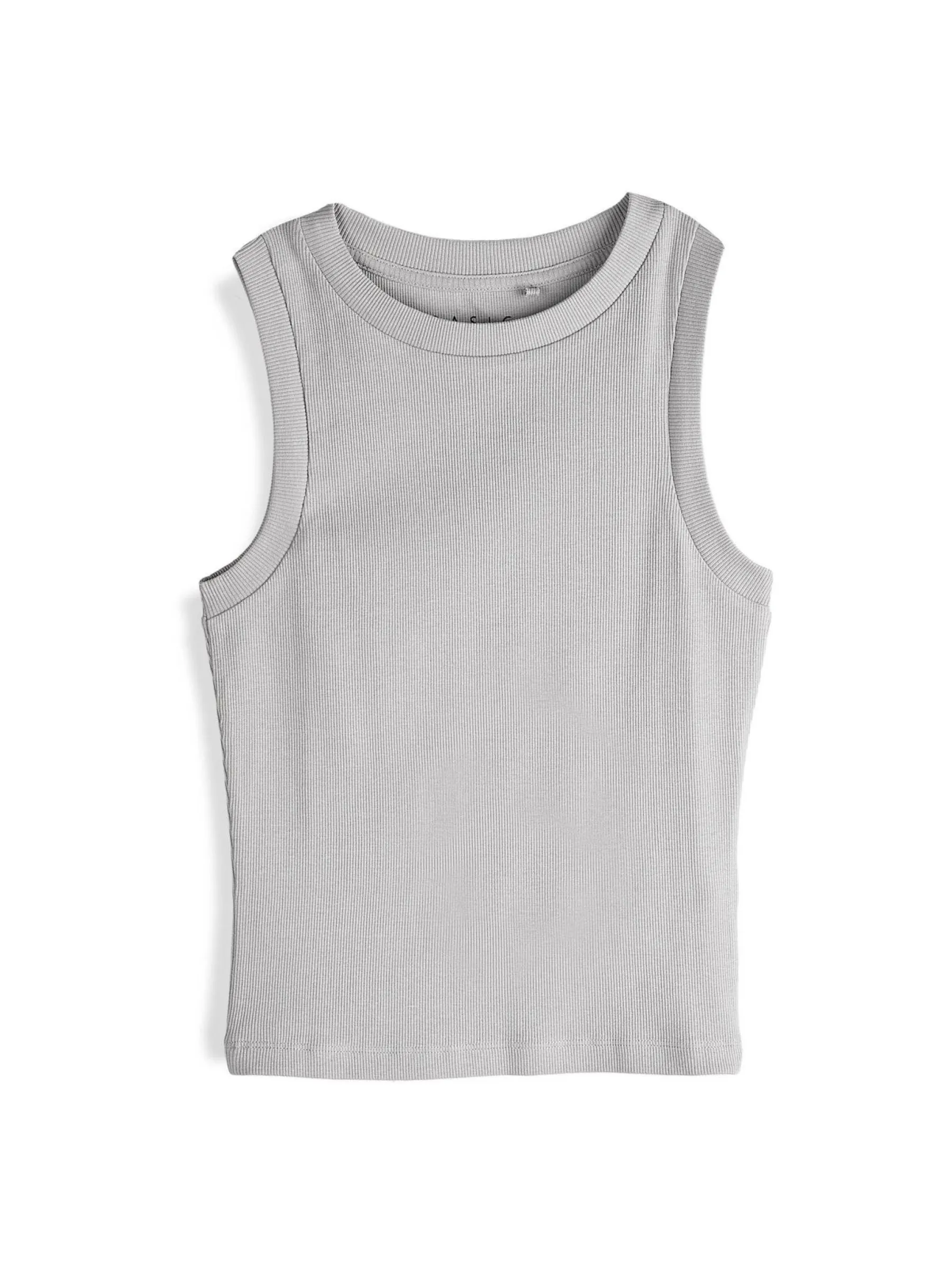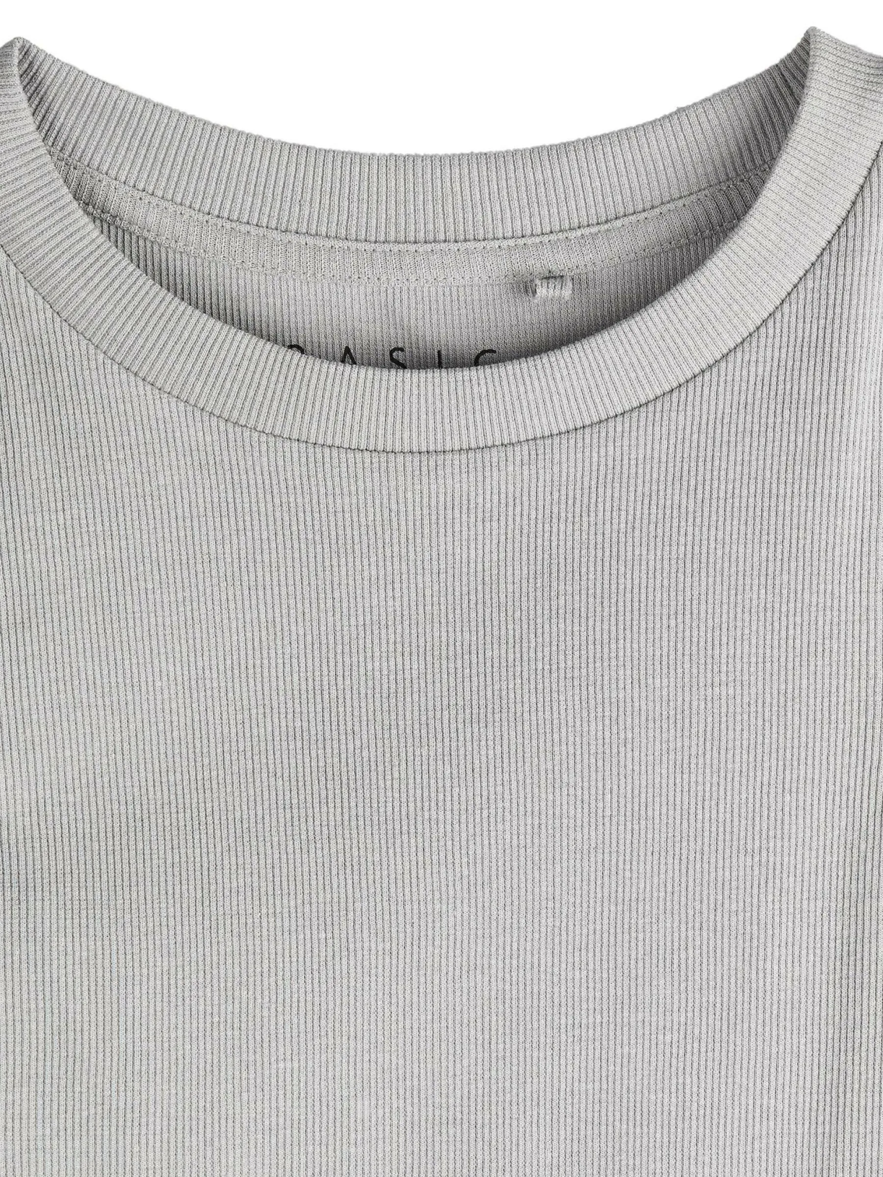 Kolor: szaryKrój: regularTyp: podkoszulekRekaw: bez rękawówDługość: krótkiPattern style: pojedynczy kolor, żebro…