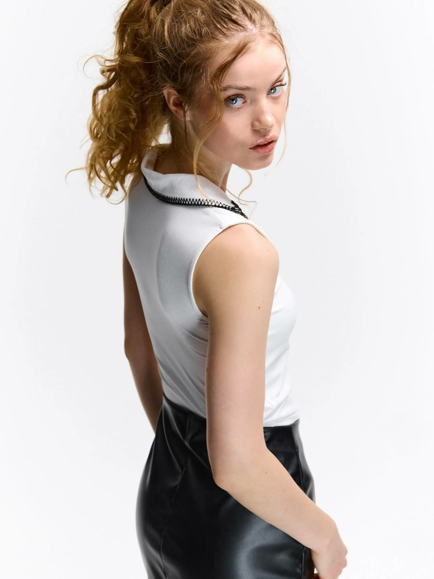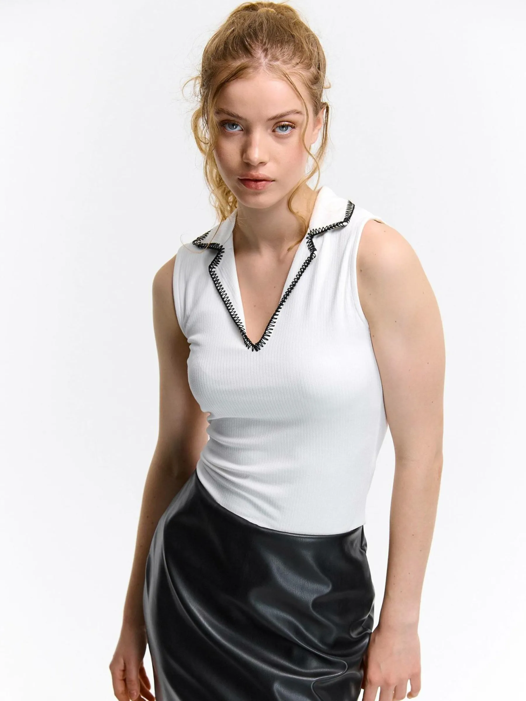 Kolor: białyKrój: regularTyp: podkoszulekRekaw: bez rękawówDługość: krótkiPattern style: pojedynczy kolor, żebr…
