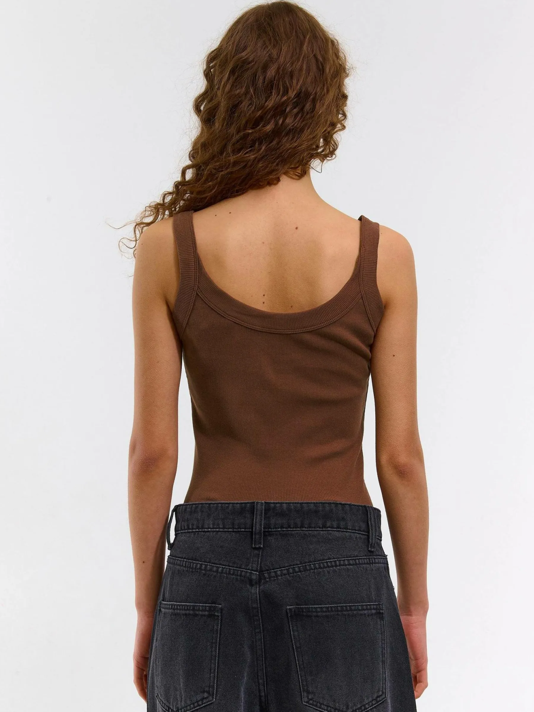 Kolor: brązowyKrój: regularTyp: podkoszulekRekaw: bez rękawówDługość: krótkiPattern style: pojedynczy kolor, że…