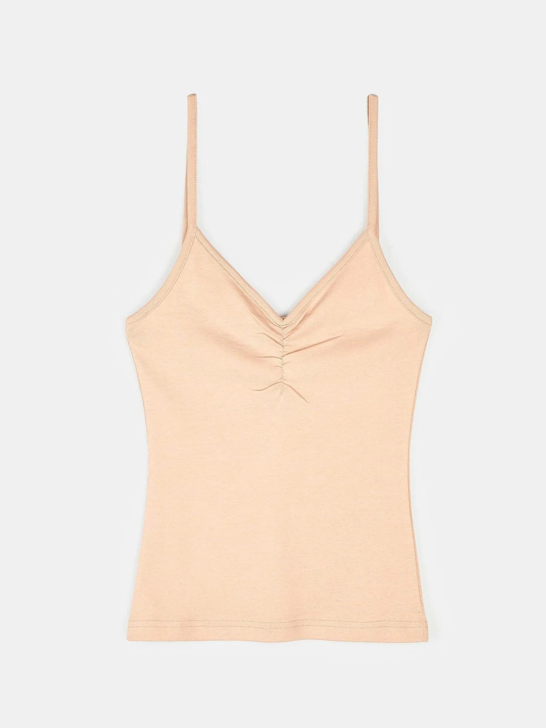 Kolor: różowyKrój: z marszczeniemTyp: podkoszulekRekaw: bez rękawówDługość: krótkiPattern style: pojedynczy kol…