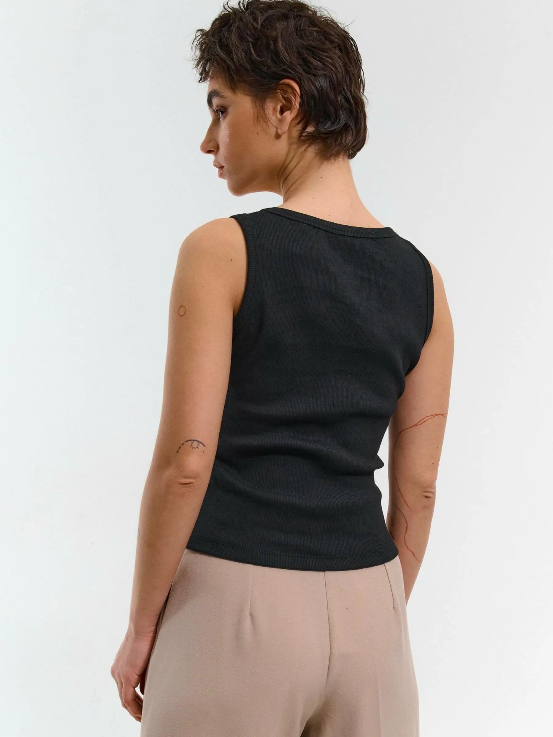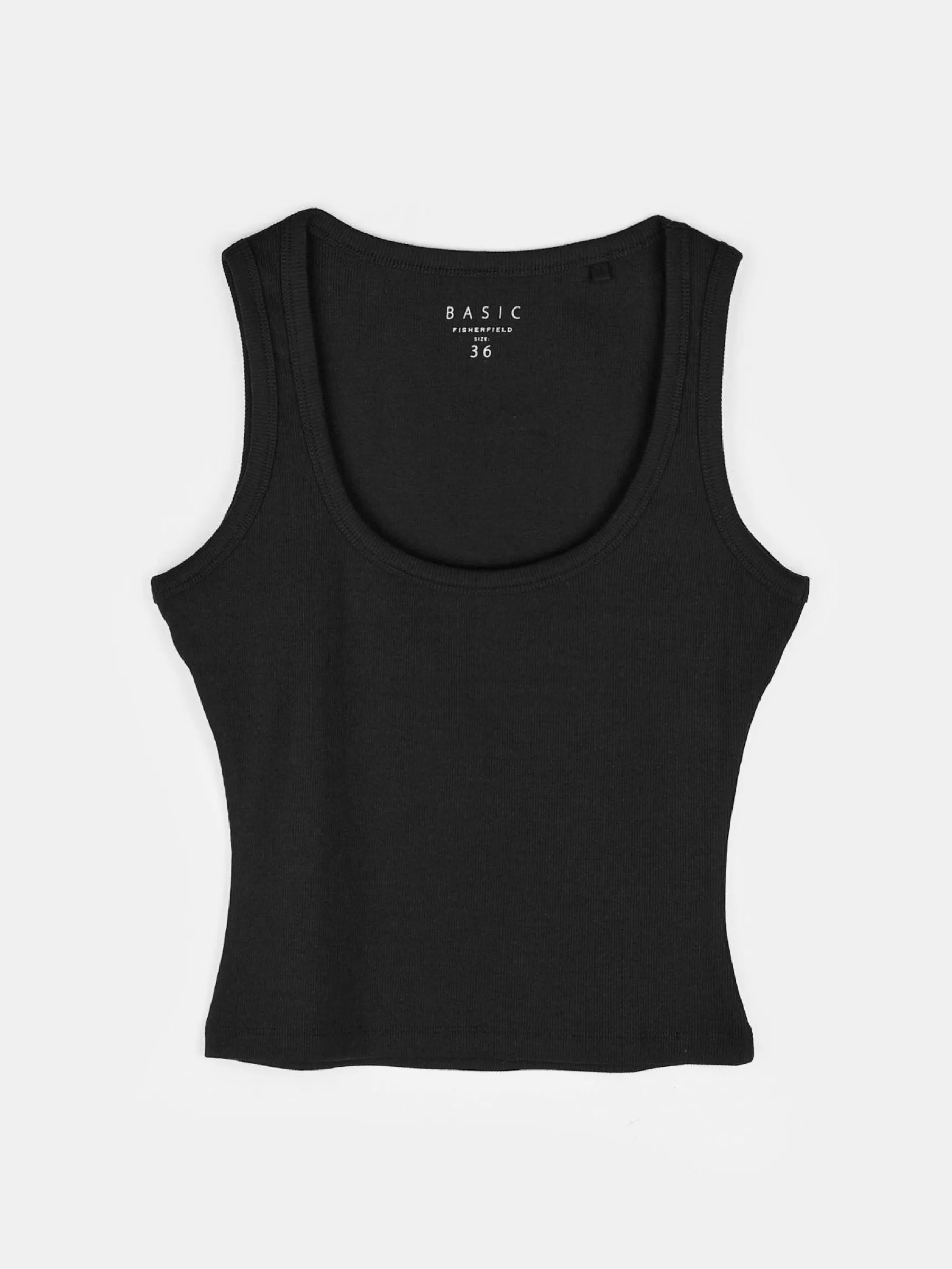 Kolor: czarnyKrój: regularTyp: podkoszulekRekaw: bez rękawówDługość: krótkiPattern style: pojedynczy kolor, żebr…